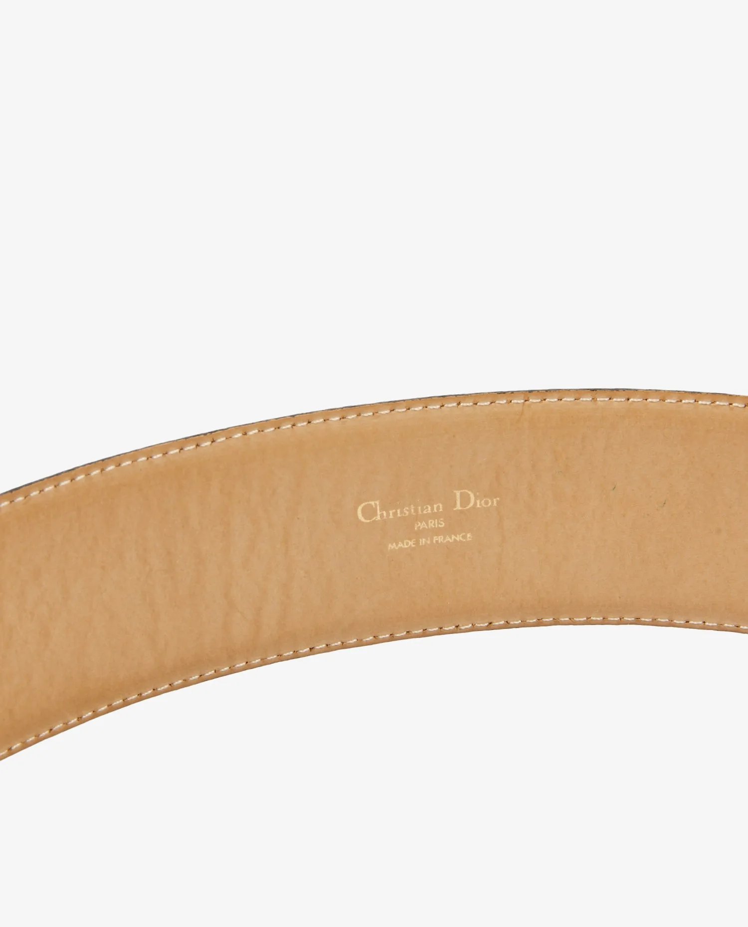 L’intérieur est doublé de cuir clair non teint, avec un marquage à chaud indiquant la taille (65/26), les références du modèle (139 – 43) et la mention « Made in France ». Ce cuir intérieur au toucher velouté apporte un confort au porter tout en assurant la longévité de la pièce. L’absence de doublure synthétique souligne le choix de matériaux nobles dans la tradition artisanale Dior.
