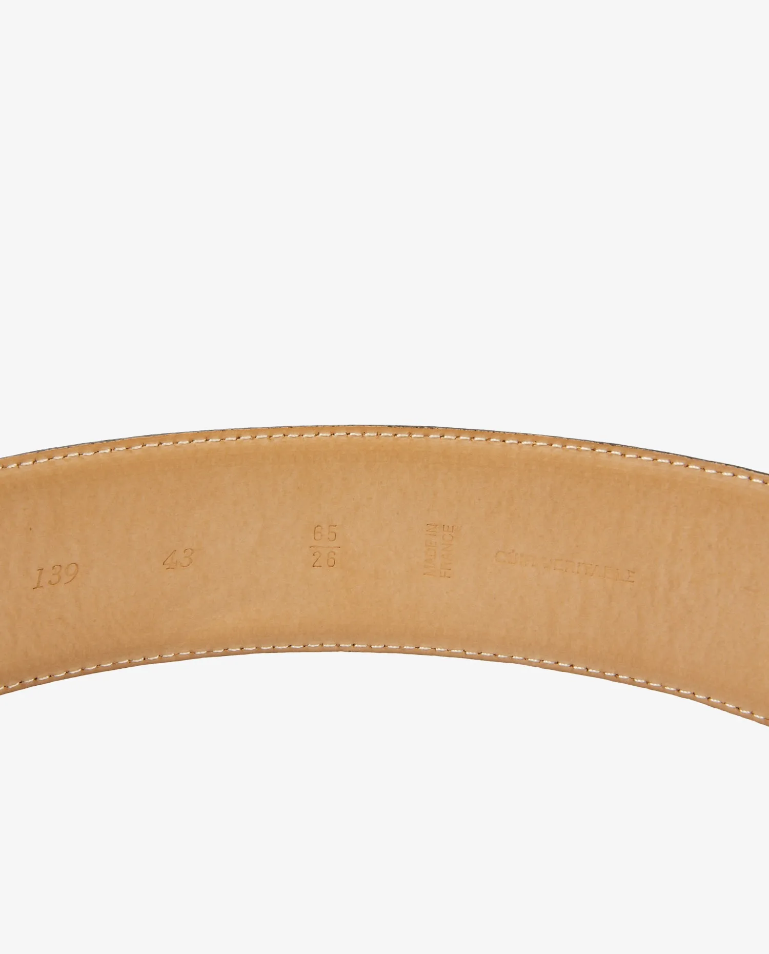 Utiliser un lait nourrissant pour cuir lisse afin de préserver sa souplesse et prévenir les craquelures. Éviter les expositions prolongées au soleil ou à l’humidité. Ranger la ceinture à plat ou enroulée sans contrainte dans un espace sec. Nettoyer avec un chiffon doux après usage pour conserver son éclat.