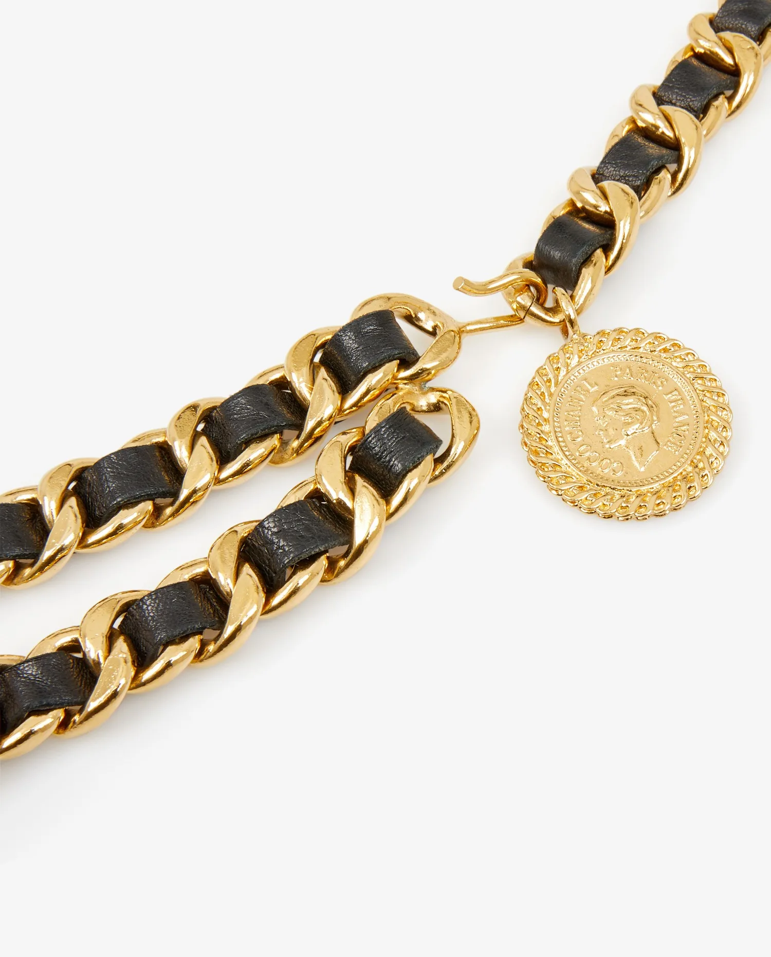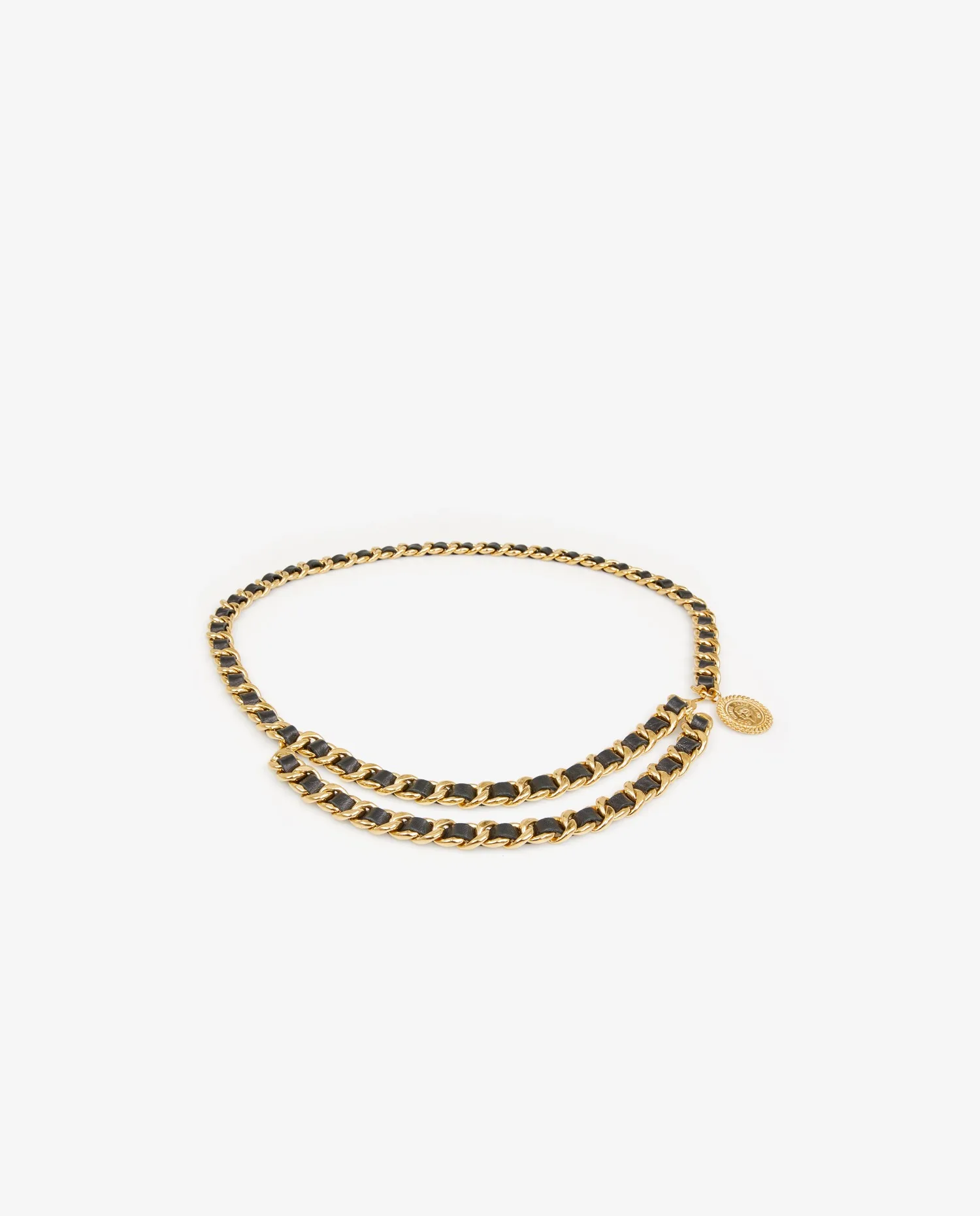 Ceinture Chanel double rangs, chaine et cuir. En très bon état.