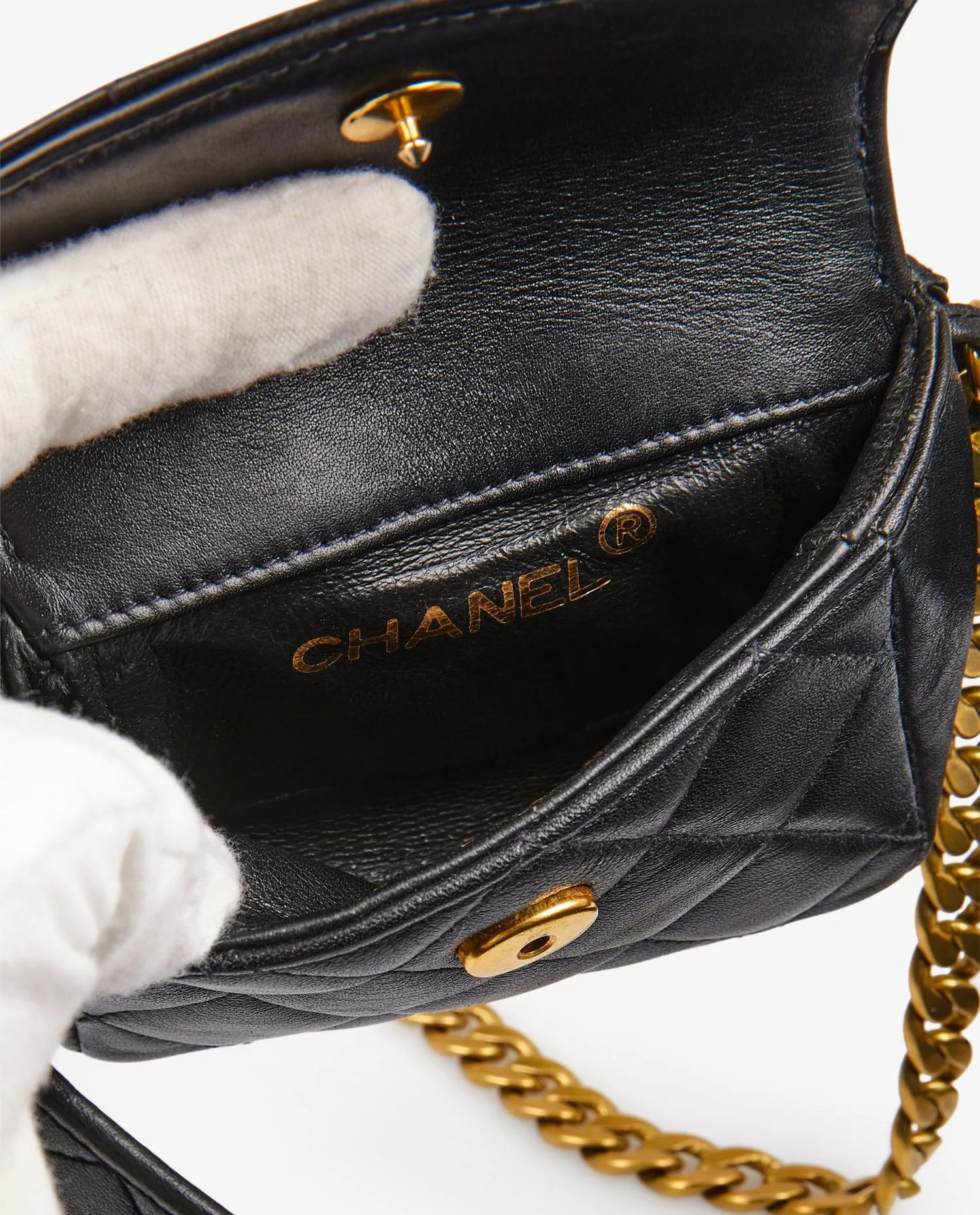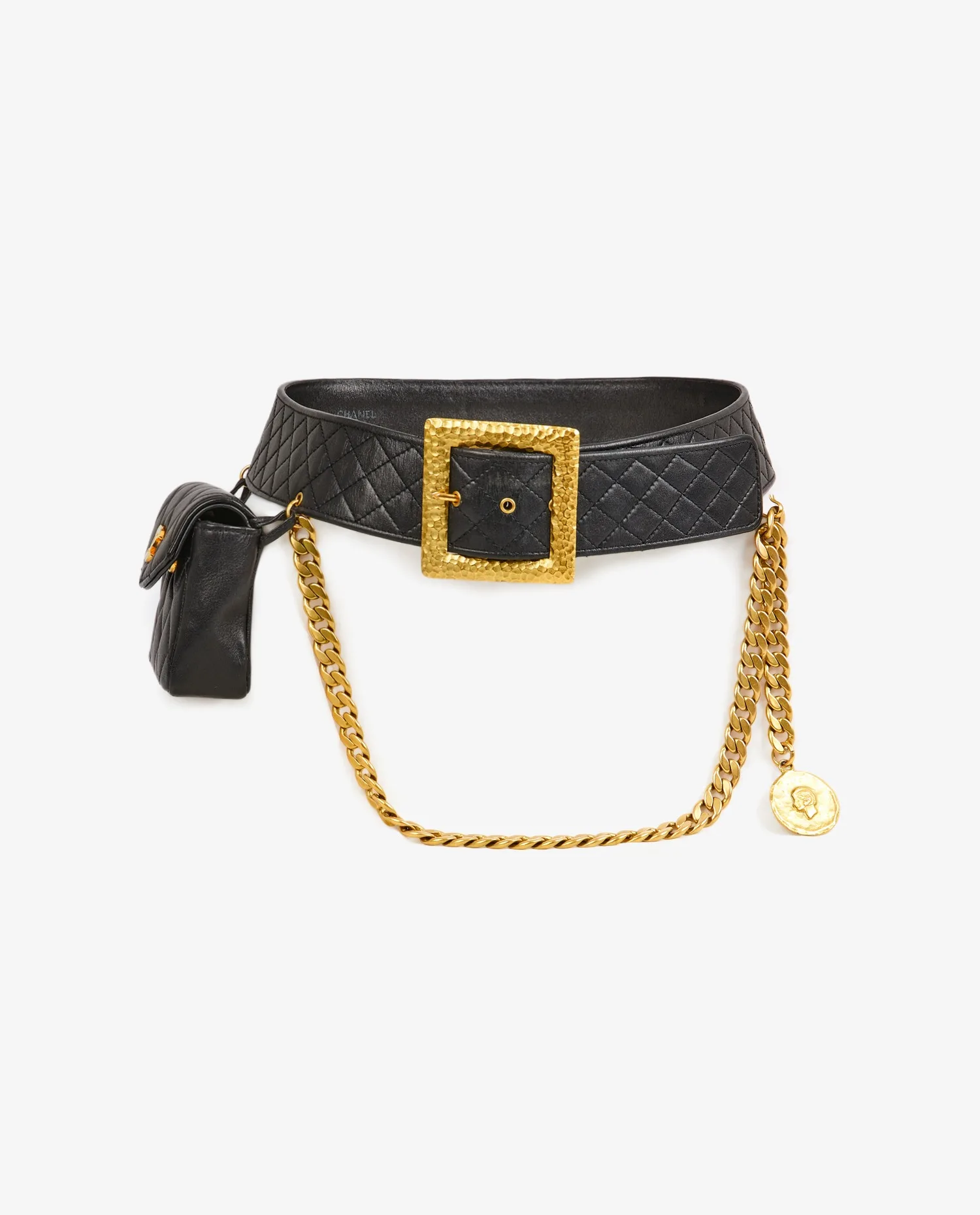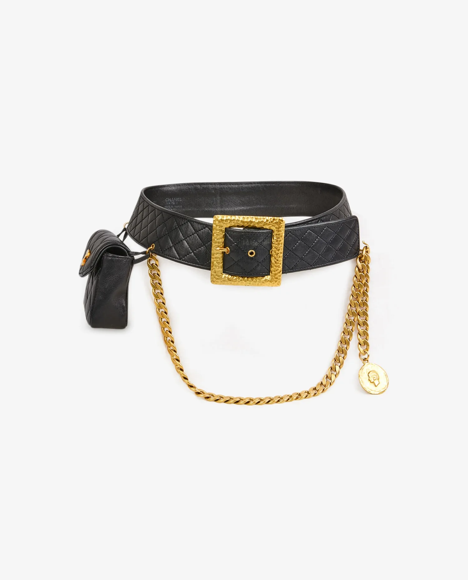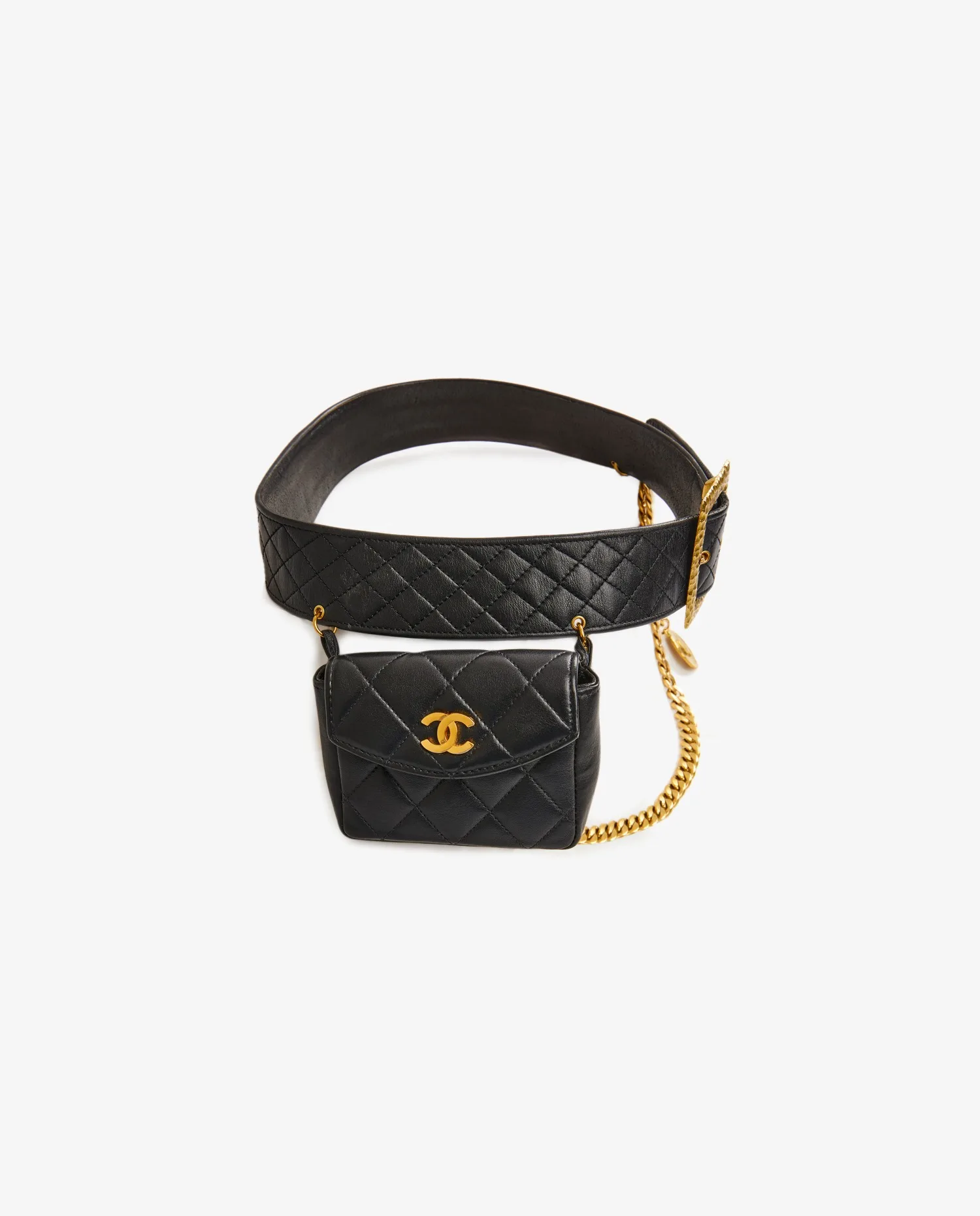 Collector! Ceinture pochette Chanel vintage 90′ en cuir noir. En très bon état.
