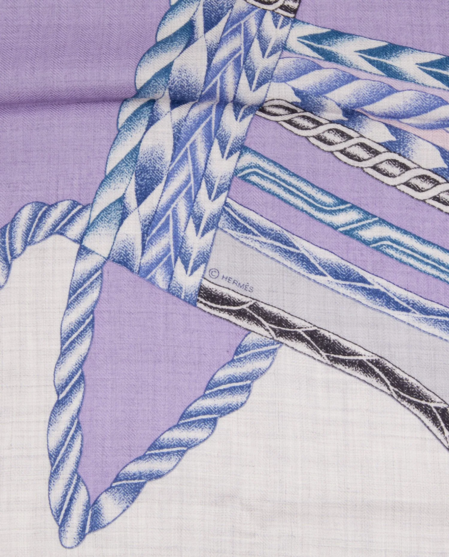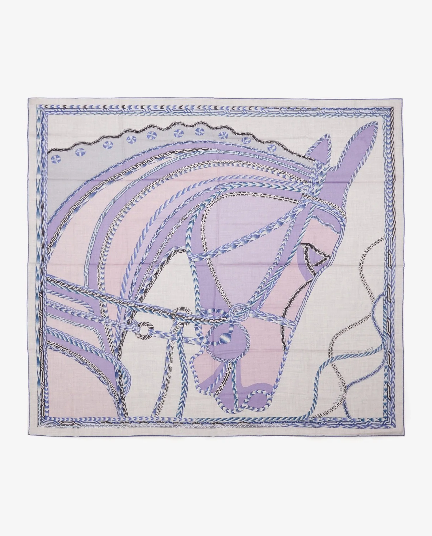 Châle Hermès “Robe du soir” dans les tons pastels. En très bon état.