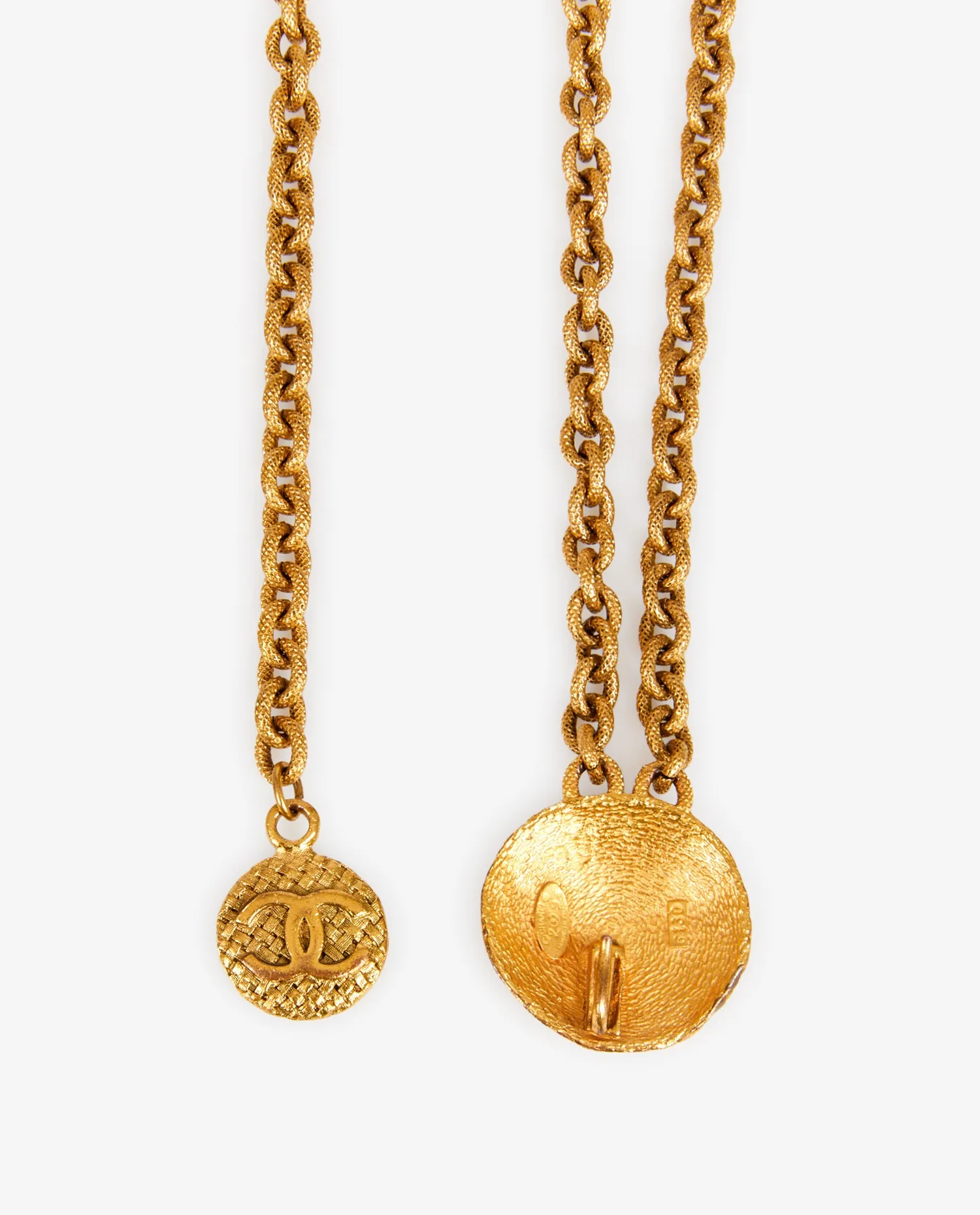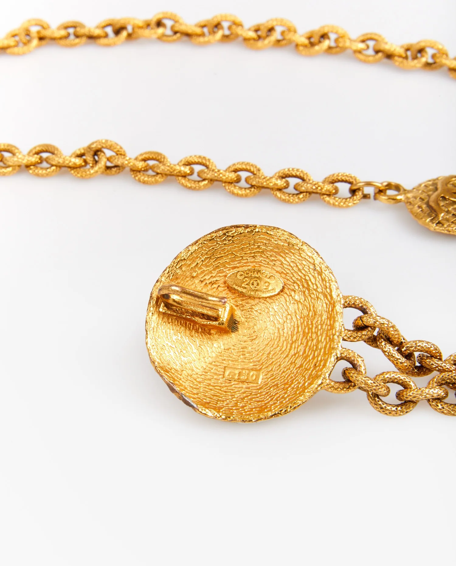 Ceinture Chanel vintage matelassée dorée, possibilité de le porter en collier. En très bon état.