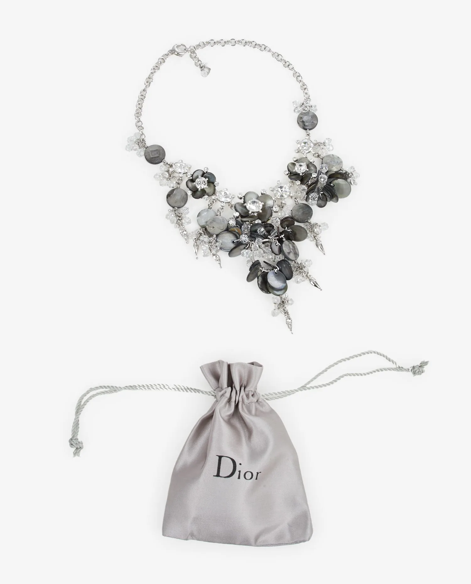 Collier Christian Dior argent et nacre grise. En très bon état. Livré dans son dustbag d’origine.