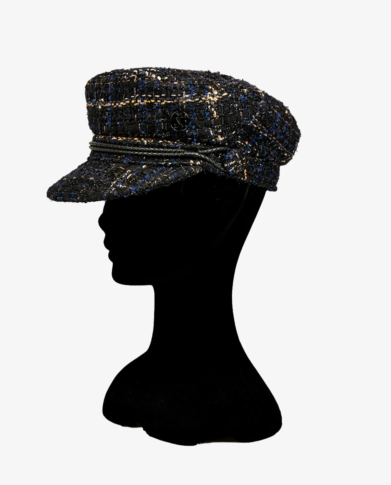 Gavroche Maison Michel en tweed bleu marine avec des fils dorés. Style très Chanel. En très bon état.