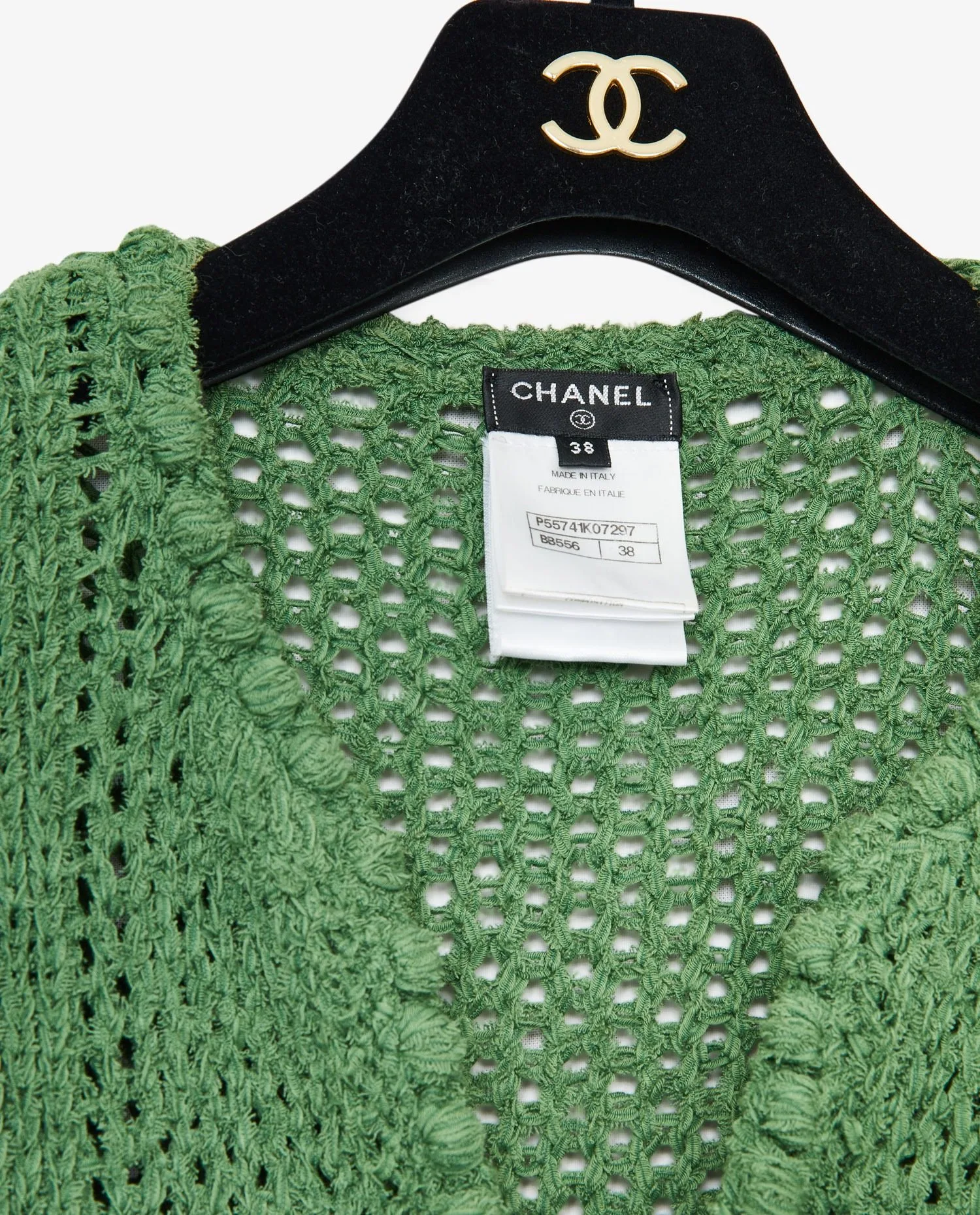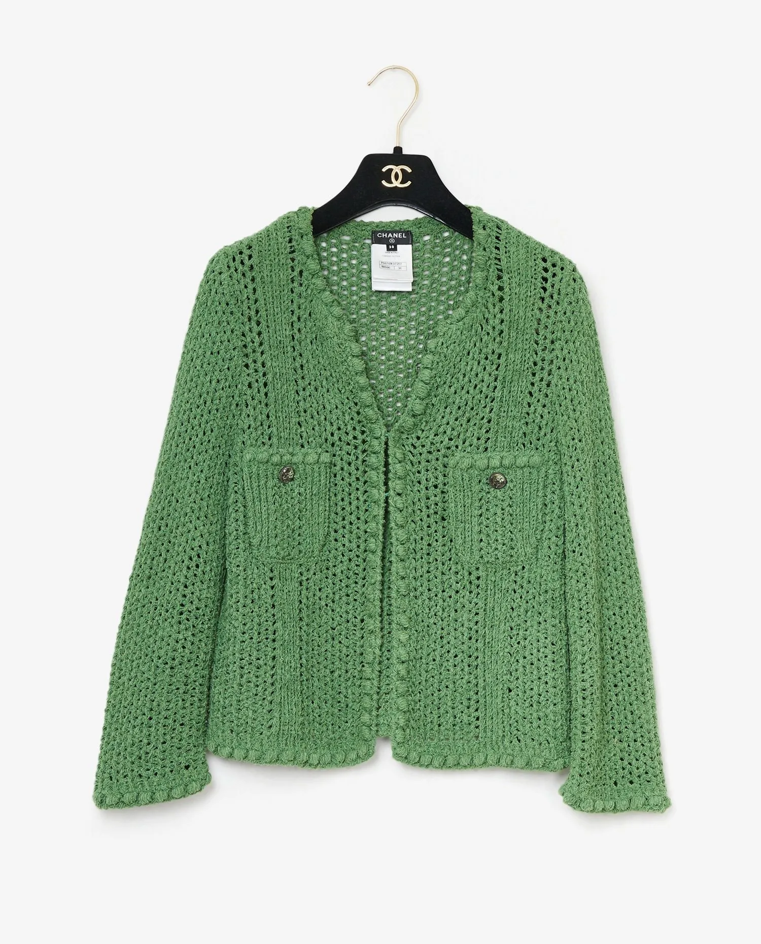 Gilet Chanel en coton vert. Taille 38. En très bon état.