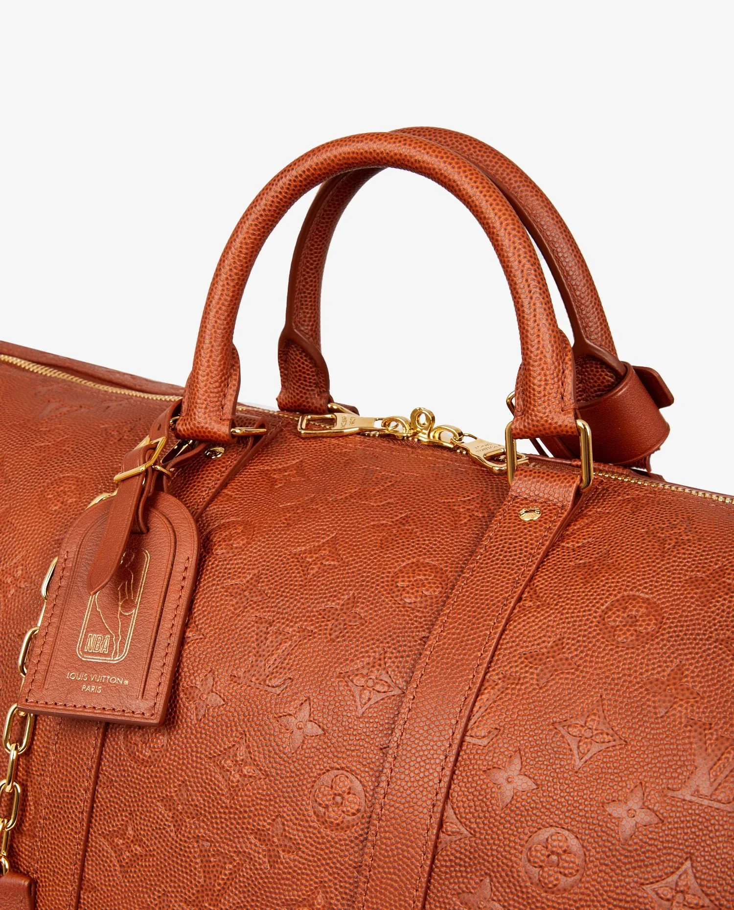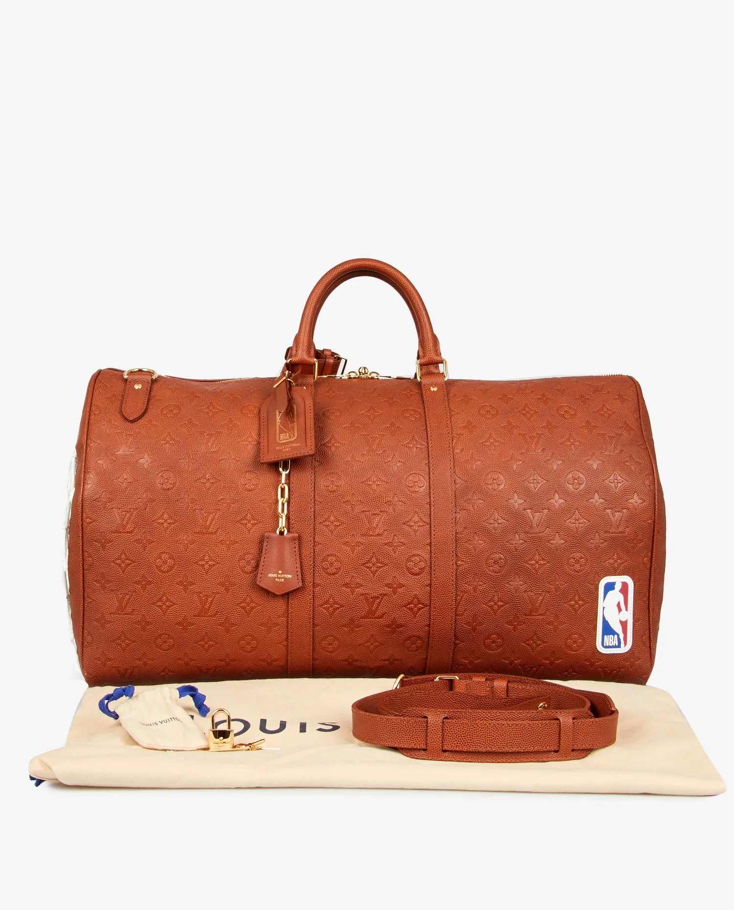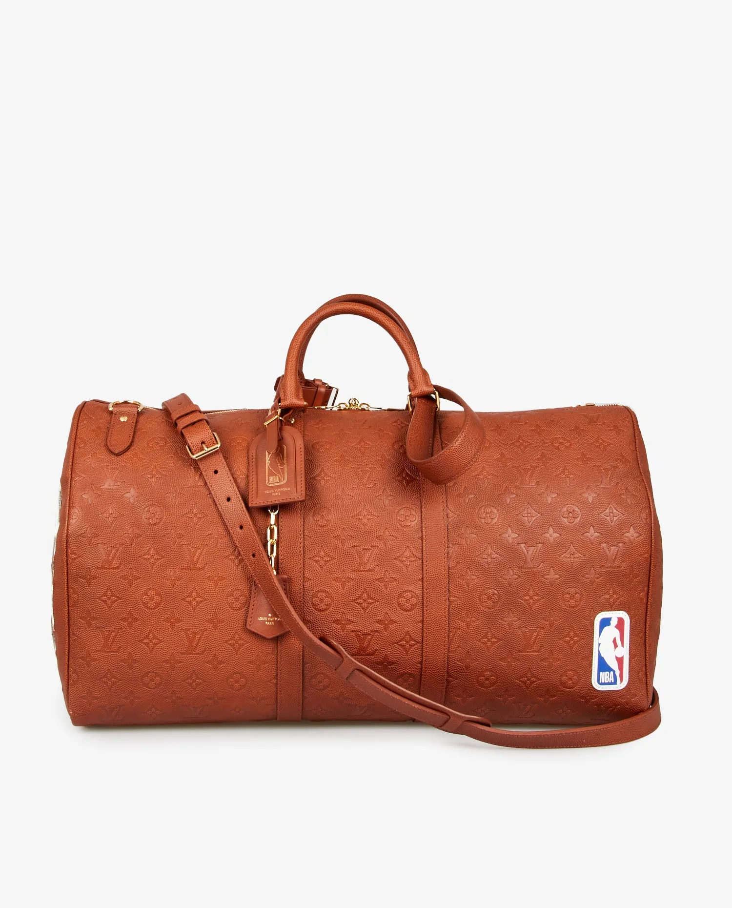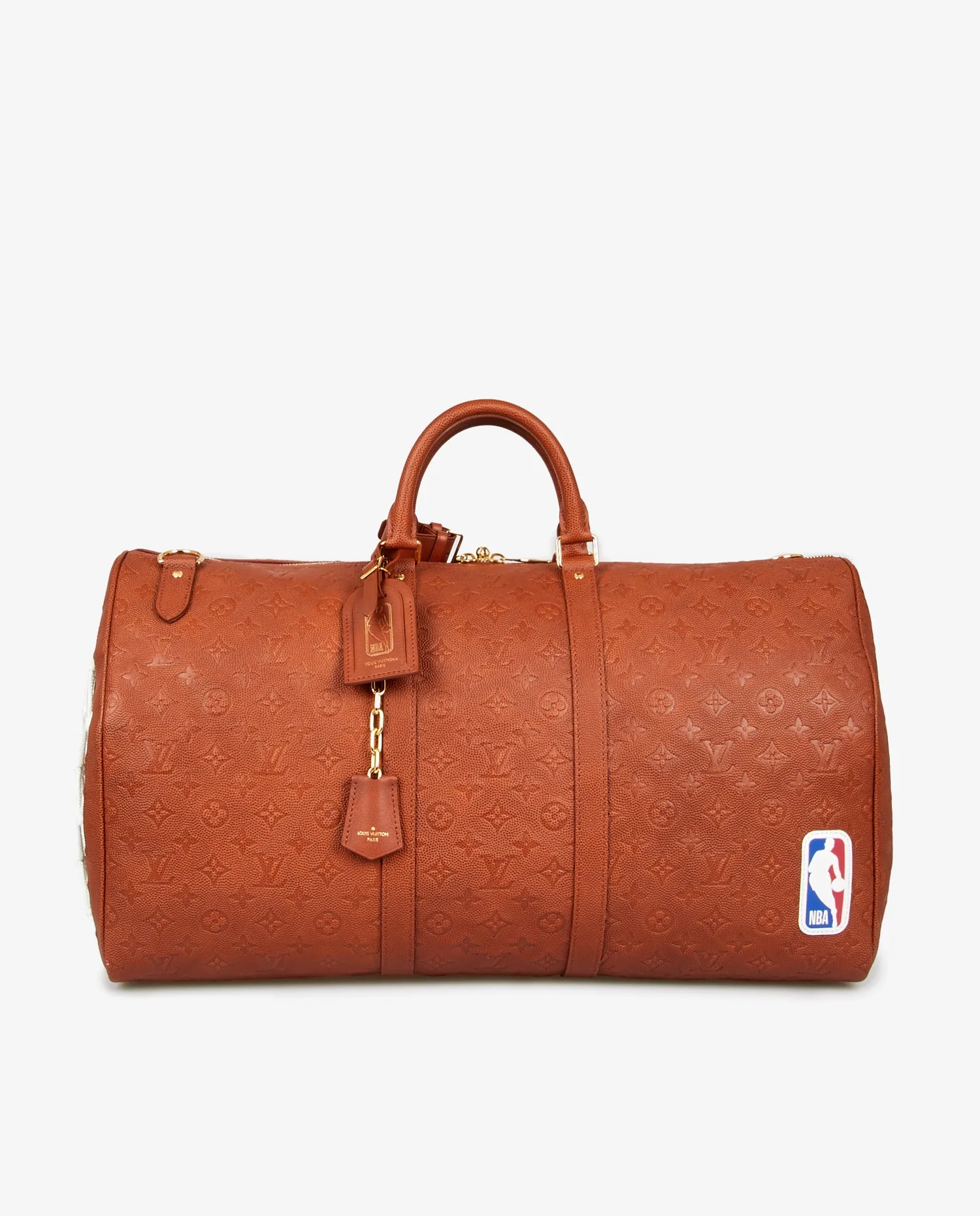 Sac de voyage Keepall 55 Louis Vuitton en collaboration avec la NBA et Virgil Abloh en 2021. Il est en cuir de veau appelé “Basketball grain”. Jamais porté. Vendu dans son dustbag et boite Louis Vuitton.