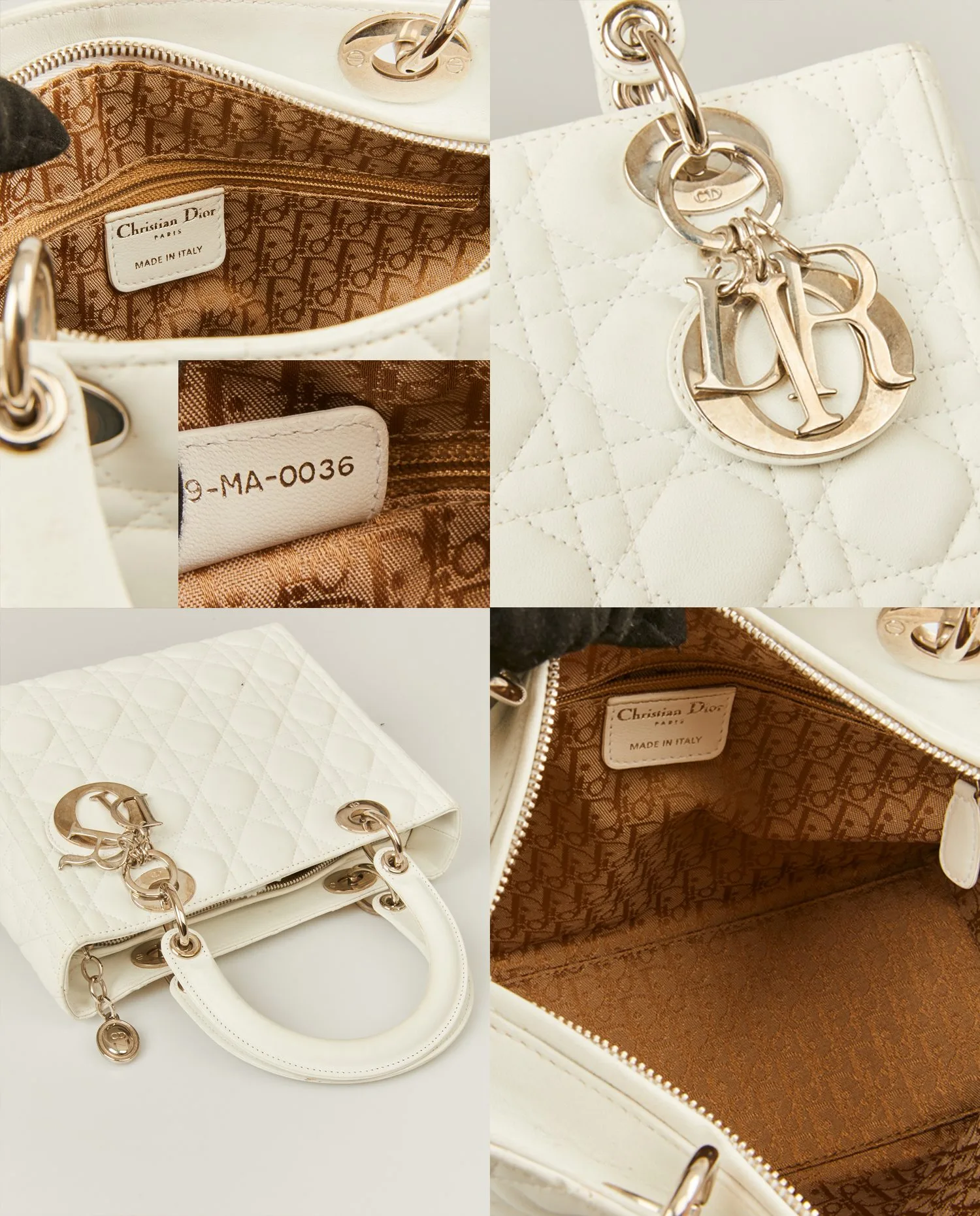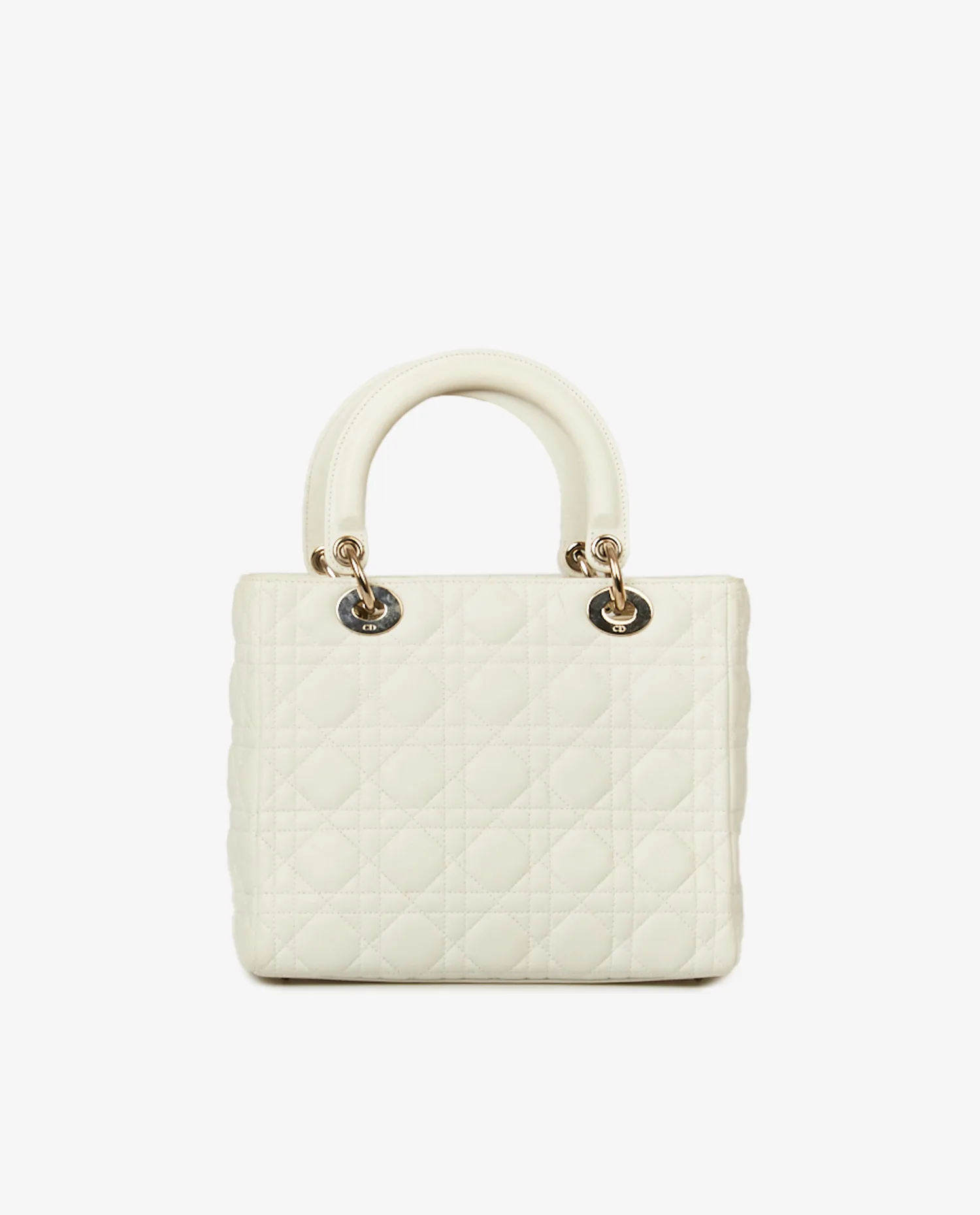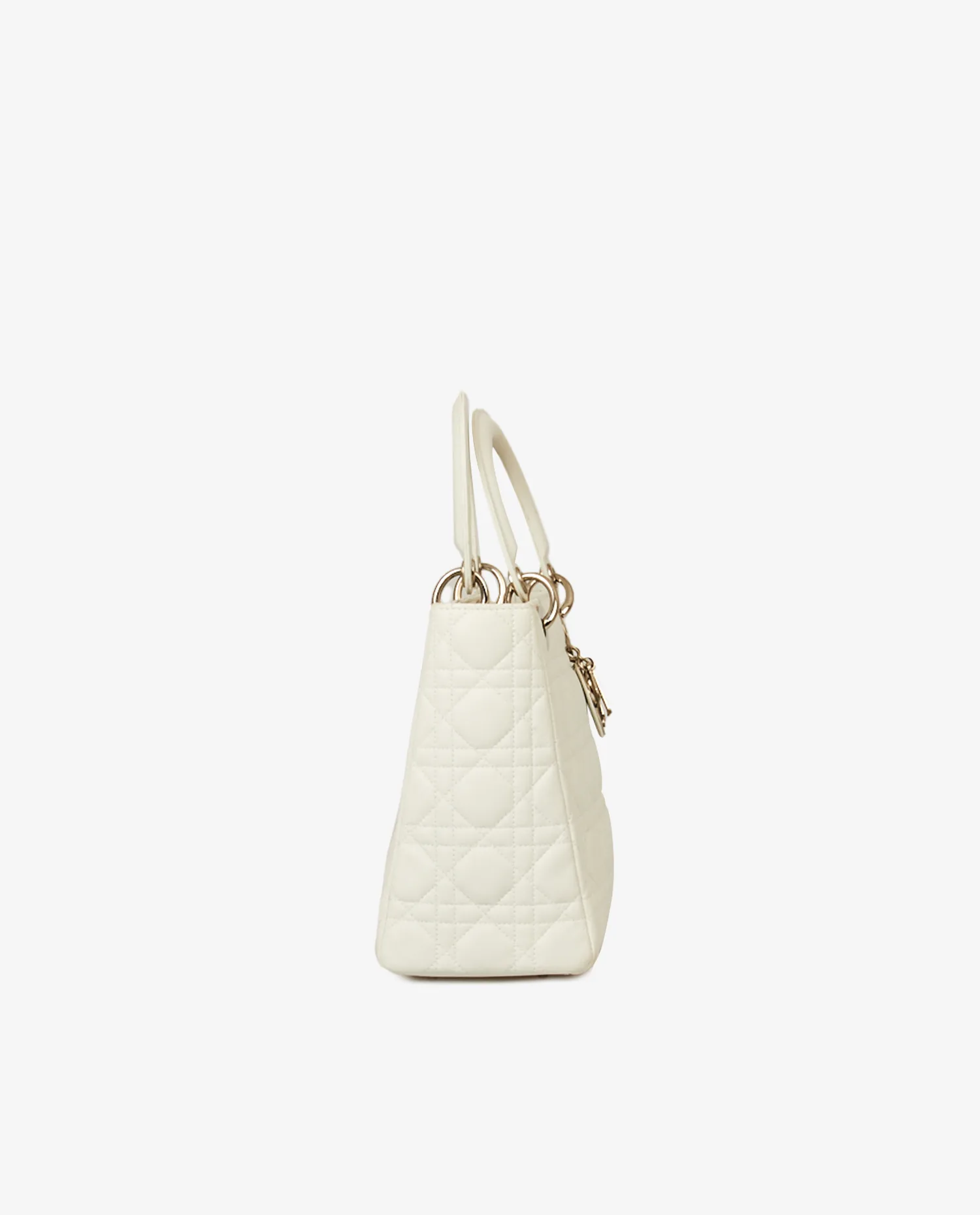 Sac Lady Dior vintage cannage blanc. Taille médium. Porté à la main ainsi qu’à l’épaule à l’aide d’une bandoulière amovible (90cm). En très bon état.
