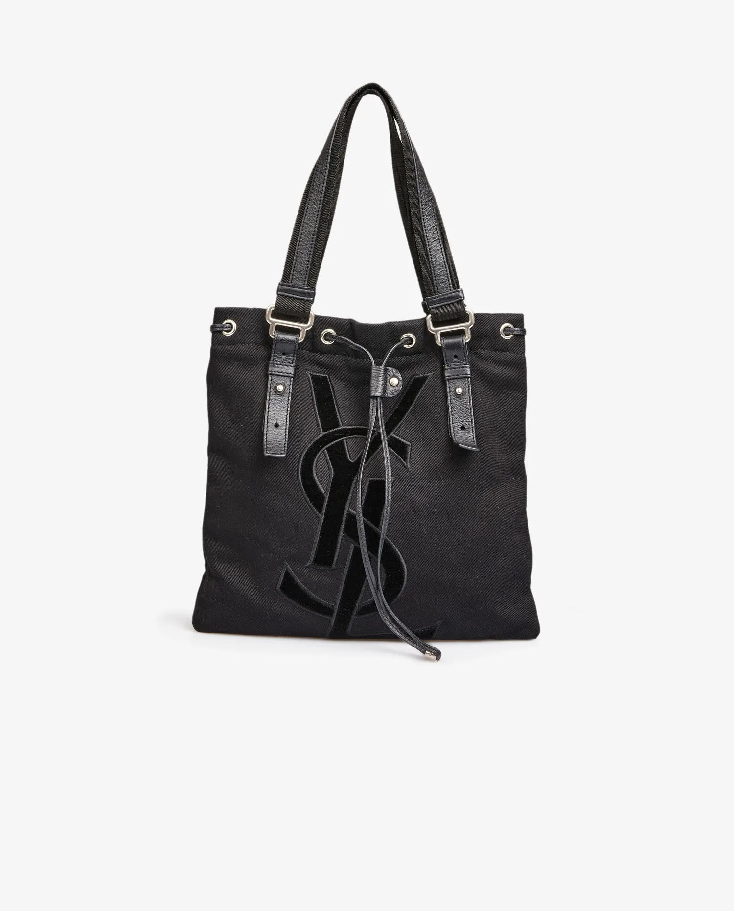 Sac Kahala Yves Saint Laurent en toile noire. Poignées en nylon. Porté épaule. En très bon état.