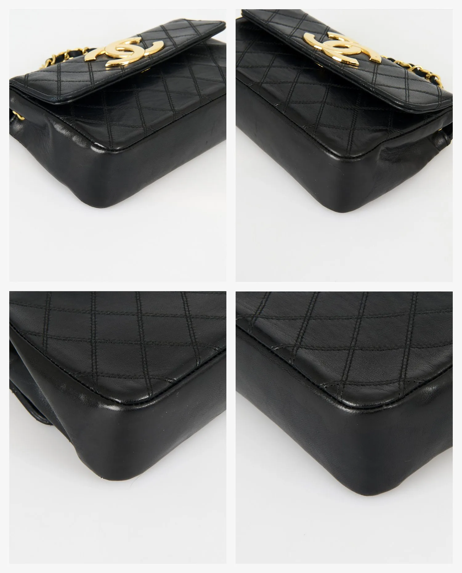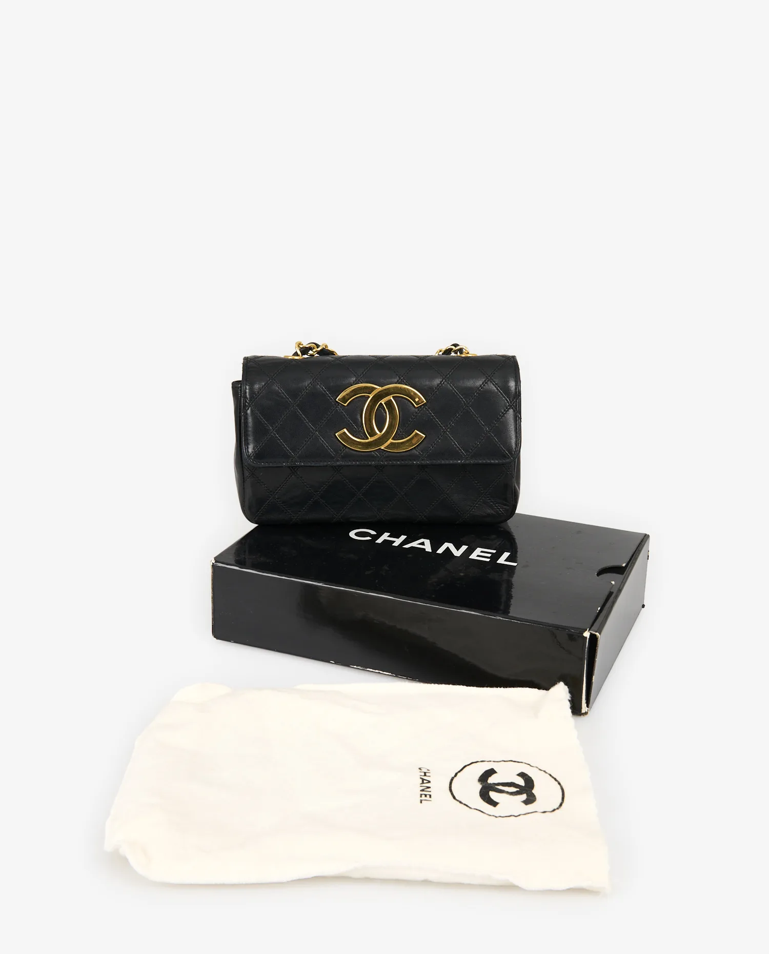Le sac est en très bon état vintage. Le cuir extérieur ne présente aucunes marques d’usage, ni aux coins et sur les tranches. Le logo doré conserve son éclat malgré de légères micro-rayures. La chaîne est en excellent état, sans oxydation notable. L’intérieur est propre et bien conservé, sans griffure ni tache apparente. Boîte et dustbag inclus.
