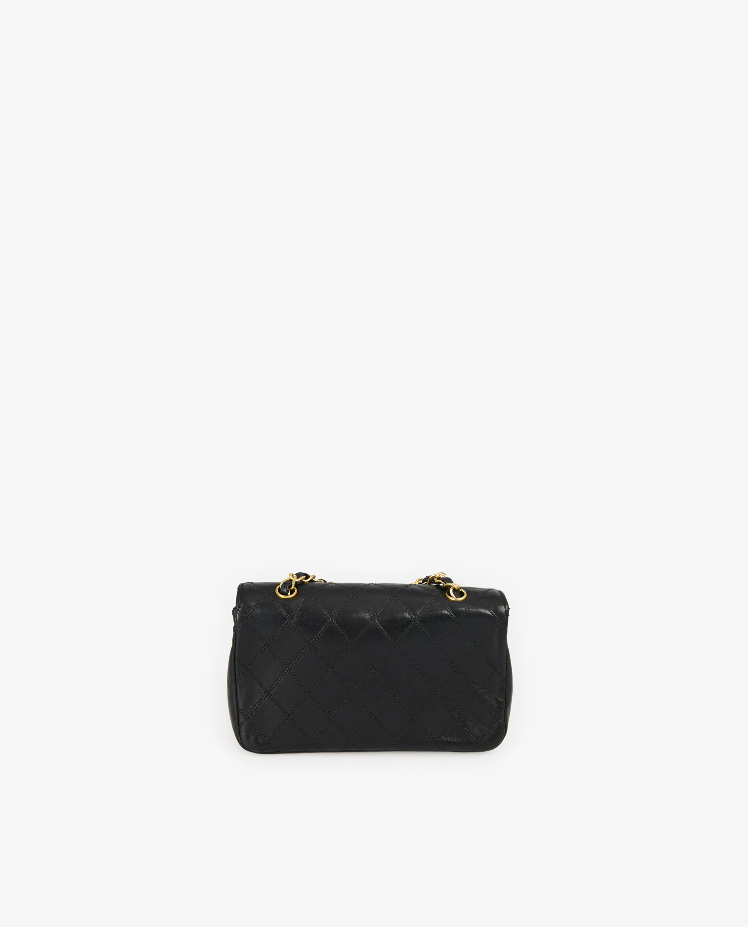 Le cuir d’agneau noir présente un motif matelassé régulier et bien tendu, conférant une structure discrète au sac malgré sa petite taille. Le rabat est souligné par un fermoir à pression aimantée sous un large logo CC doré brillant, véritable signature visuelle. La bandoulière en chaîne dorée entrelacée de cuir permet un porté polyvalent, tout en renforçant l’élégance du modèle. Le dos du sac est agrémenté d’une discrète poche plaquée, fidèle à la construction classique du 2.55.