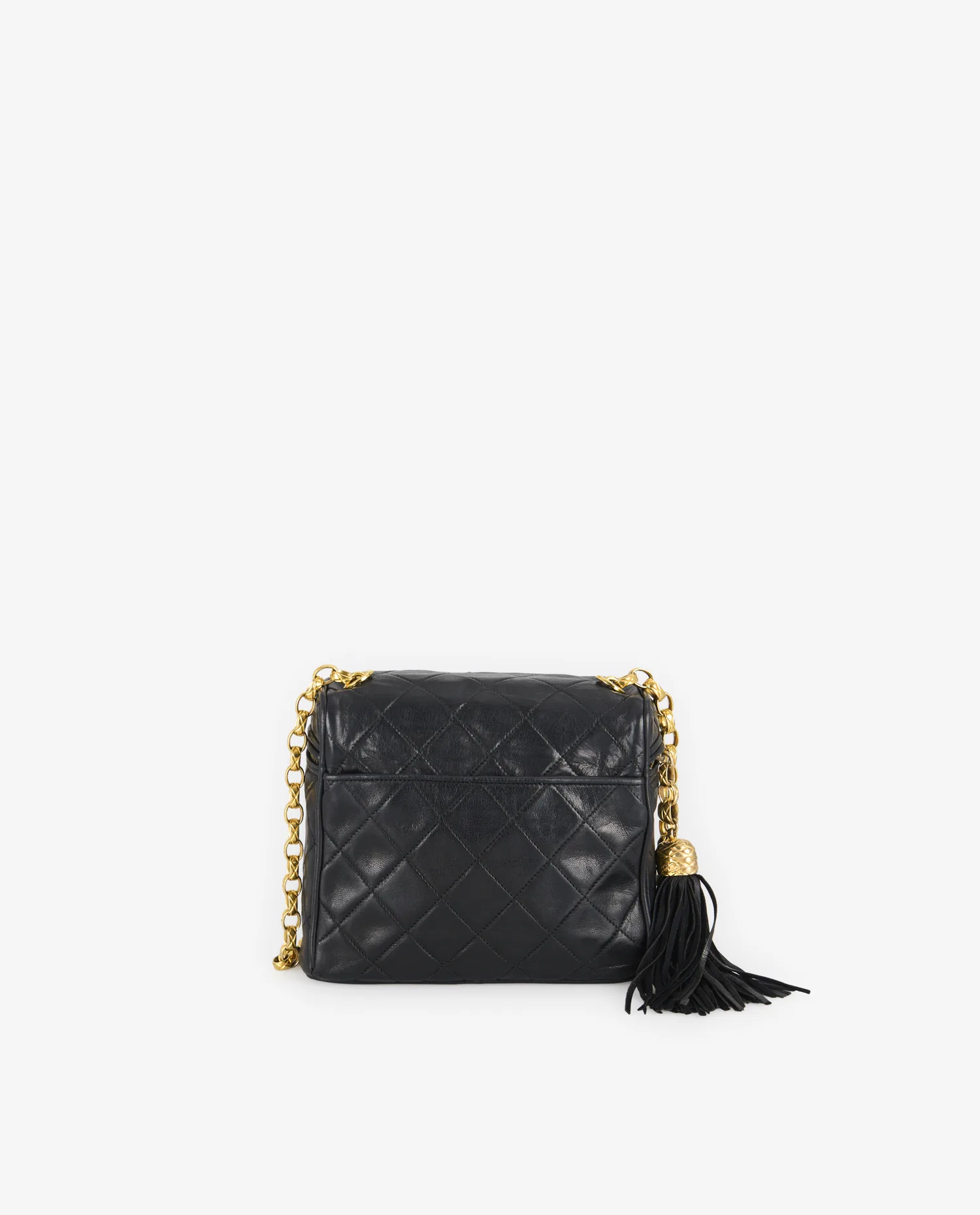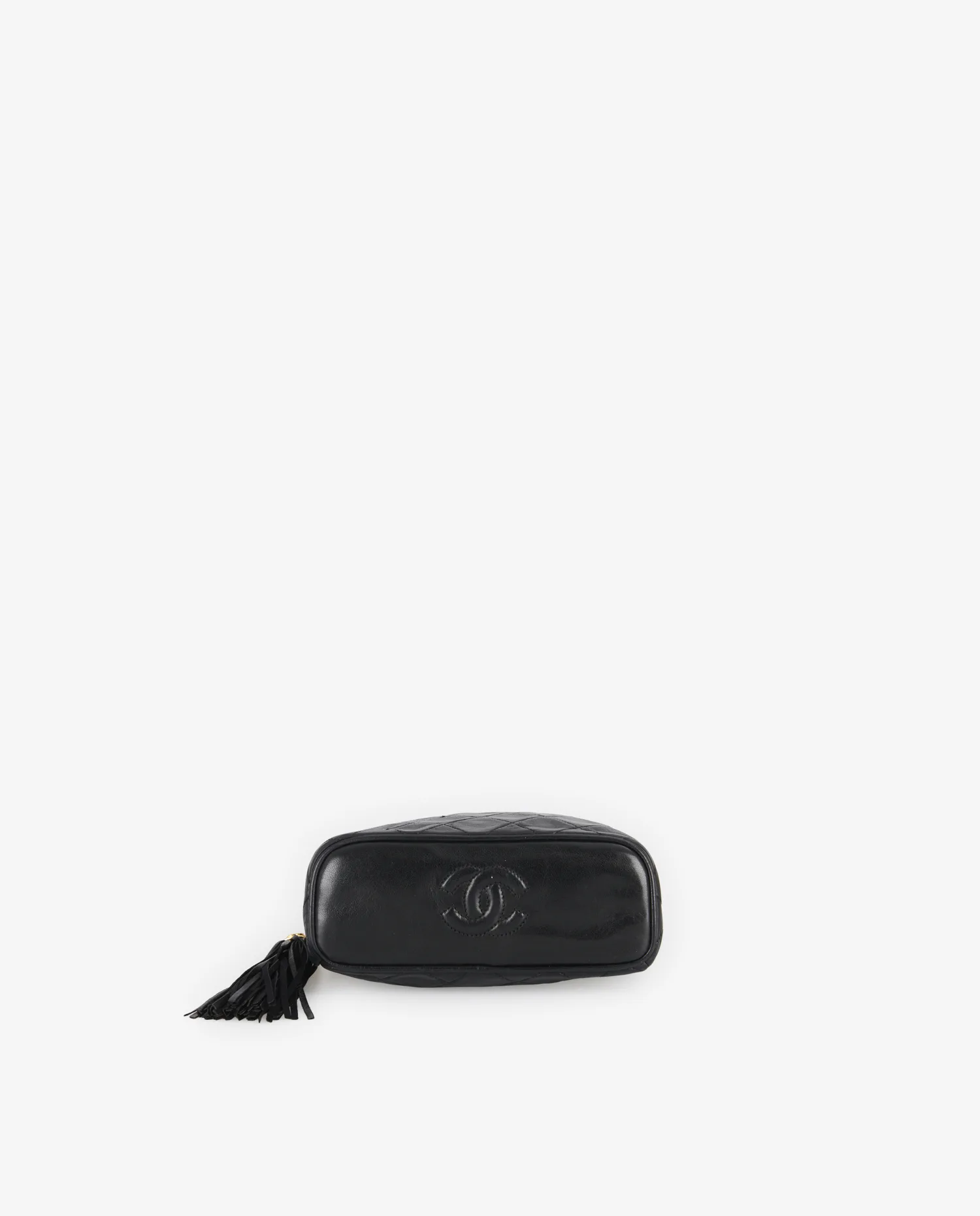 L’intérieur est intégralement doublé de cuir noir lisse, conforme aux standards de qualité des pièces Chanel vintage. Le compartiment principal est spacieux pour un modèle mini, permettant d’y ranger l’essentiel (téléphone, porte-cartes, clés, etc.). On note la présence d’une étiquette intérieure cousue, portant le numéro de série propre à cette époque. L’absence de poches internes accentue la simplicité du design.
