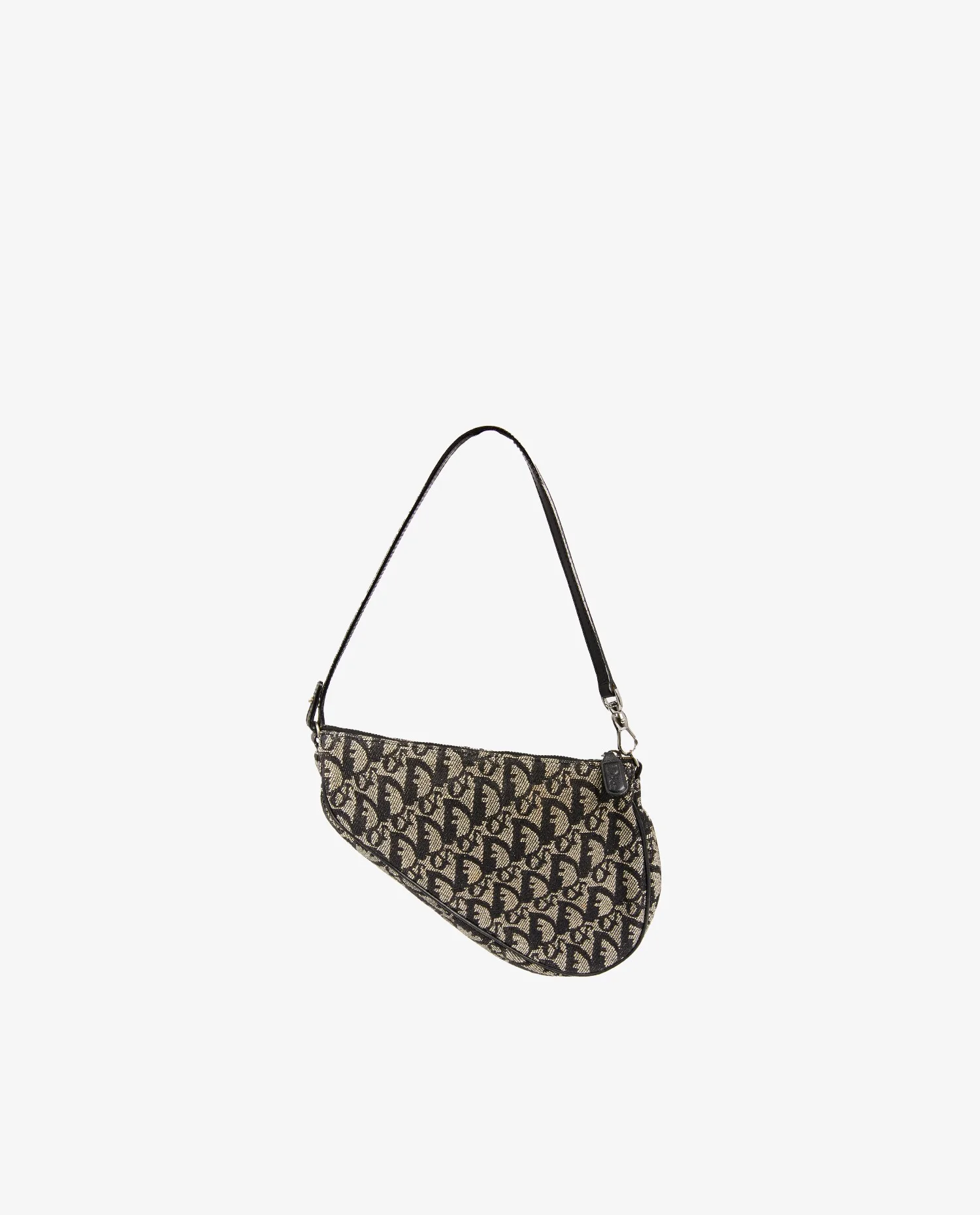 Mini saddle Christian Dior monogram bleu jean. Vintage des années 2000. La bandoulière est en cuir bleu marine. Fermeture zippée. L’intérieur est en toile bleu marine. En très bon état.