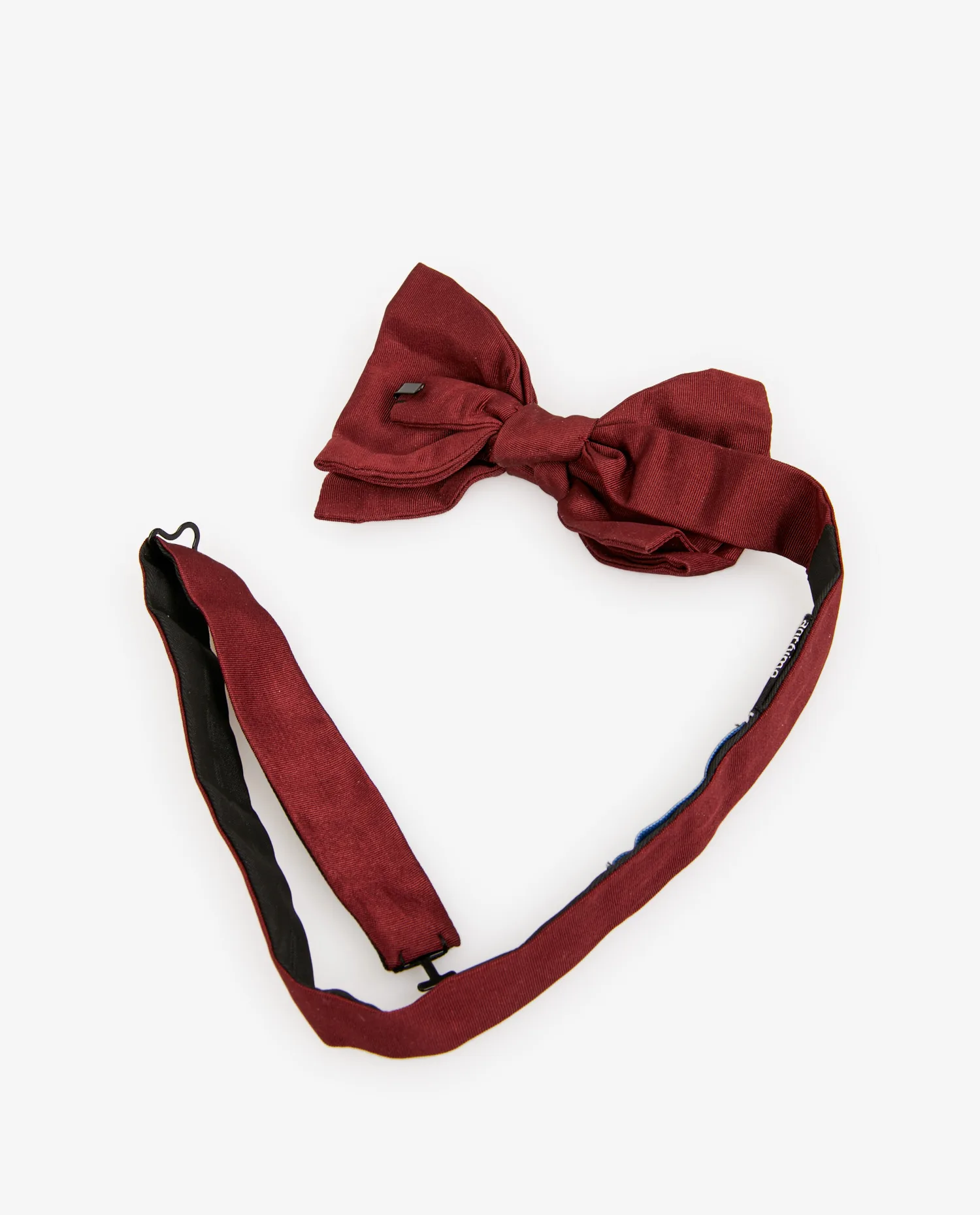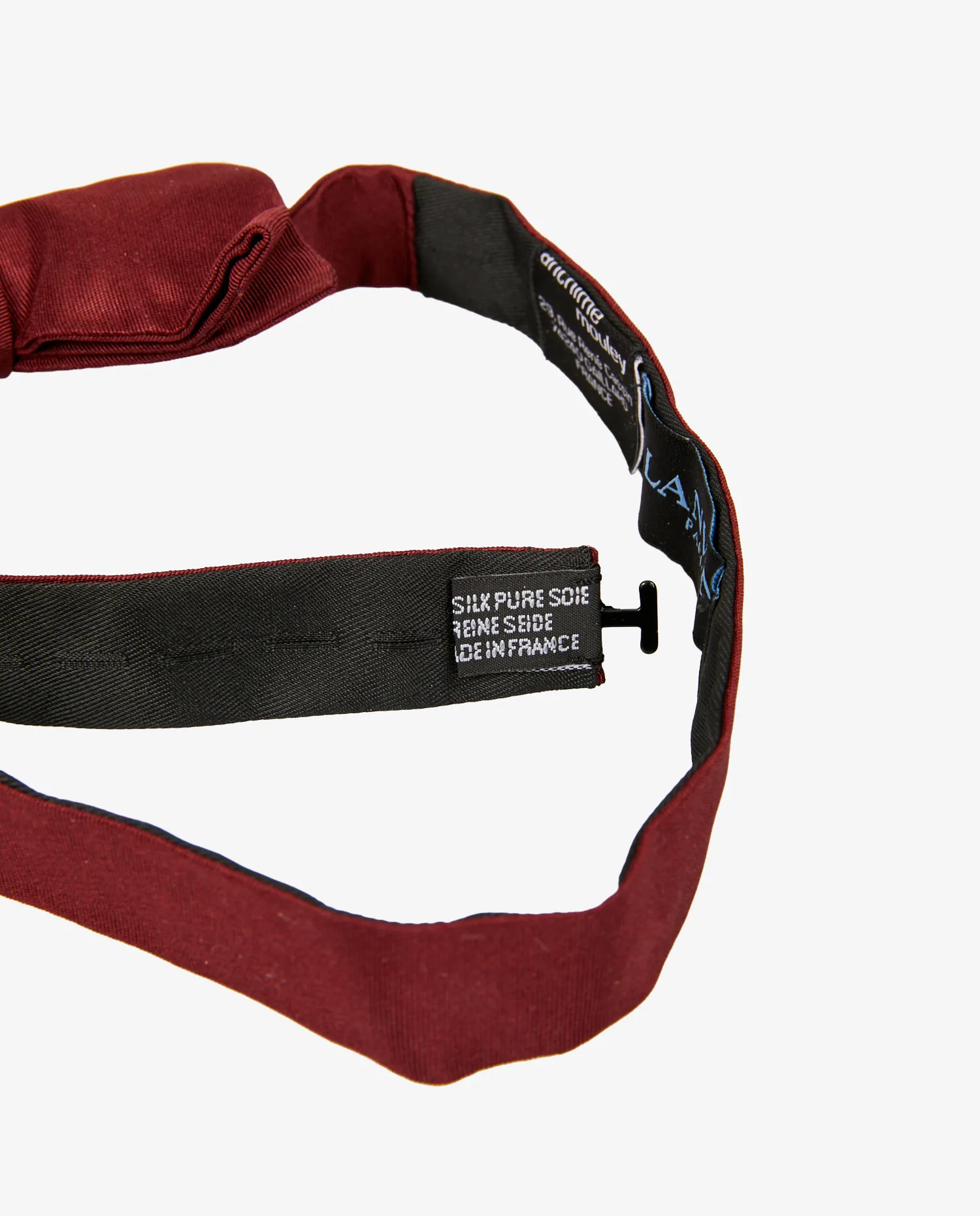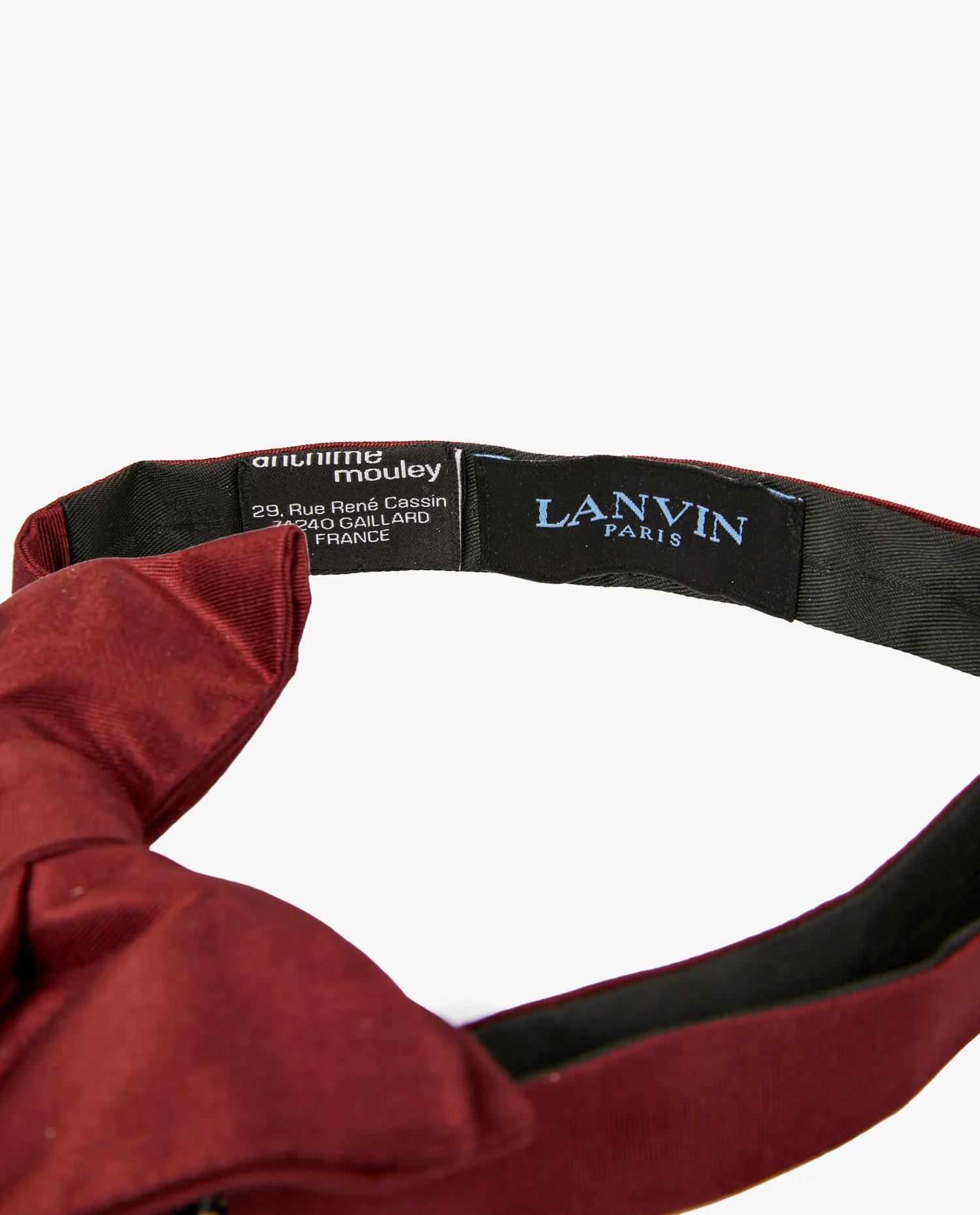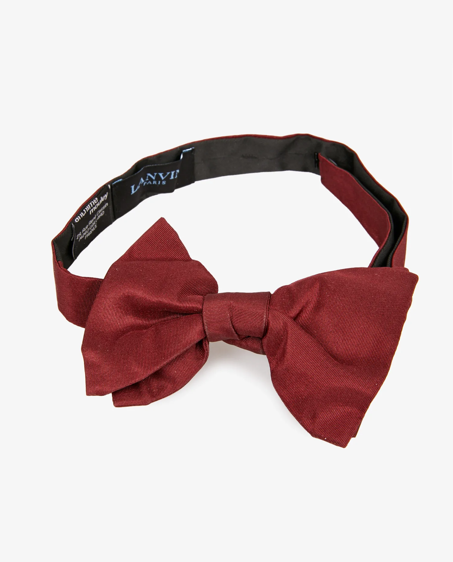 Ce noeud papillon de la Maison Lanvin en soie bordeaux est idéal pour sublimer un smoking ou une tenue de cérémonie. Son élégance sobre en fait un accessoire polyvalent, à la fois classique et moderne. Il est pré-noué avec une attache réglable. En très bon état.