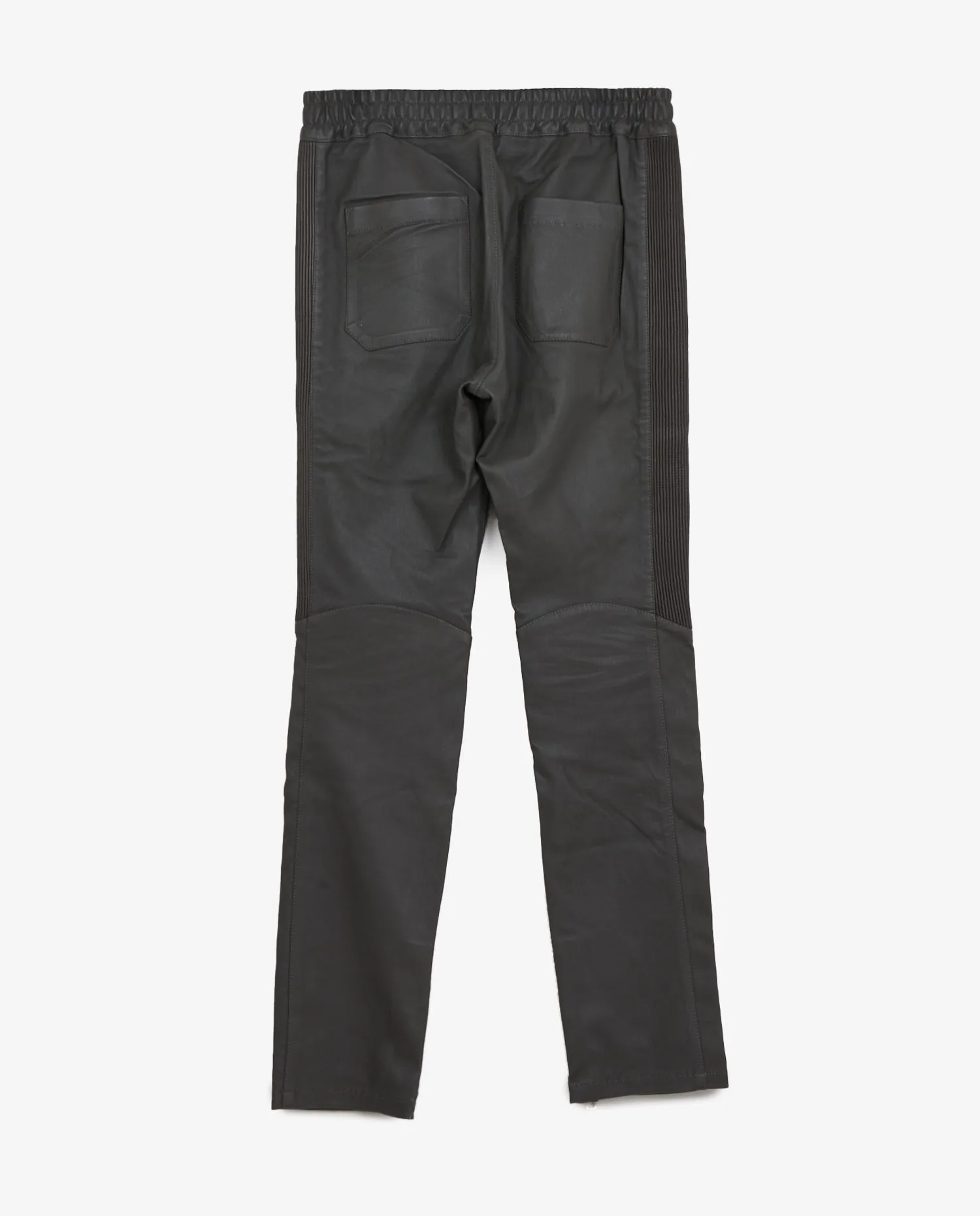 Pantalon Balmain en cuir d’agneau gris. Stretch au niveau de la taille. Coupe près du corps. Taille S. En très bon état.
