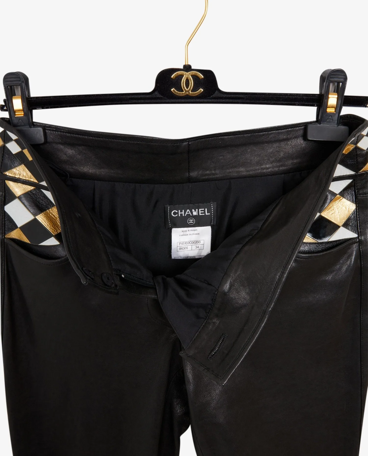 Le pantalon en cuir chez Chanel s’inscrit dans une évolution du vestiaire de la maison, notamment sous l’impulsion de Karl Lagerfeld, qui introduit des pièces plus audacieuses et contemporaines. Tout en respectant les codes classiques de Chanel, ces créations intègrent des éléments graphiques et des matières plus affirmées. Ce modèle illustre cette période où le cuir devient un support d’expression moderne, tout en restant fidèle à l’exigence de finition de la maison.