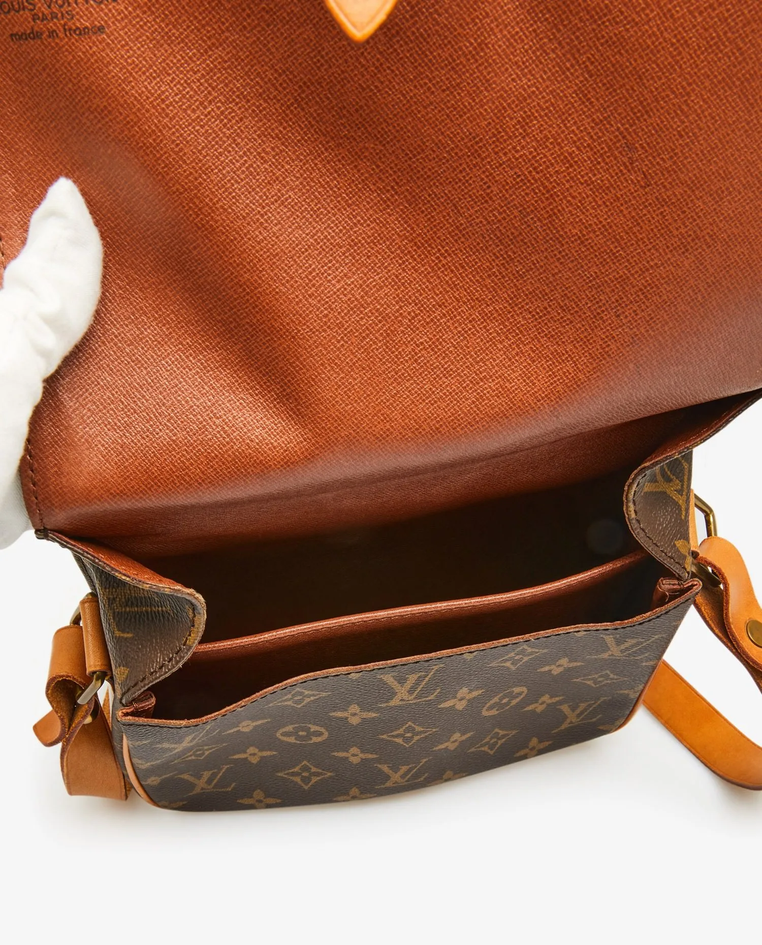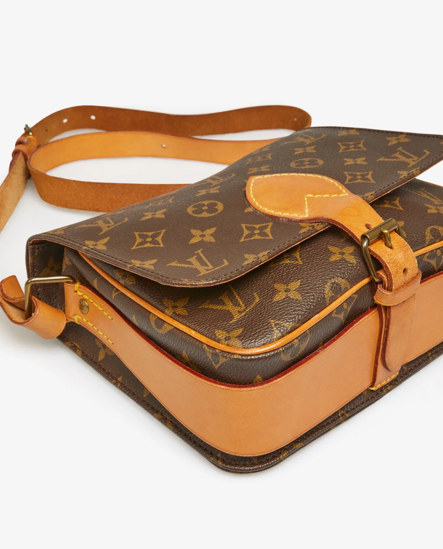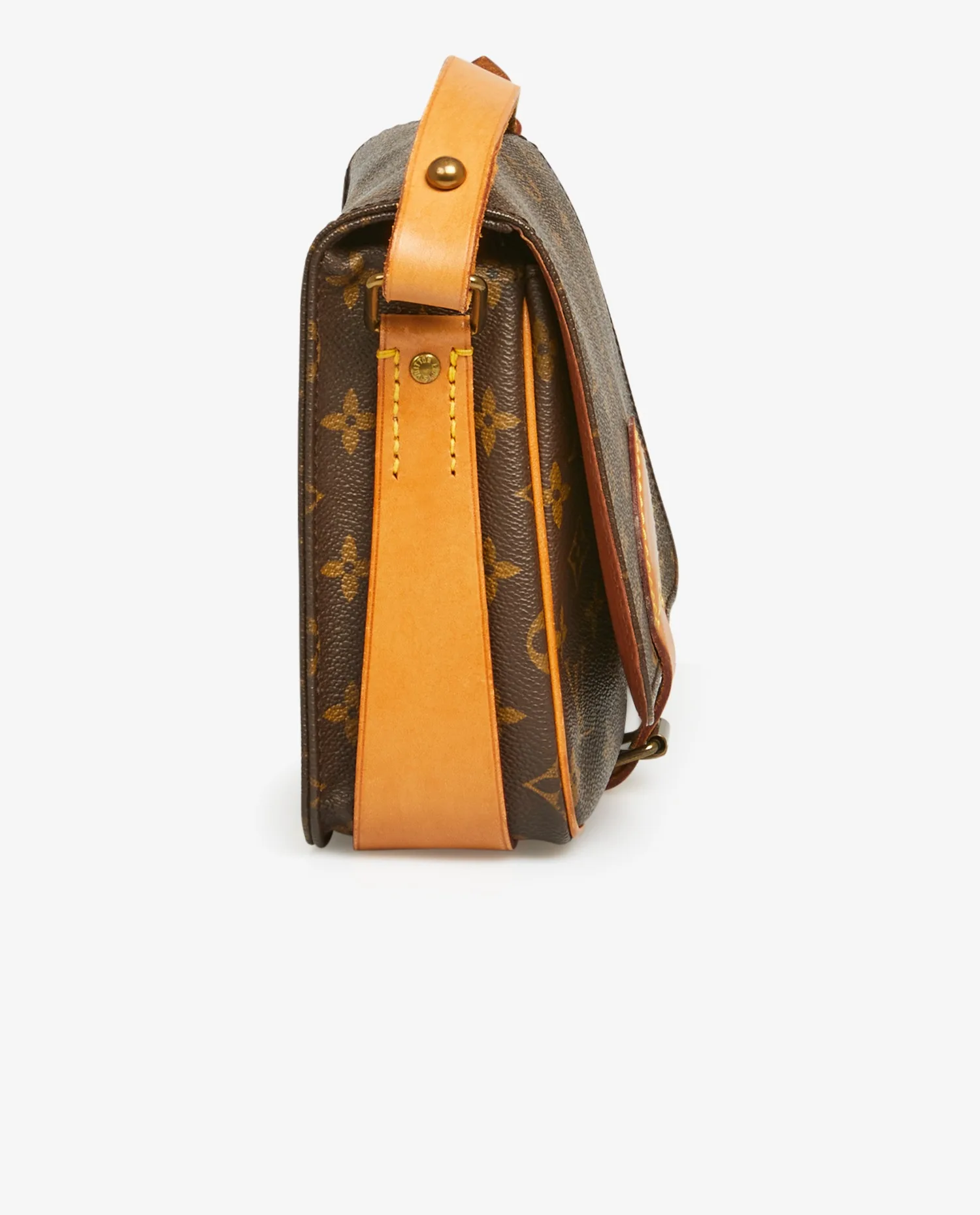 Petite sacoche Louis Vuitton en toile monogram et cuir de vachette. A l’intérieur, 2 espaces de rangement. Porté épaule ou crossbody. La bandoulière mesure au plus court 109cm et au plus long 117cm. Possibilité de rajouter un trou pour la raccourcir. En très bon état. Une petite tâche d’usure naturelle sous le sac mais peu visible. Voir photos.