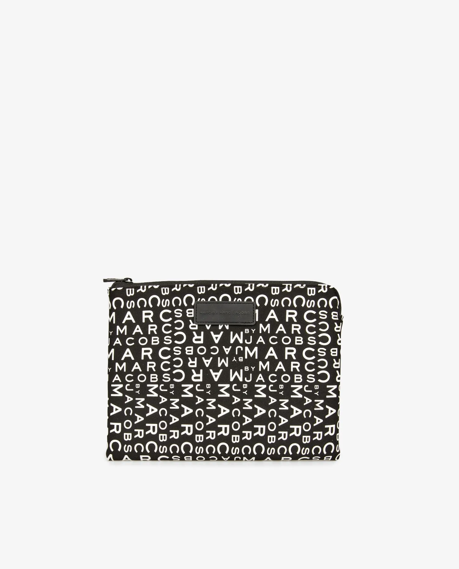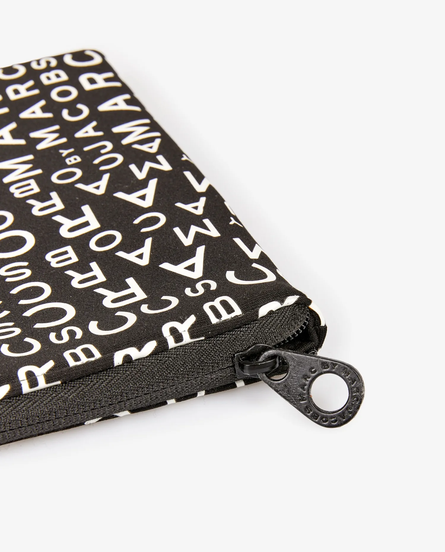 Pochette zippée Marc Jacobs en tissu noir et blanc. En très bon état.
