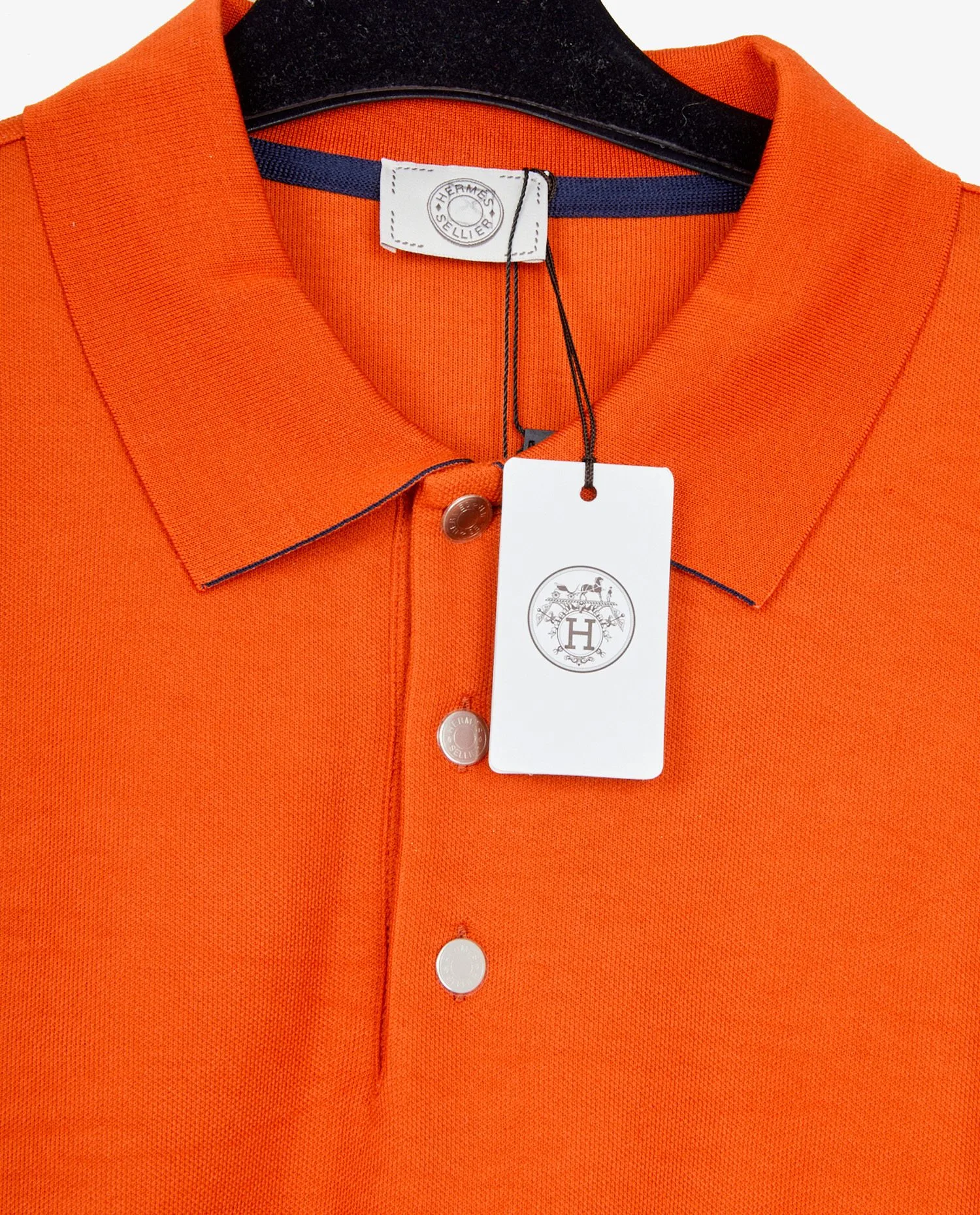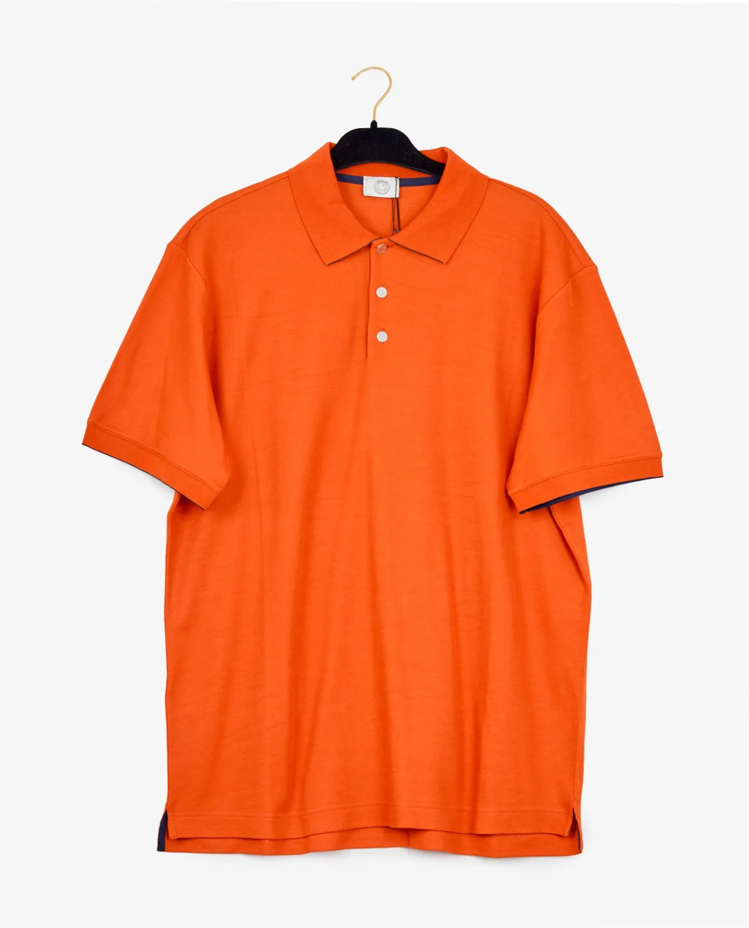 Polo Hermès en coton stretch orange. Taille XXL, équivaut à une taille 52. Etat neuf. Etiquette de la marque toujours présente.