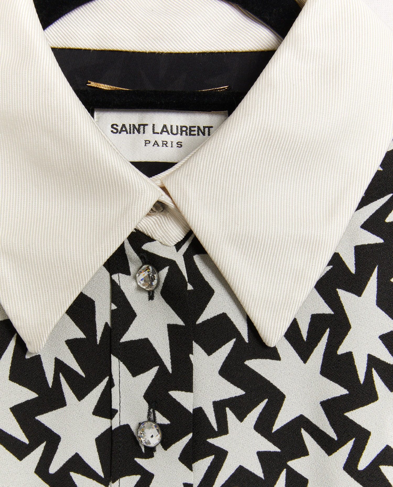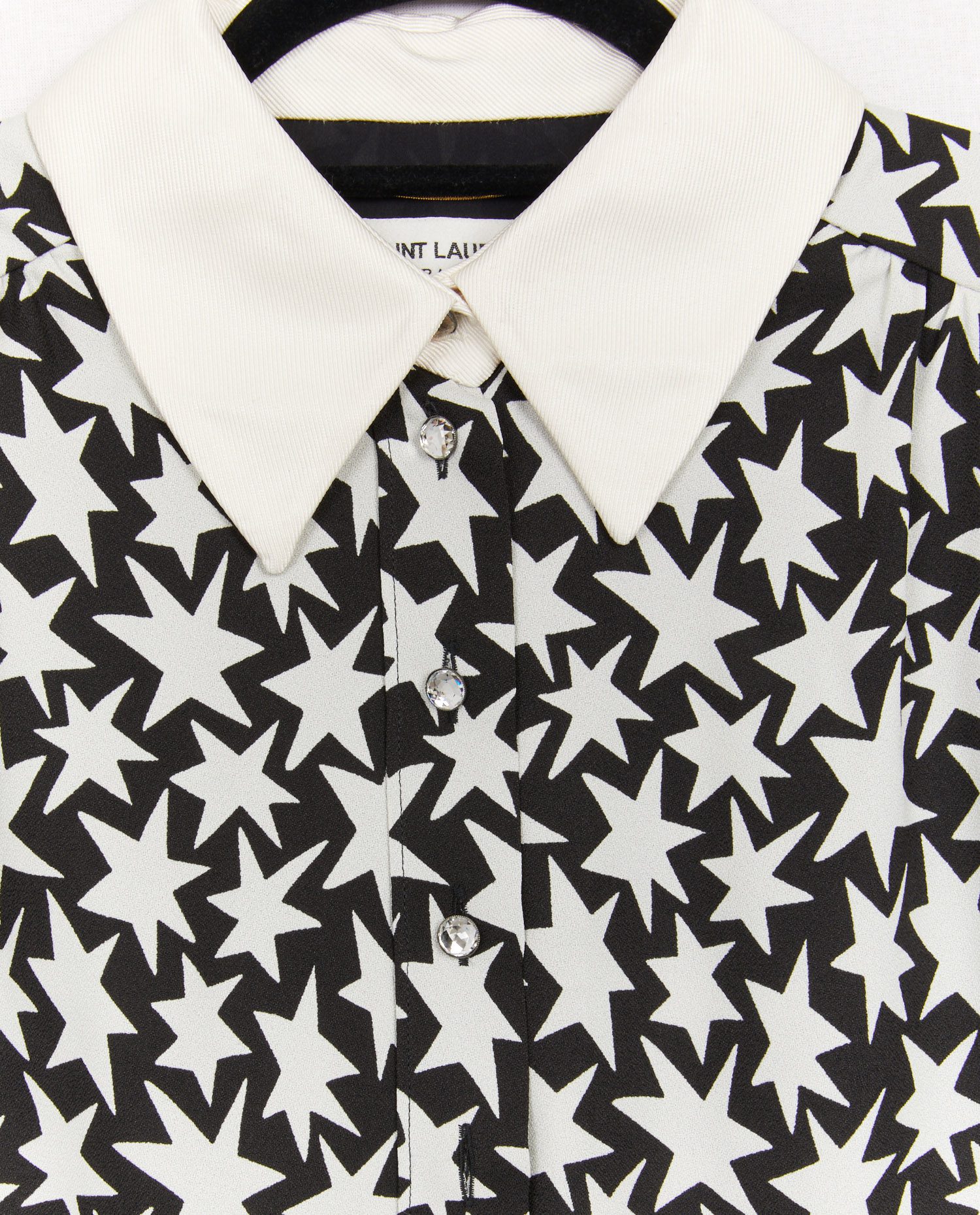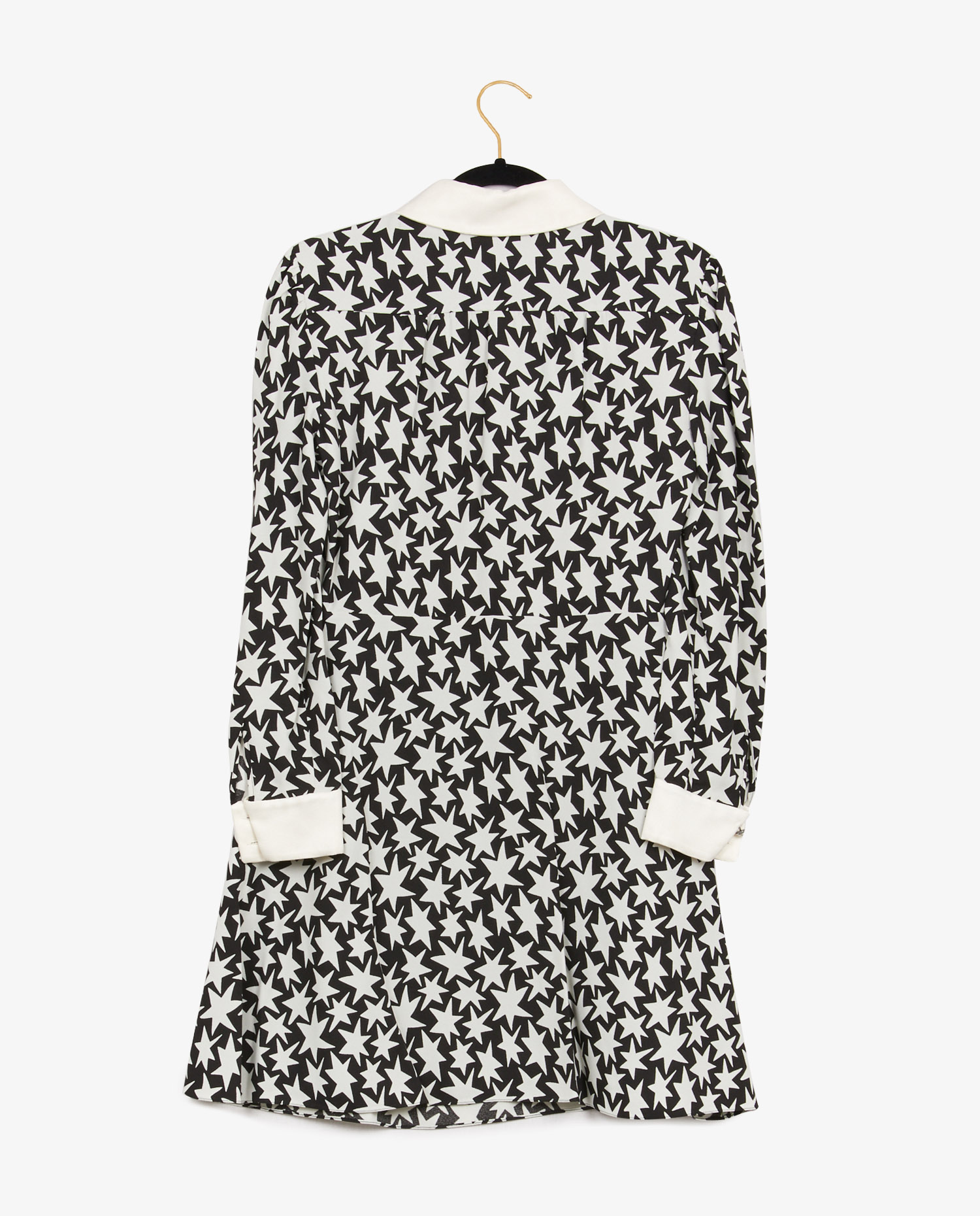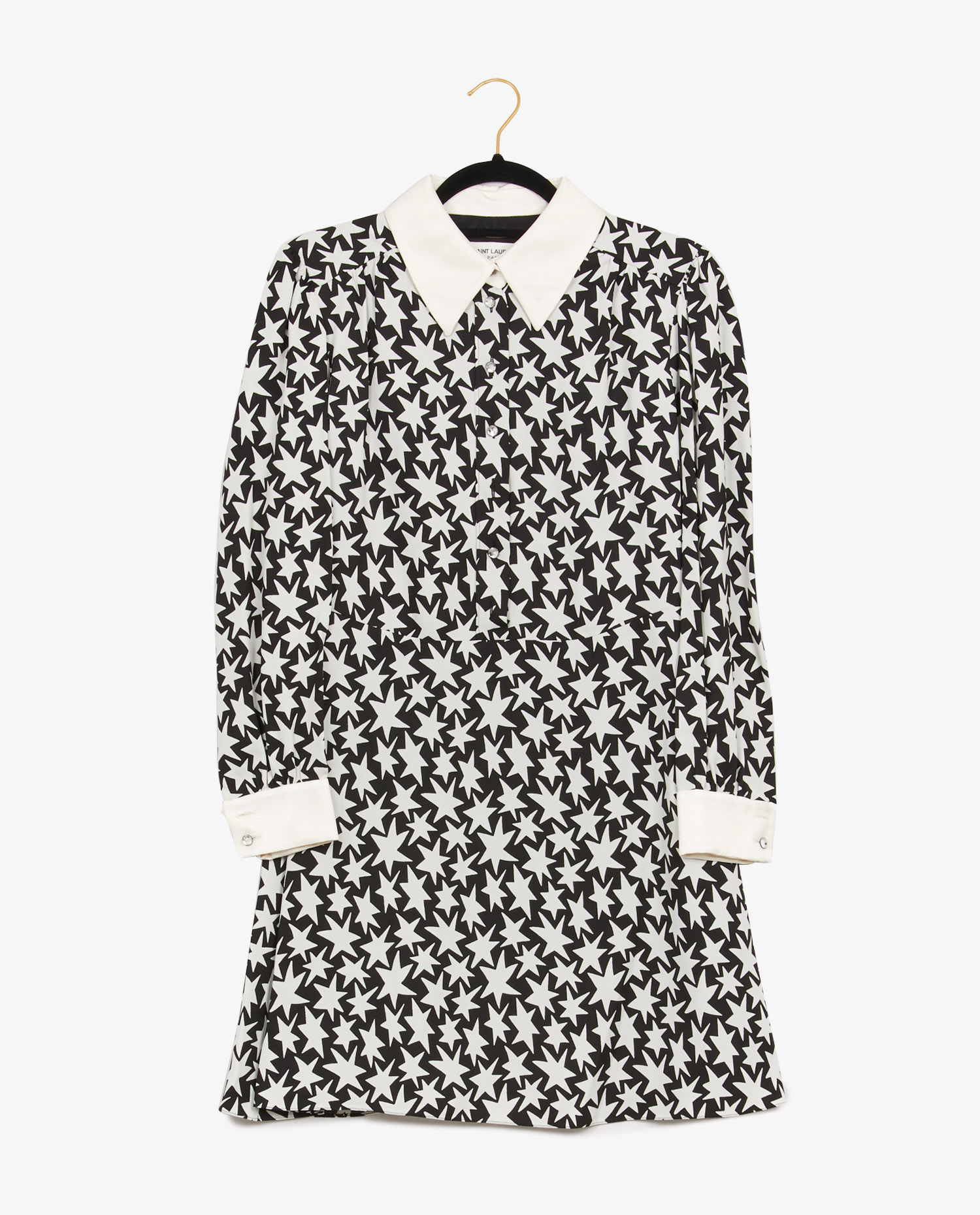 Robe chemise Saint Laurent bicolore noire et blanche en viscose et col en soie. Doublure en soie. En très bon état.