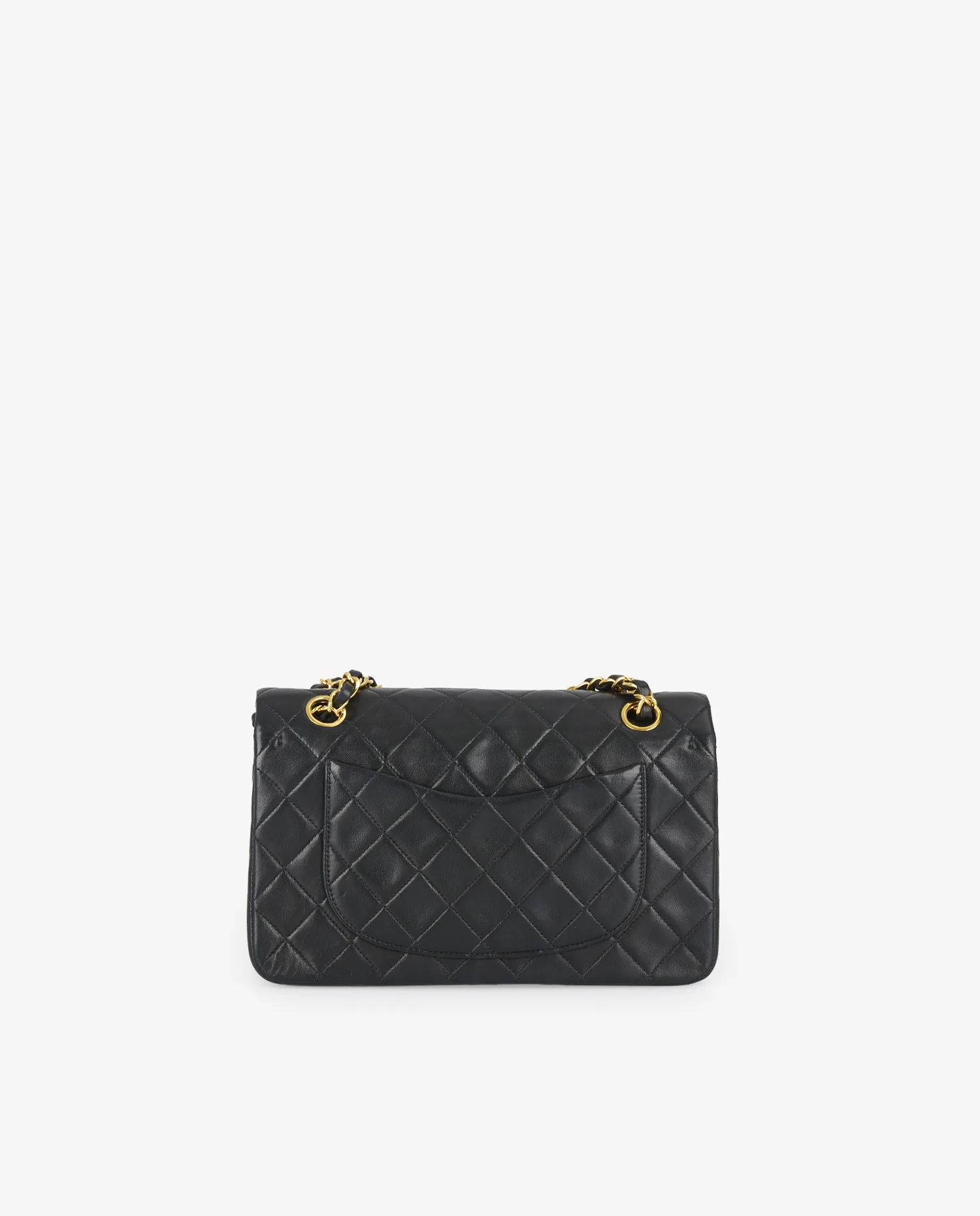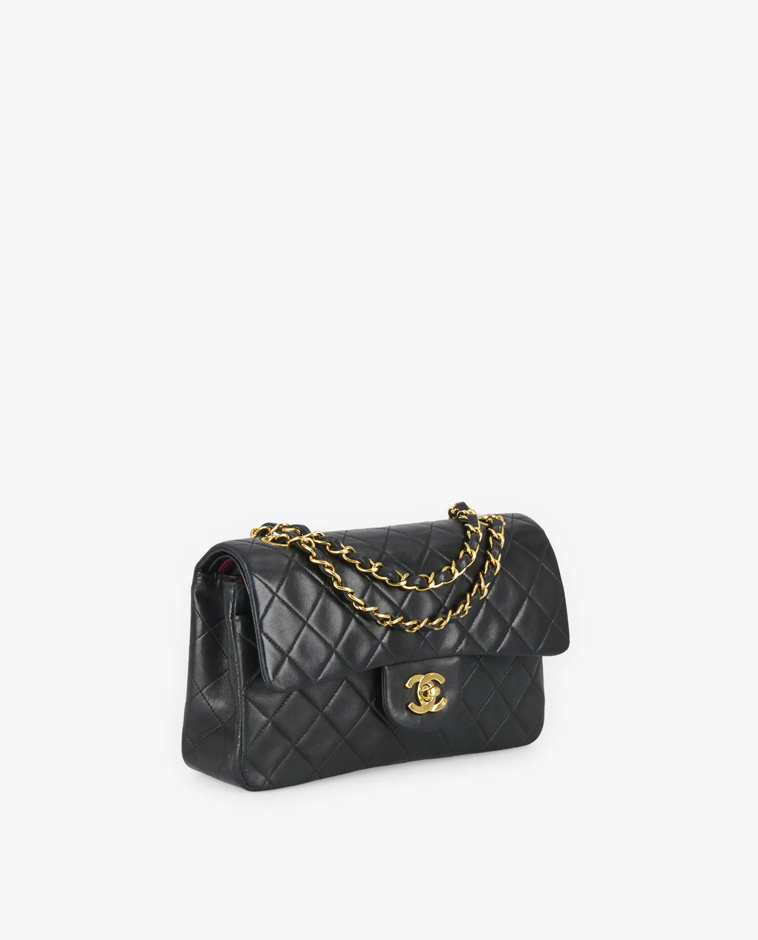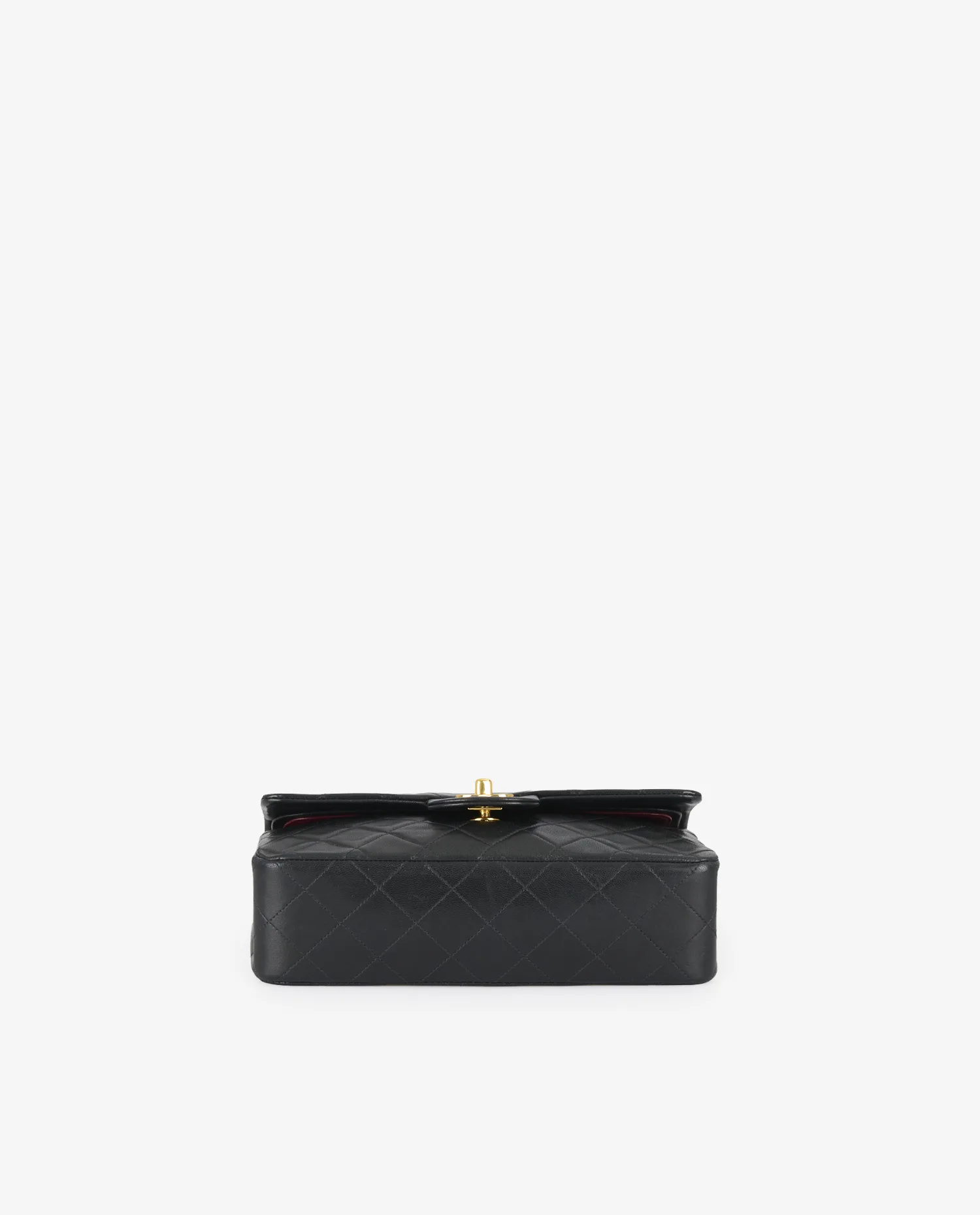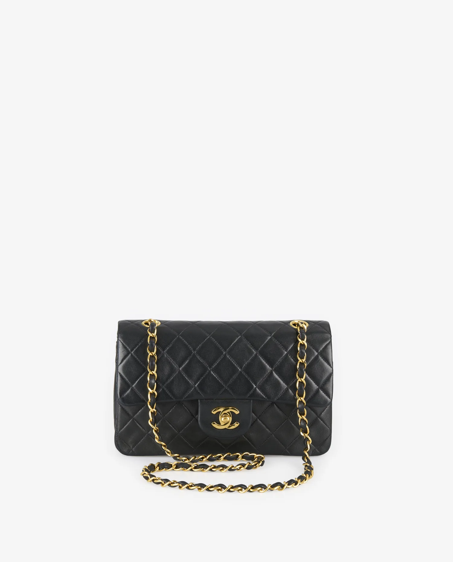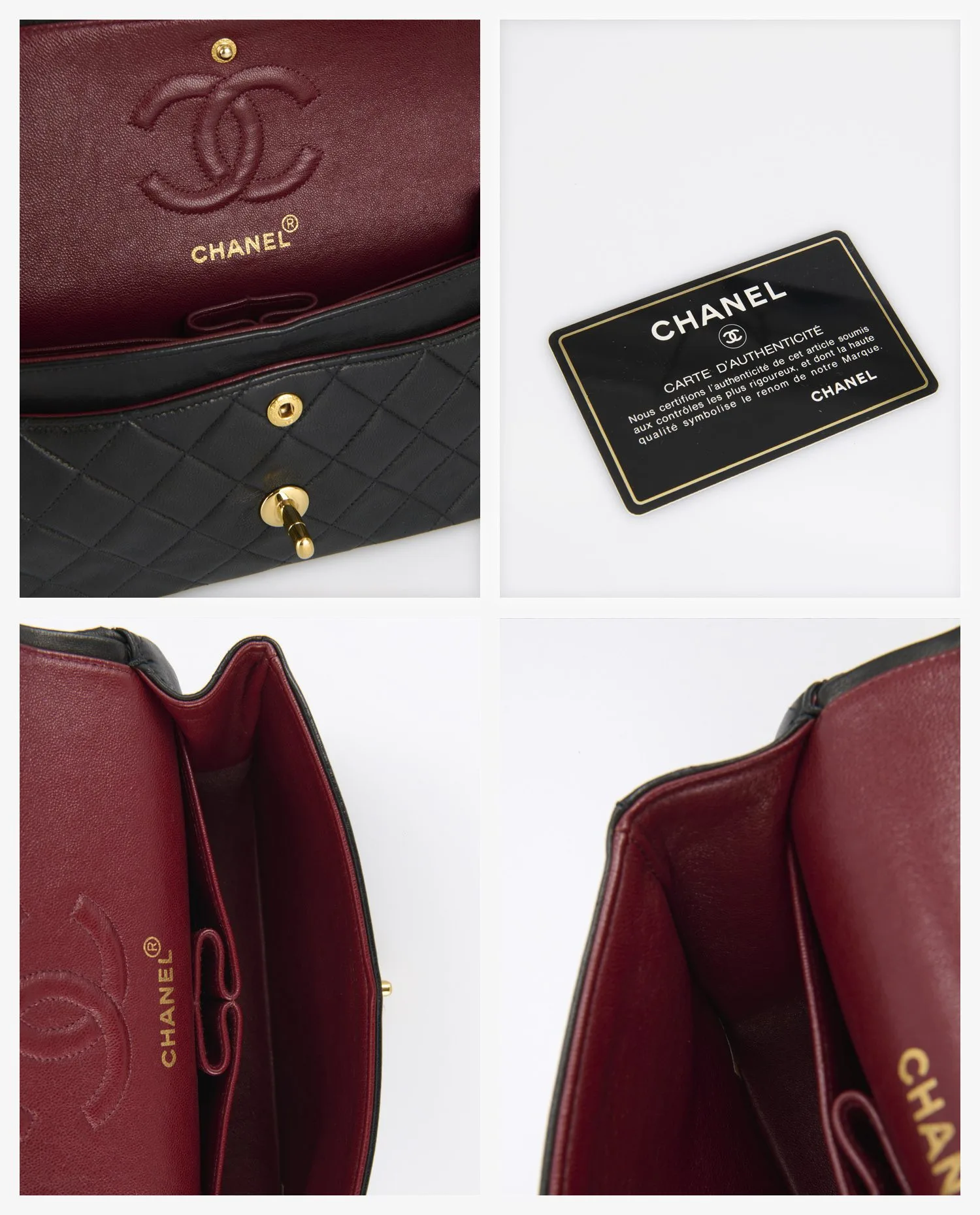 Ce modèle fait partie des sacs emblématiques introduits à partir des années 1980 sous la direction de Karl Lagerfeld, qui a revisité le célèbre 2.55 de Gabrielle Chanel. Le cuir d’agneau, le matelassage en losange et le fermoir à double C sont devenus les éléments distinctifs de la maison. Cette version classique perpétue l’héritage du modèle Flap Bag, devenu une référence incontournable dans l’univers du sac de luxe vintage.