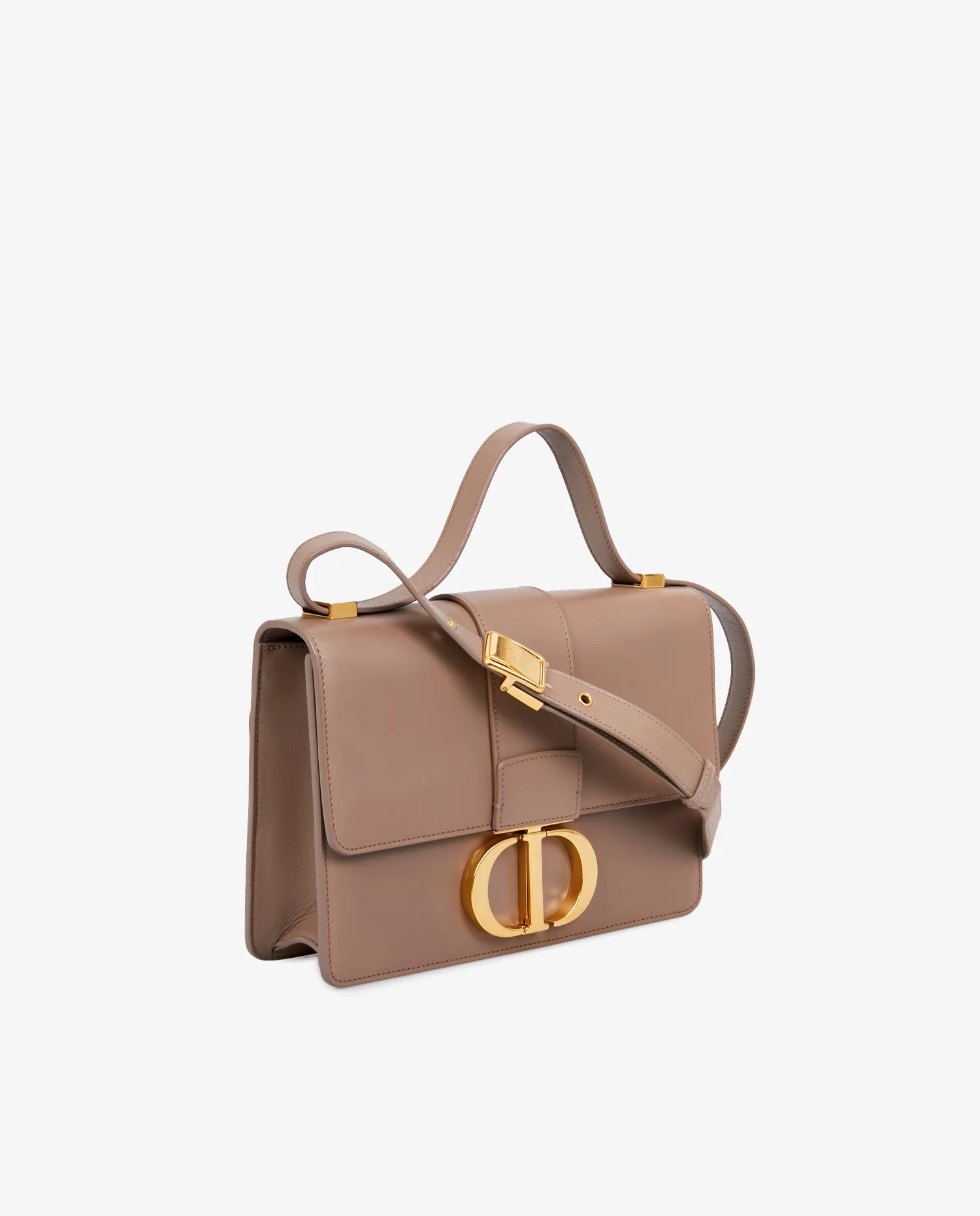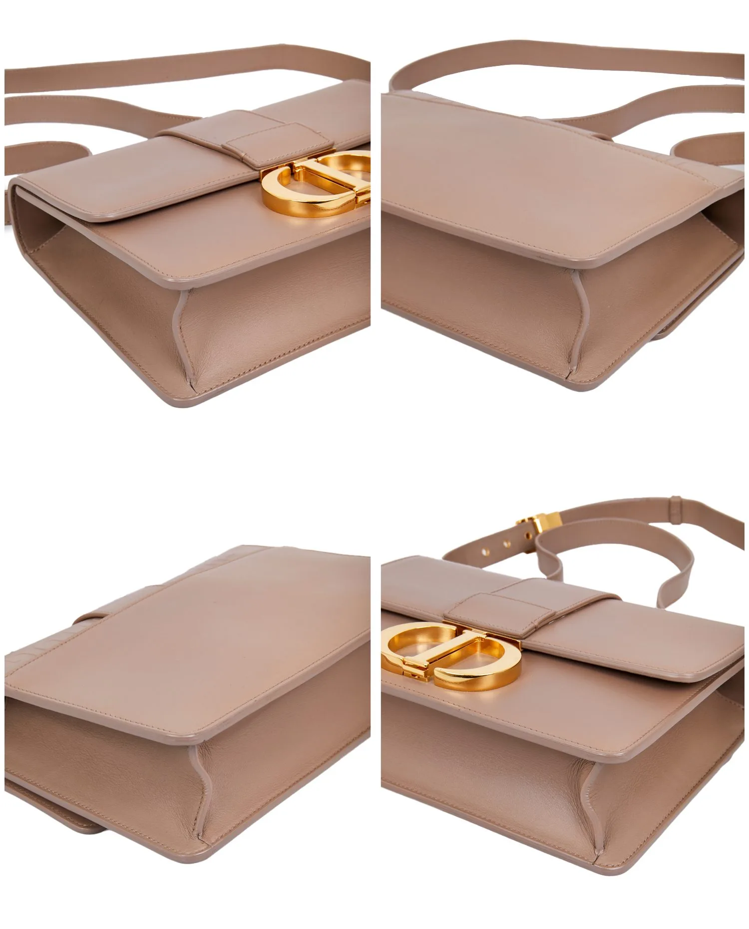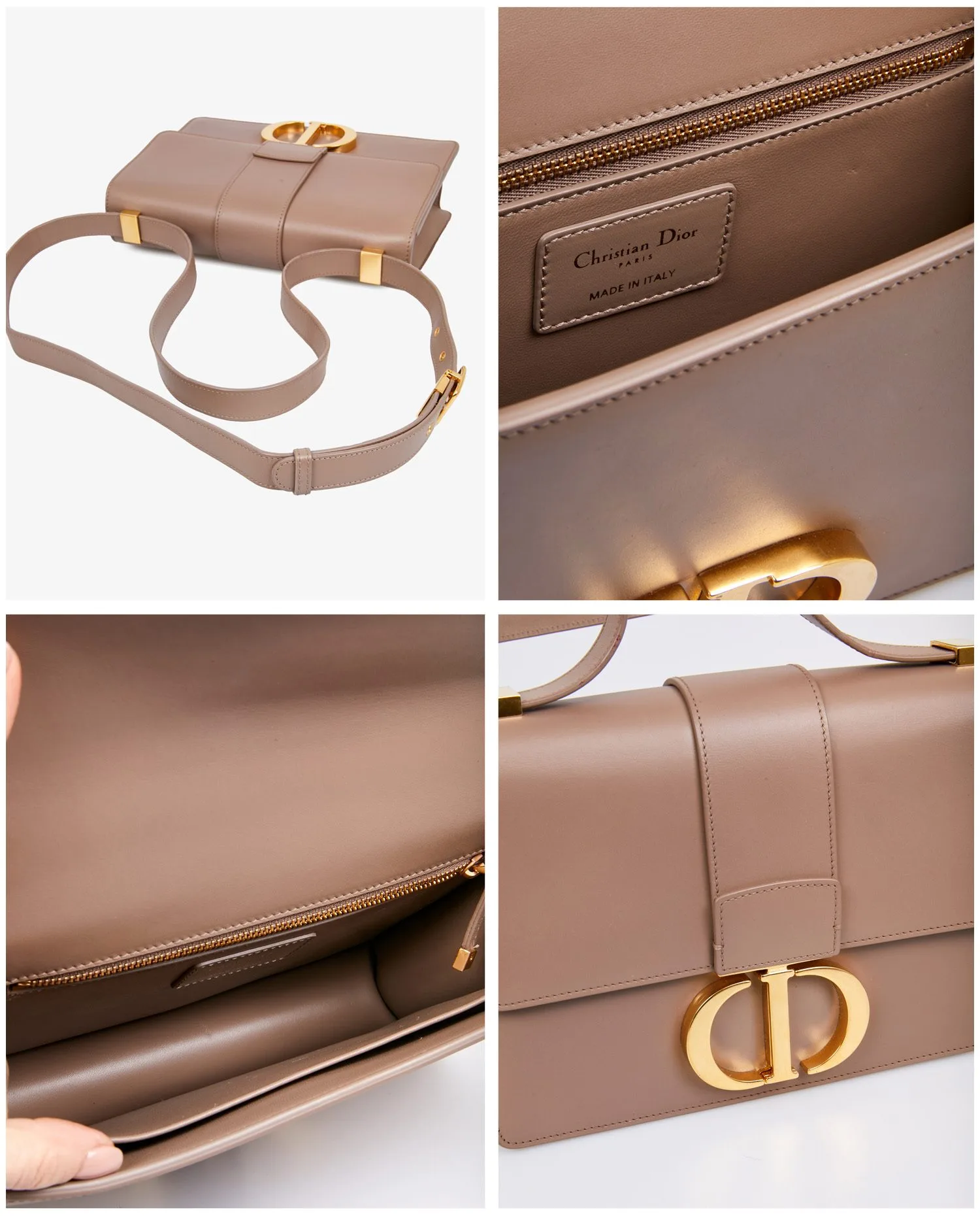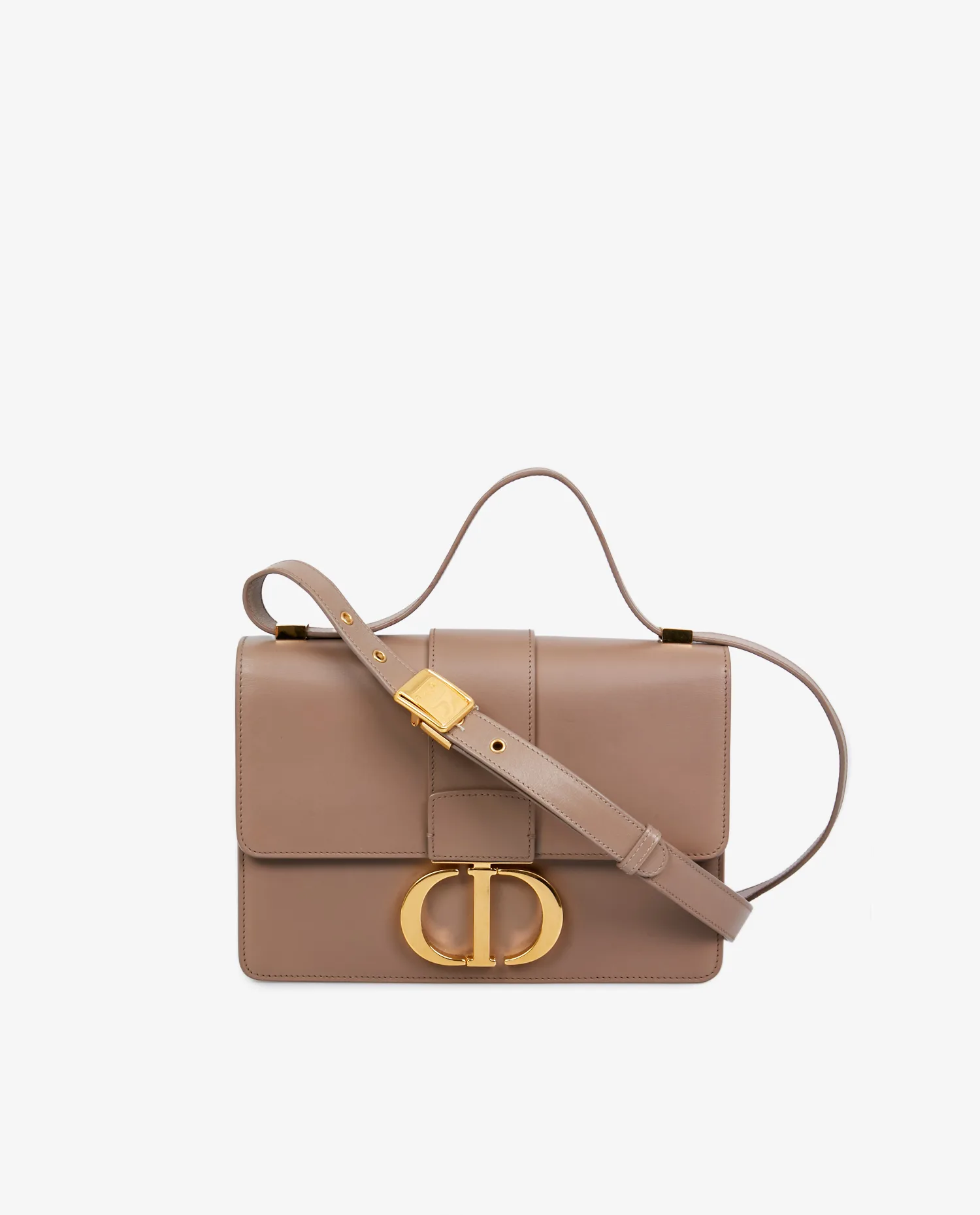 Sac 30 Montaigne Dior en cuir lisse beige. Porté épaule en double et en bandoulière. Bijouterie dorée. En très bon état.