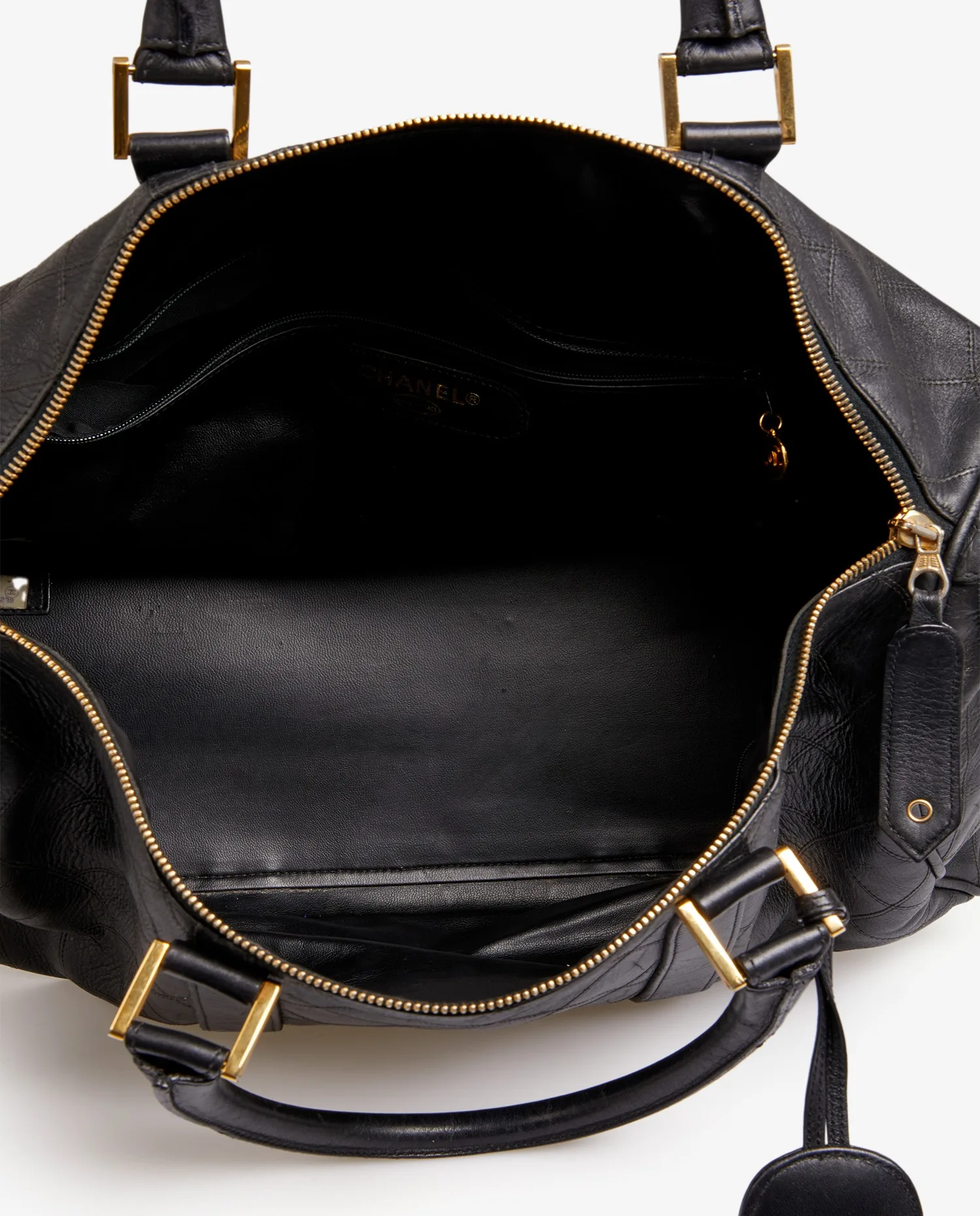 Sac 48H Chanel en cuir noir. Il se porte à la main et à l’aide d’une bandoulière amovible qui mesure 94cm. Fermeture centrale zippée. En très bon état. Quelques griffures sous le sac. Voir photos.