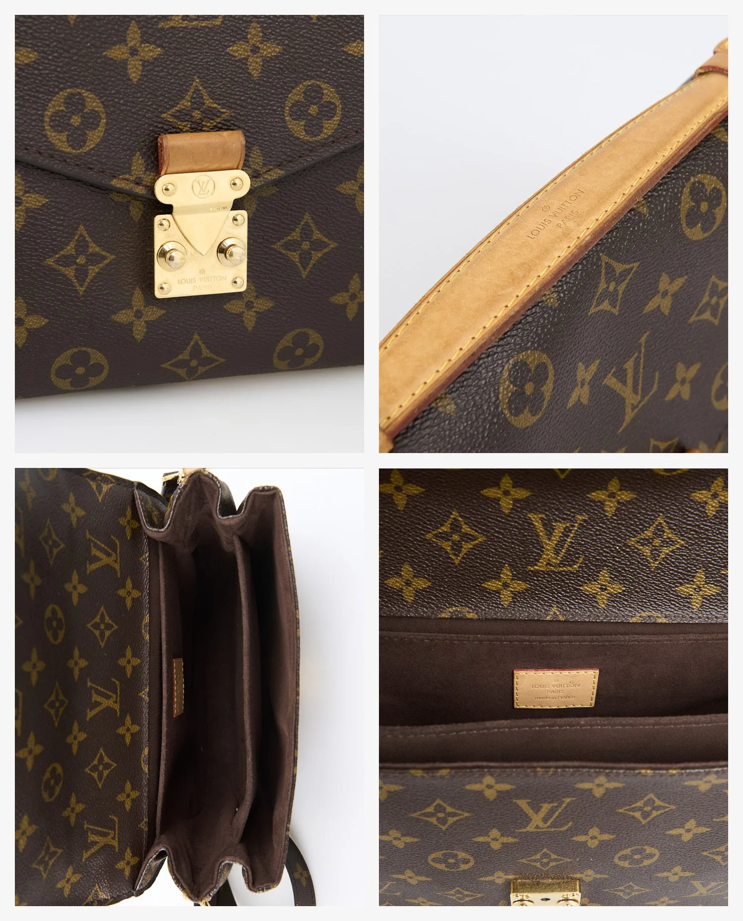 Ce modèle est en très bon état général avec des signes d’usure modérés sur les coins inférieurs et le cuir naturel, qui a développé une patine caractéristique des sacs Louis Vuitton vintage. Les parties métalliques montrent de légères micro-rayures, sans altération fonctionnelle. L’intérieur est propre, sans accroc ni tache notable. Les coutures extérieures sont bien conservées, reflétant une utilisation soigneuse.