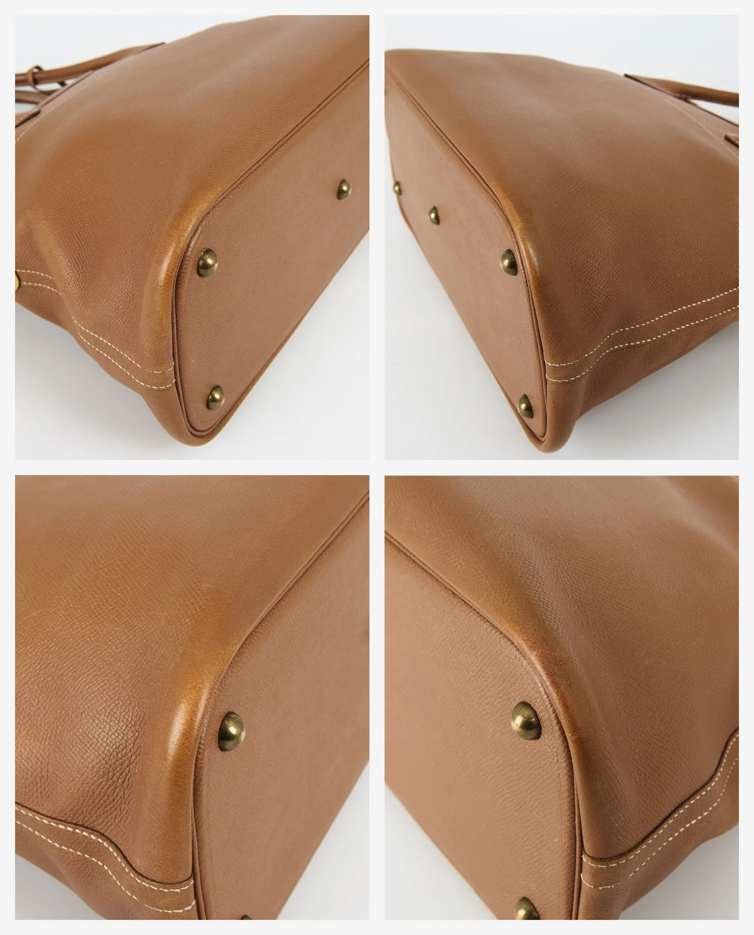 Le sac montre des signes d’usure localisés, notamment aux coins et à la base, visibles sur les photos détaillées. Le cuir reste souple et homogène, avec une belle patine. Les poignées sont solides, les coutures intactes et la fermeture éclair fonctionne parfaitement. L’intérieur présente quelques marques d’usage, sans dommage structurel.