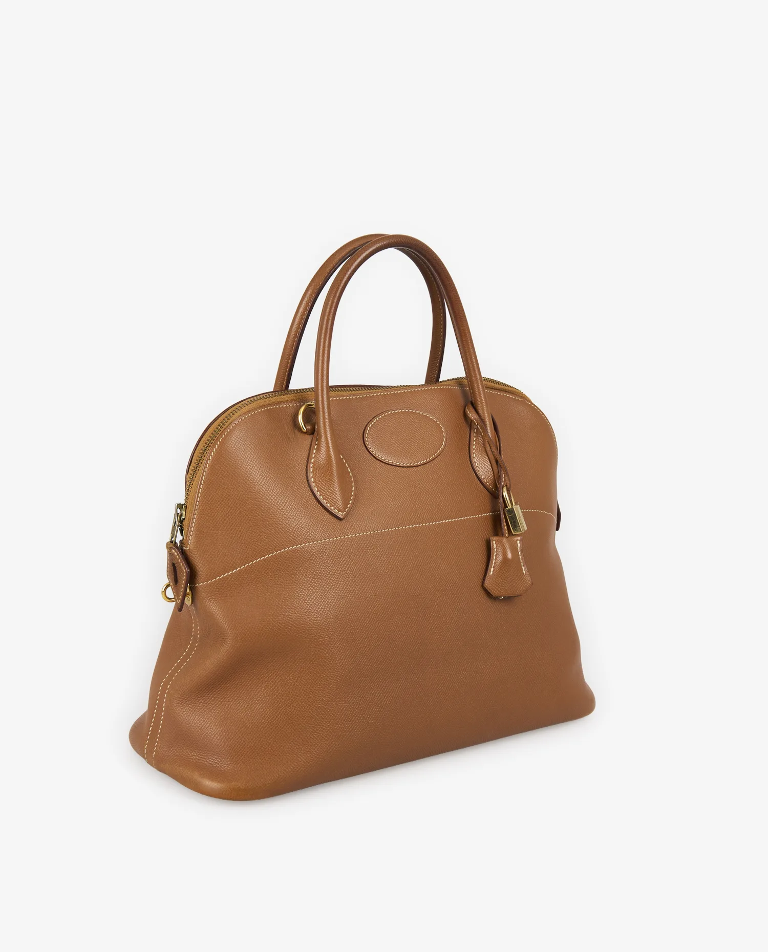 Le modèle Bolide est l’un des premiers sacs à fermeture zippée de l’histoire de la maroquinerie. Créé par Hermès en 1923, il fut initialement conçu pour les voyages automobiles, d’où son nom évoquant la vitesse. Ce sac innovant a marqué un tournant dans l’histoire du luxe utilitaire. Le cuir Courchevel, utilisé notamment à la fin des années 60 et dans les années 70, est apprécié pour sa légèreté, sa texture grainée fine et sa grande résistance. Ce sac de 1971 s’inscrit dans la tradition d’excellence artisanale d’Hermès, tout en reflétant le design sobre et pratique qui a fait la renommée du modèle.