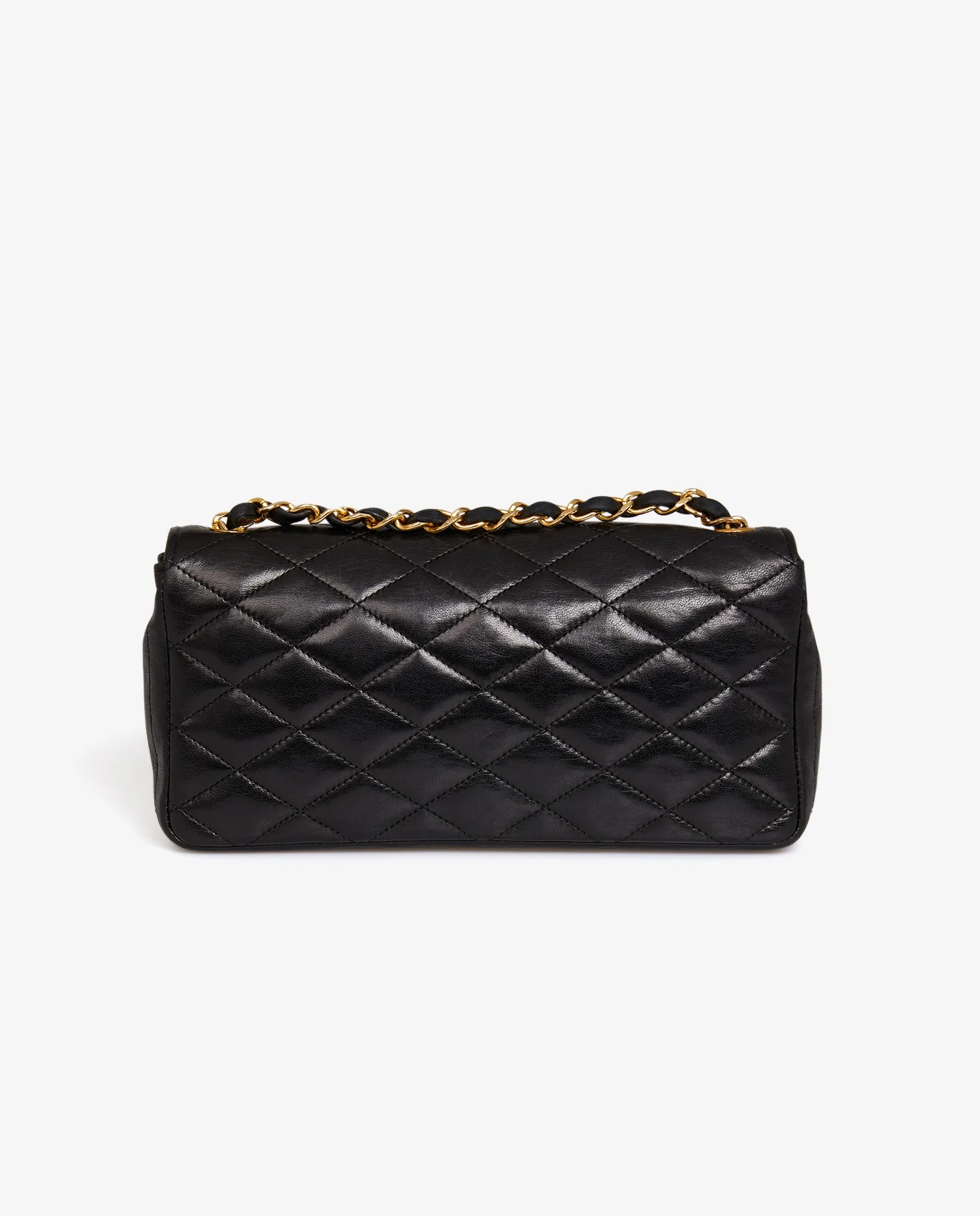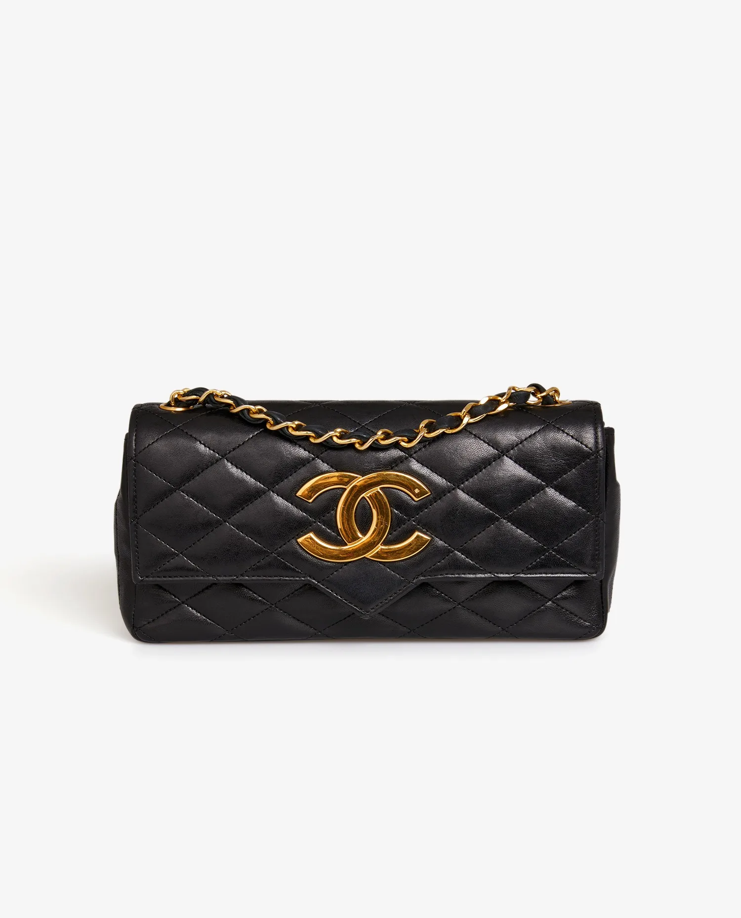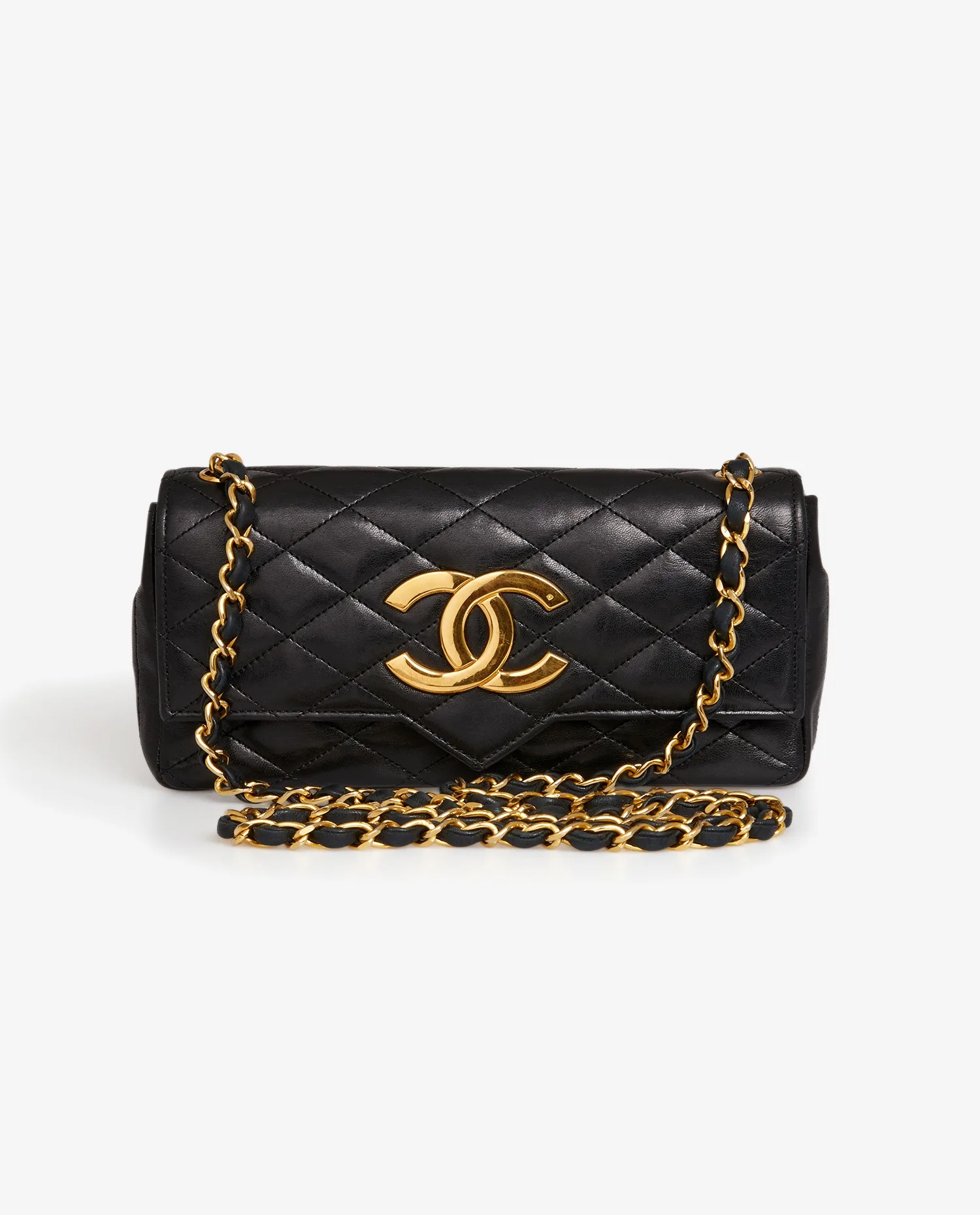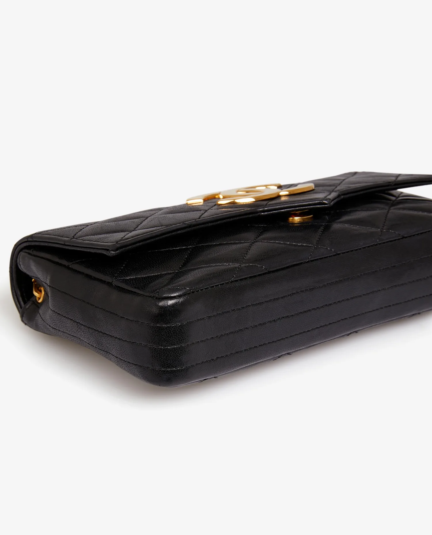 Sac Chanel vintage datant des années 80 en cuir d’agneau noir. Porté épaule ou crossbody. Elle mesure 111cm. L’intérieur est en cuir bordeaux. En très bon état. Légères rayures sur le CC de la bijouterie.