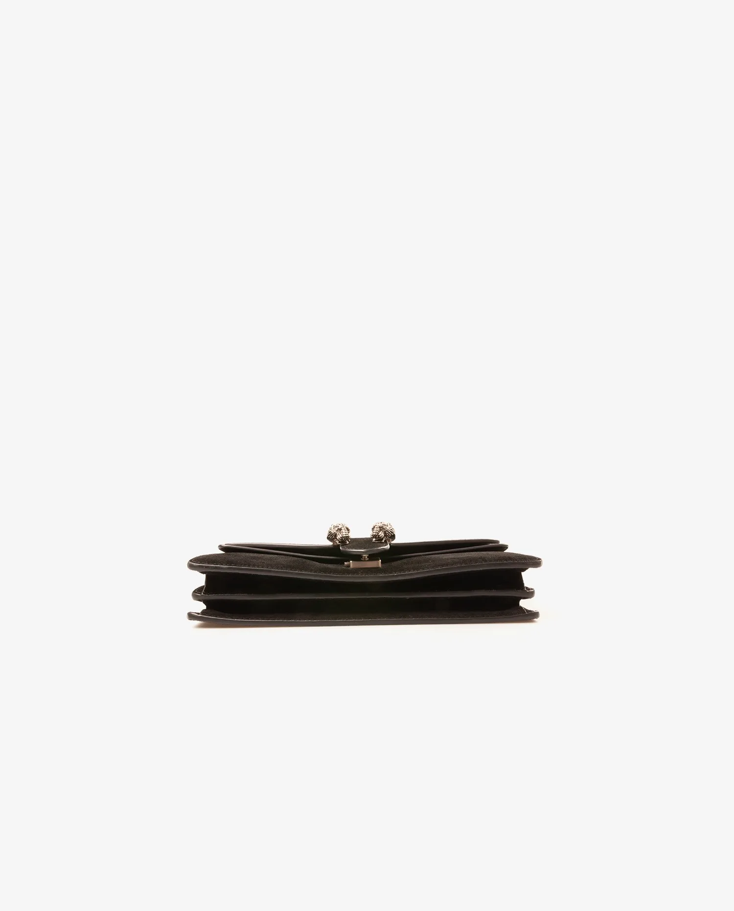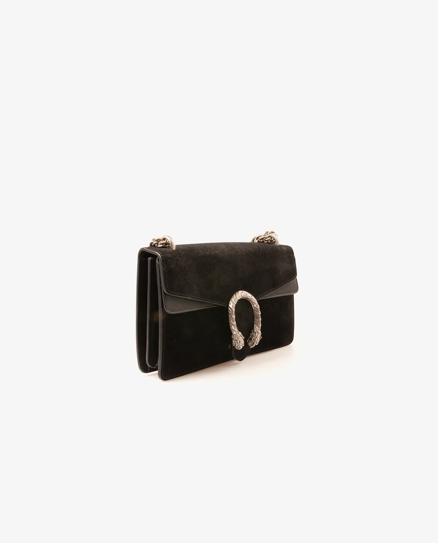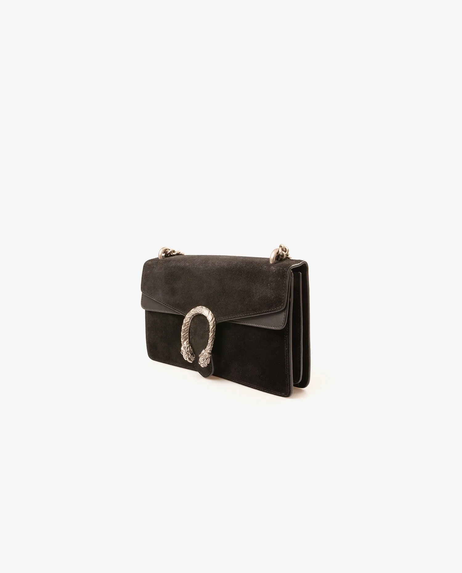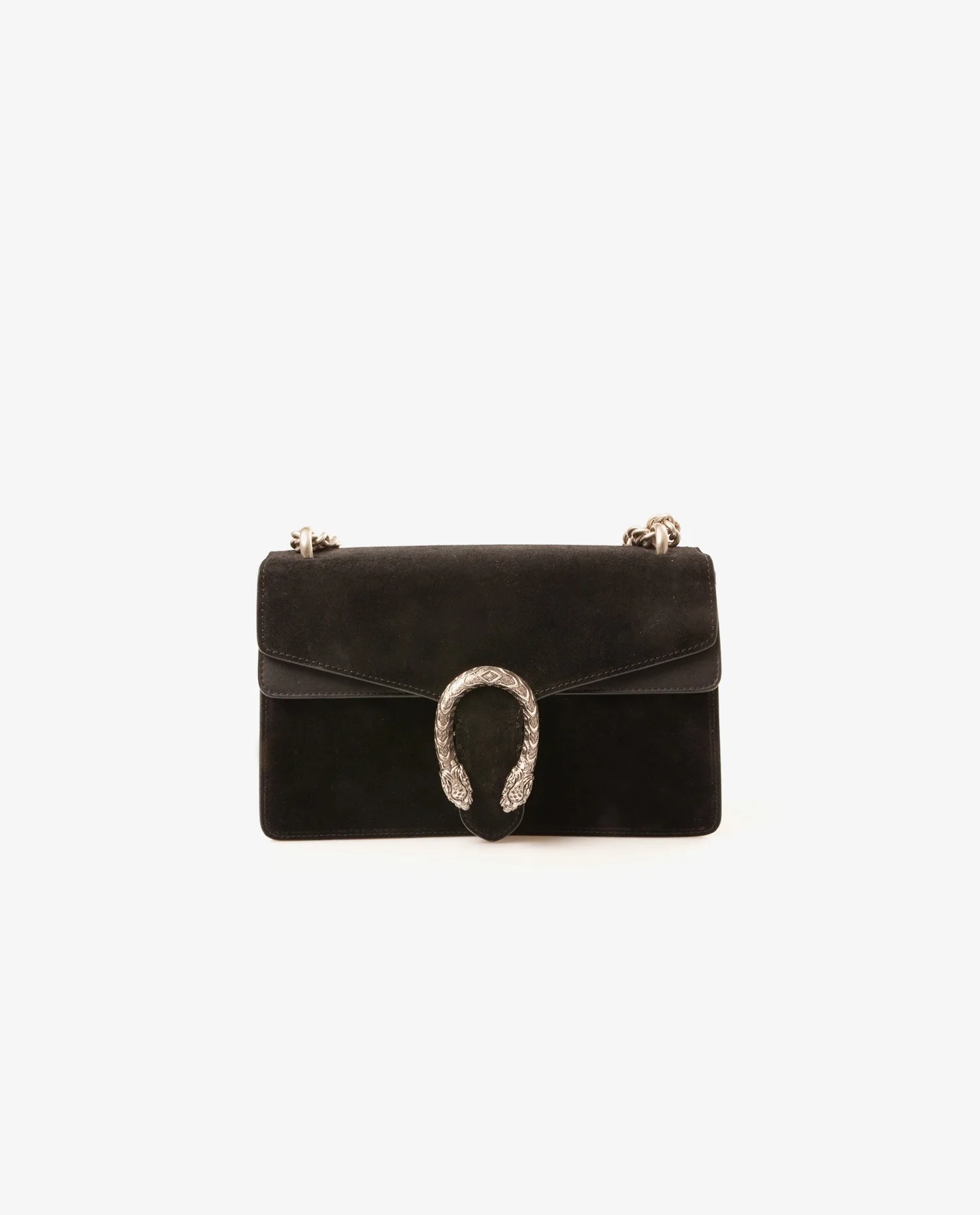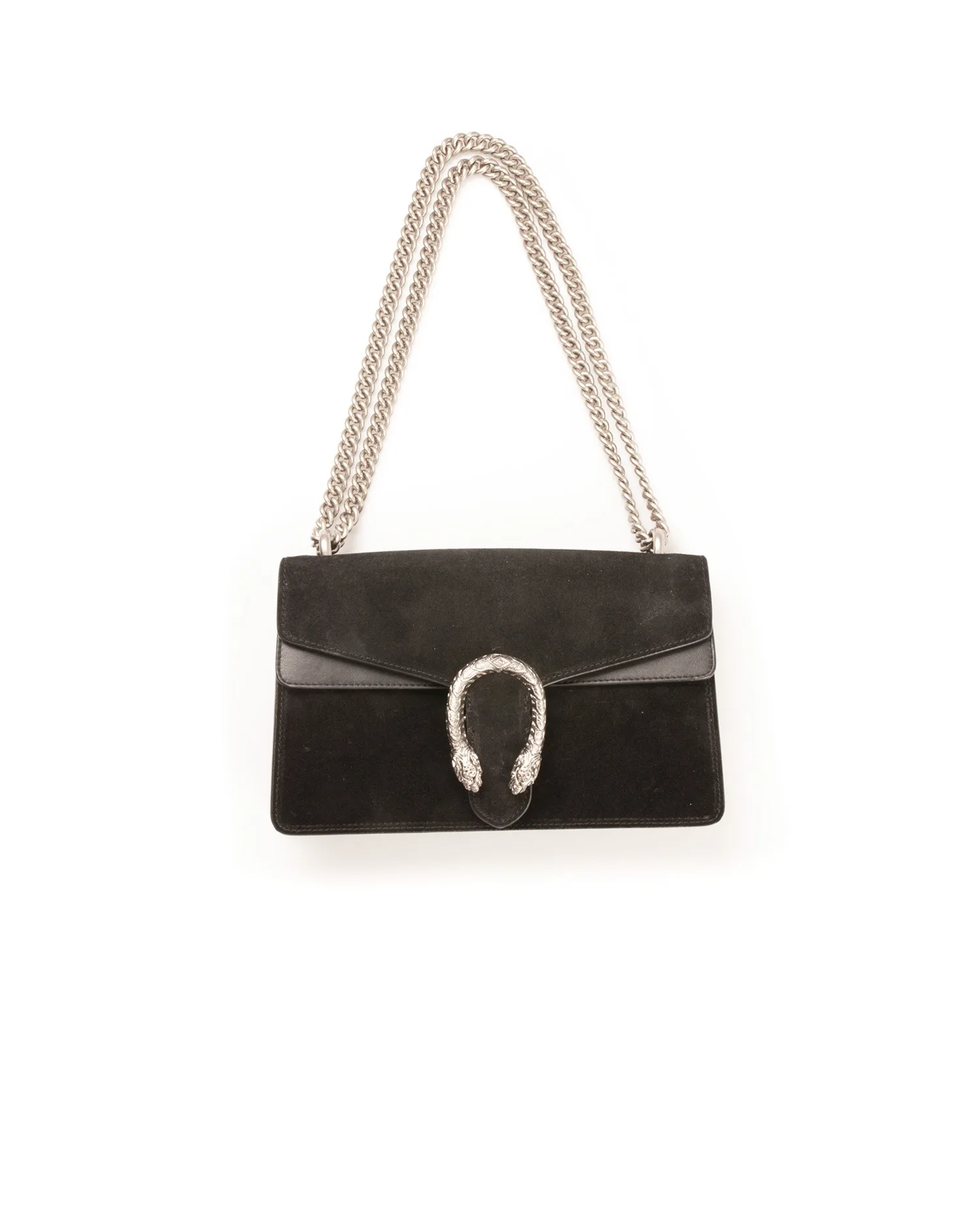 Sac Dionysus Gucci en veau velours noir. Il se porte à l’épaule ou en crossbody. La bandoulière mesure 99 cm. L’intérieur est en cuir noir, il dispose de deux compartiments séparé par une grande poche zippée. Il est en très bon état mais on peut voir de l’usure d’usage sur le dessus du sac.