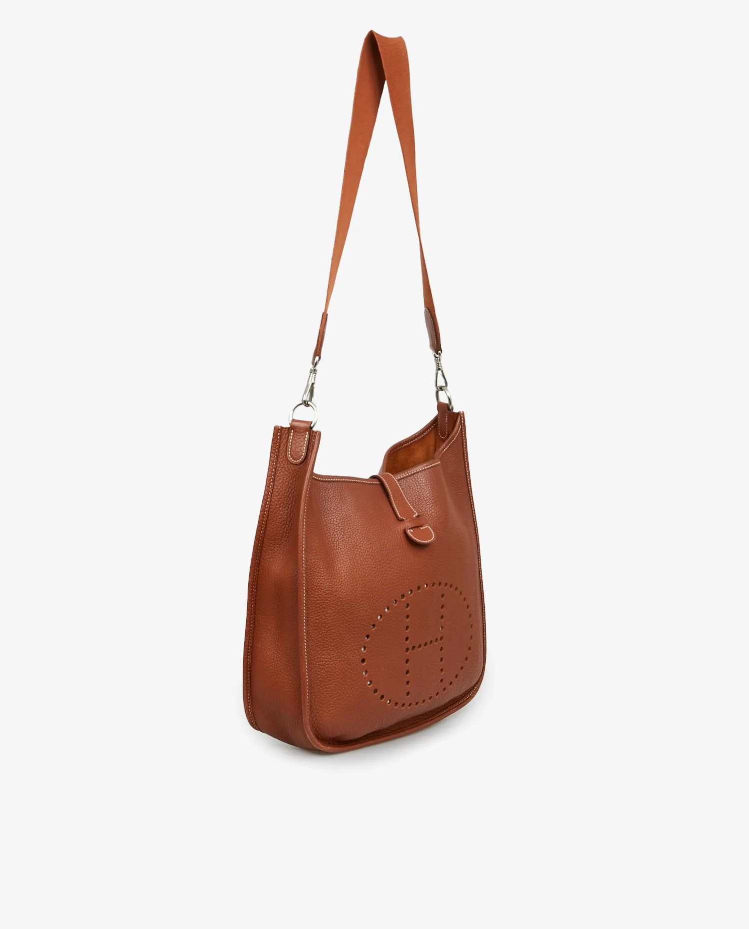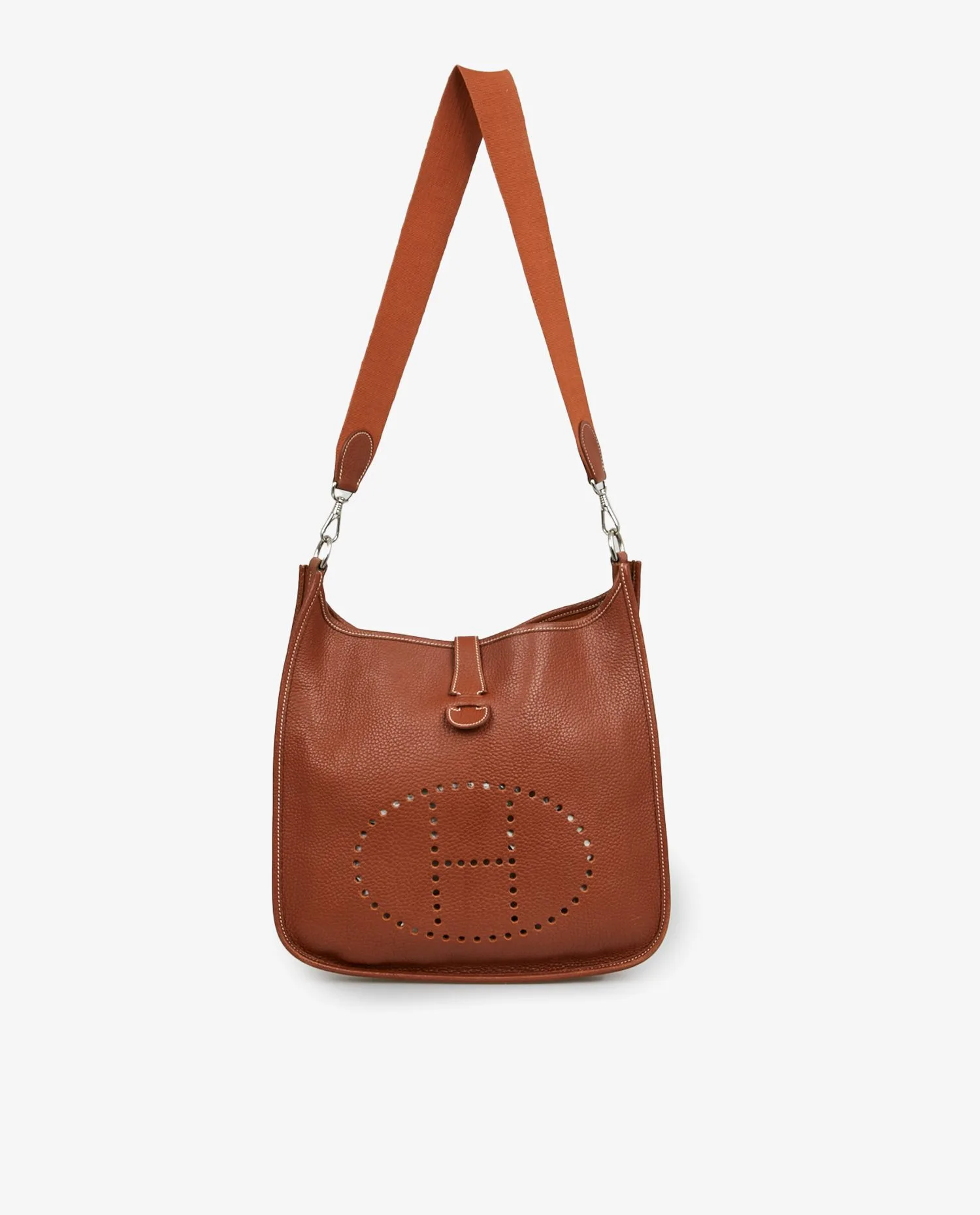 Sac Evelyne Hermès en cuir togo marron. Porté épaule ou en bandoulière (85cm). En très bon état.