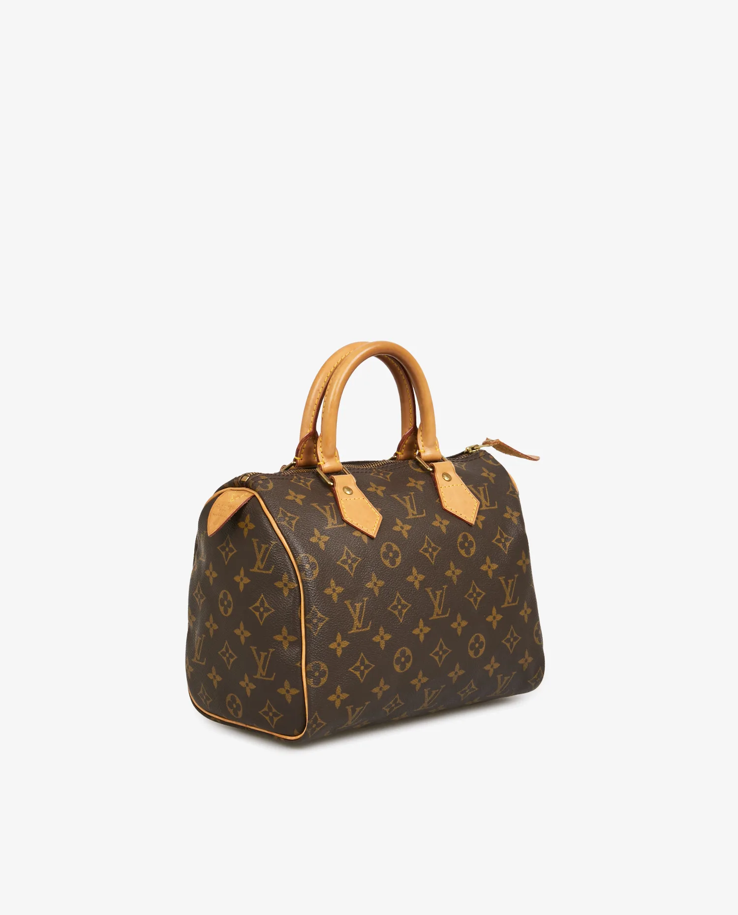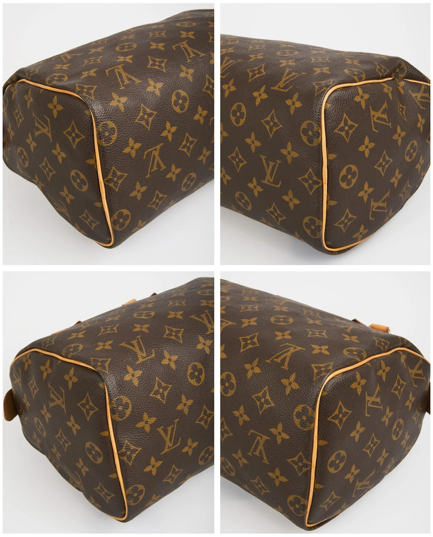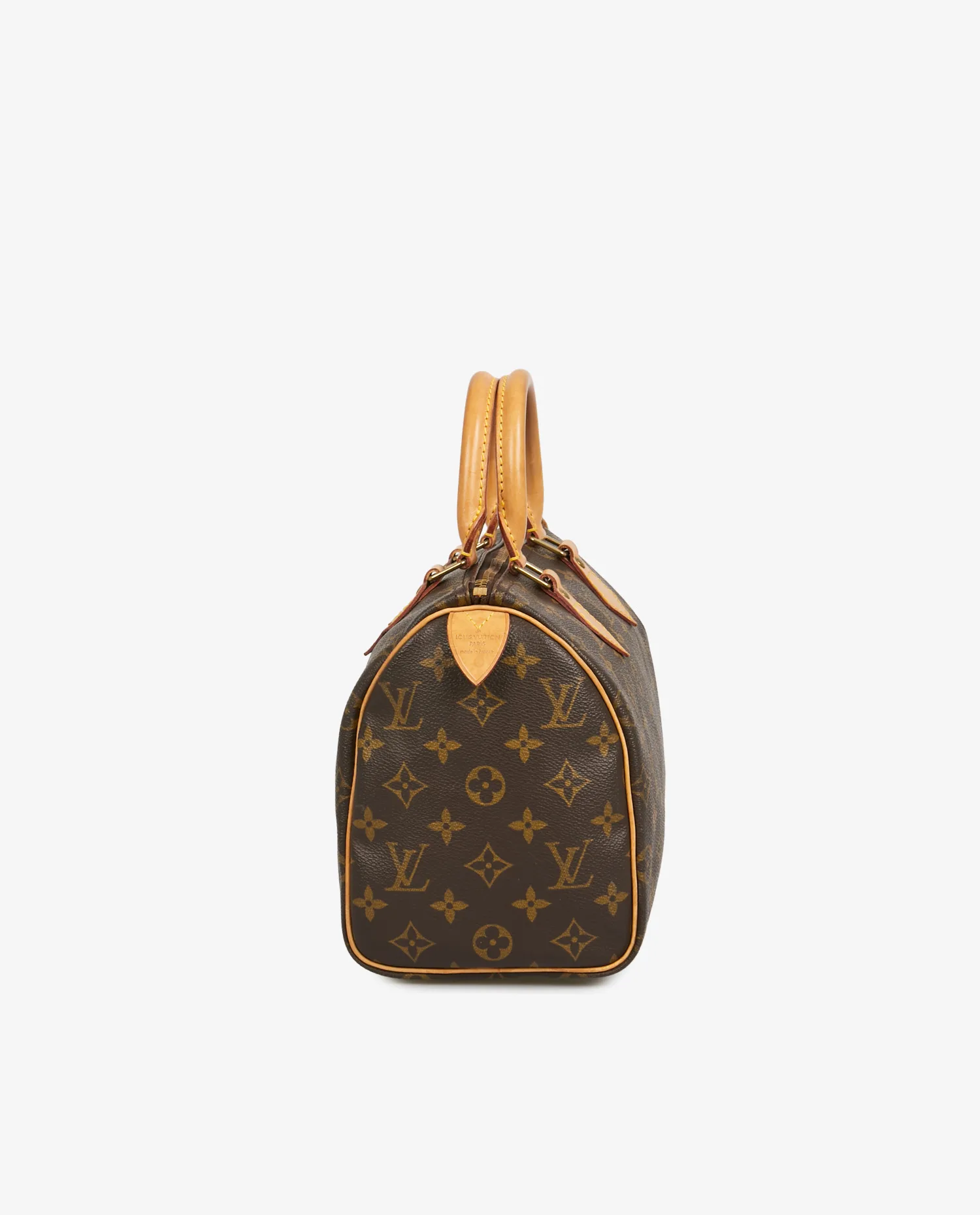 Pour préserver la beauté de votre sac Speedy 25, il est recommandé d’éviter l’exposition prolongée au soleil et à l’humidité. Nettoyez la toile avec un chiffon doux et humide, et appliquez régulièrement un produit spécifique pour cuir sur les poignées et finitions en cuir de vachette naturel afin de maintenir leur souplesse et leur éclat.