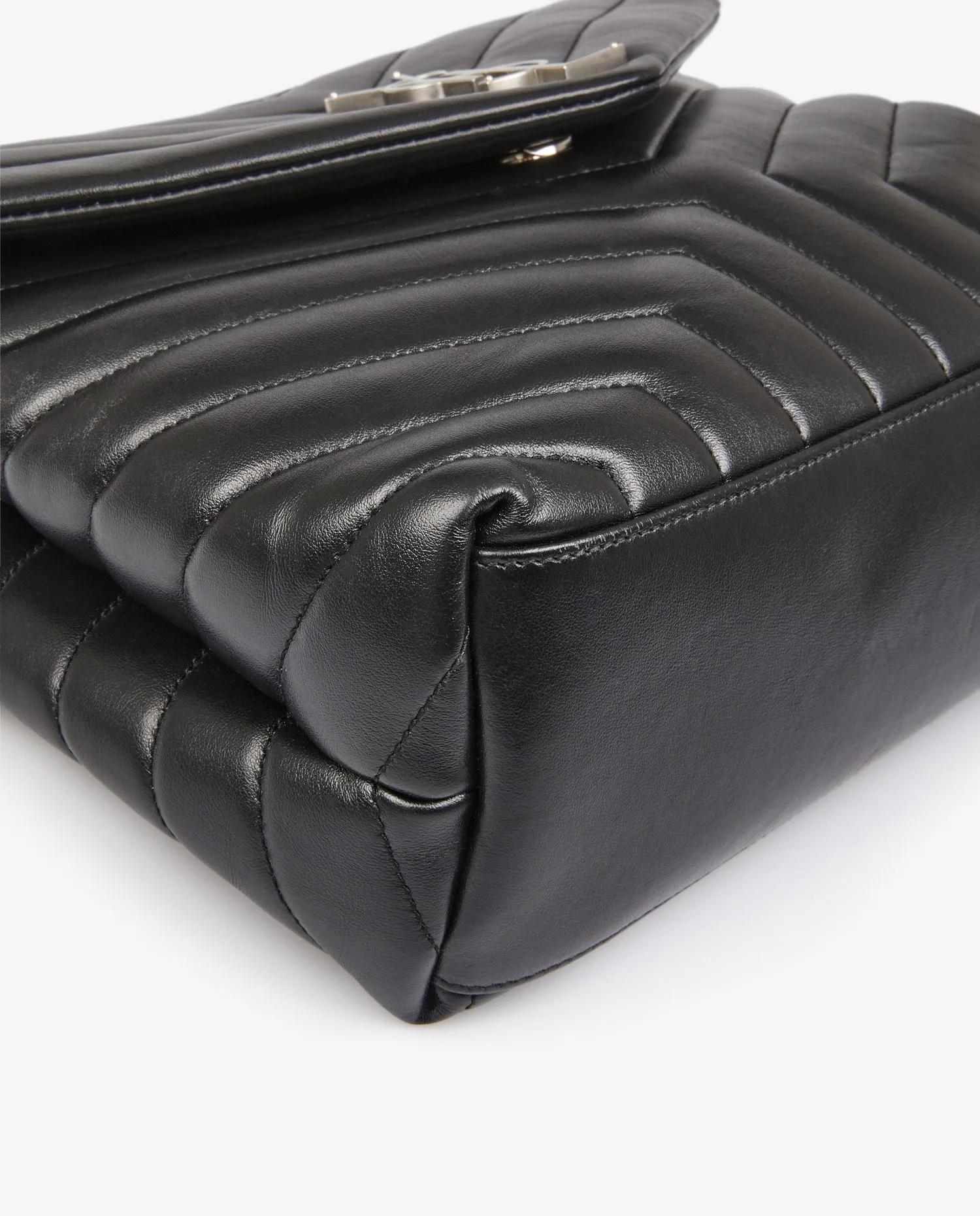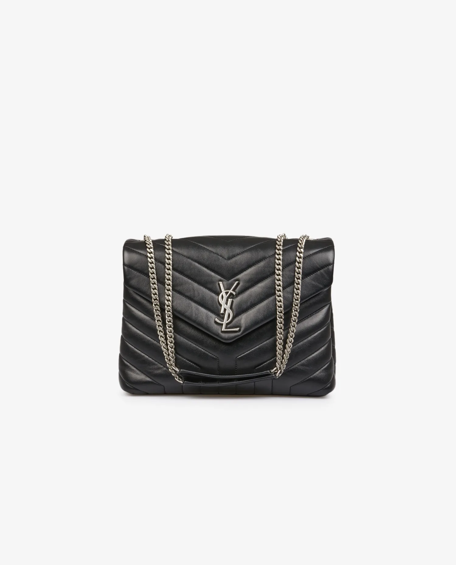 Sac Loulou Saint Laurent en cuir noir. Bijouterie argent. Fermeture aimantée. Porté épaule ou en bandoulière (103cm). En très bon état.