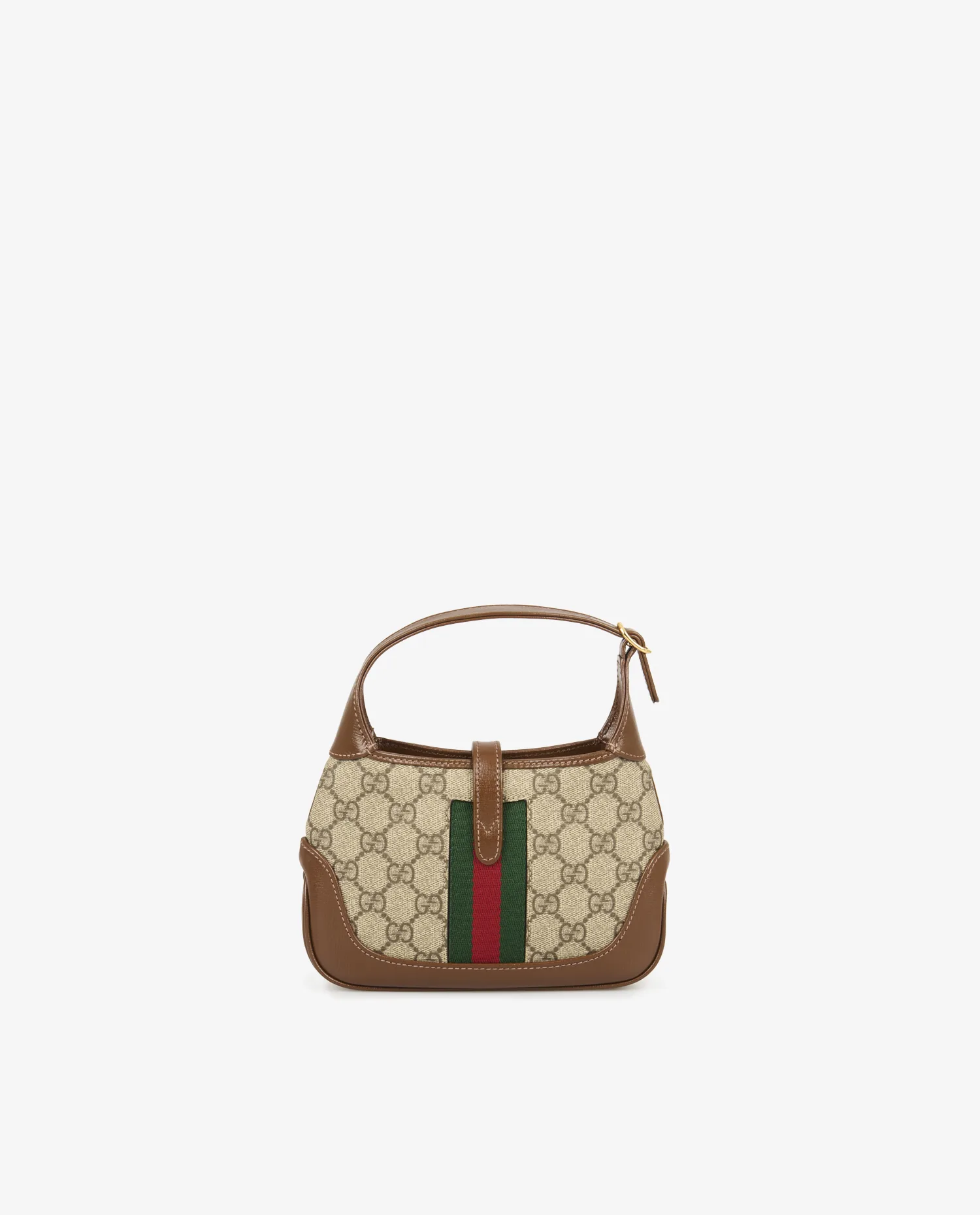 Le modèle Jackie a été lancé pour la première fois dans les années 1950 par Gucci, mais il acquiert véritablement son nom et son statut iconique dans les années 60 lorsque Jackie Kennedy est régulièrement photographiée avec ce modèle à l’épaule. Réinterprété à plusieurs reprises, le sac Jackie est remis au goût du jour en 2020 sous la direction d’Alessandro Michele avec cette version mini baptisée “Jackie 1961”. Ce modèle mêle héritage historique et esthétique contemporaine, tout en conservant l’essence vintage qui en fait un classique prisé par les amateurs de maroquinerie de collection.