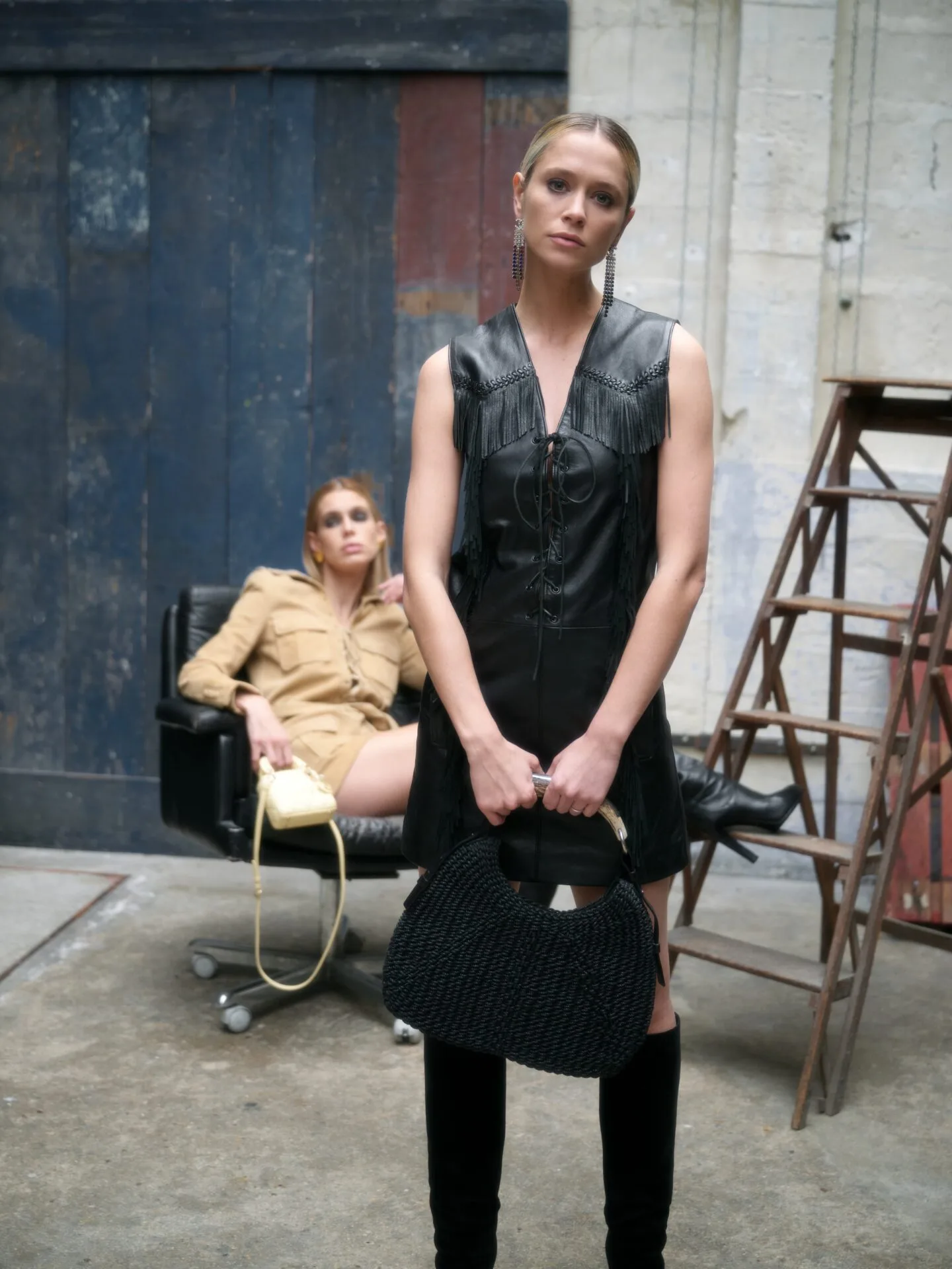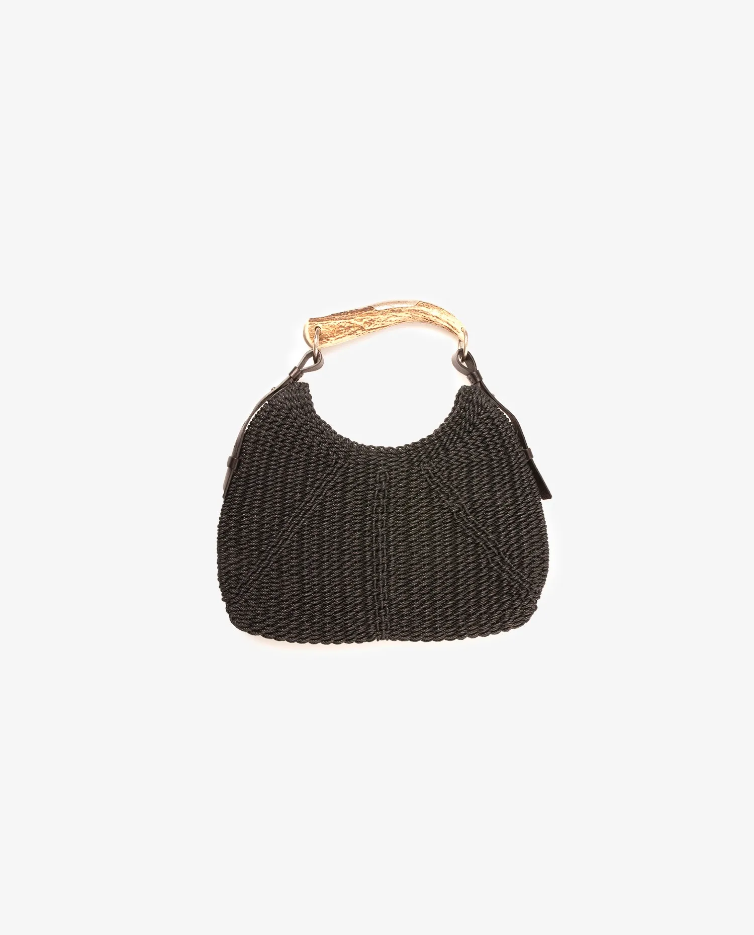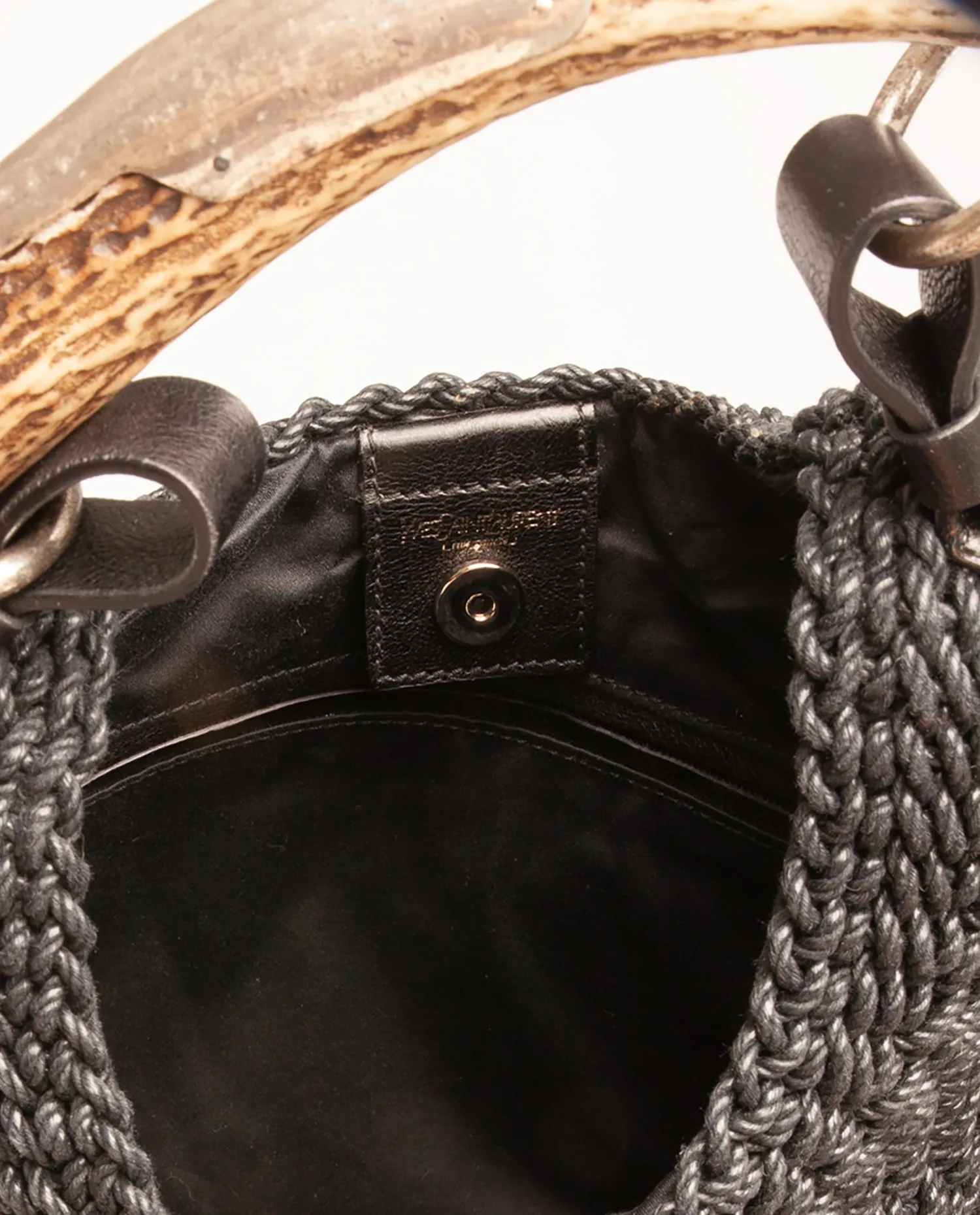 Sac Mombasa Yves Saint Laurent par Tom Ford en corde noire. Fermoir par bouton pression. Doublure textile avec une poche zippée. Poignée en corne. Bijouterie en laiton.