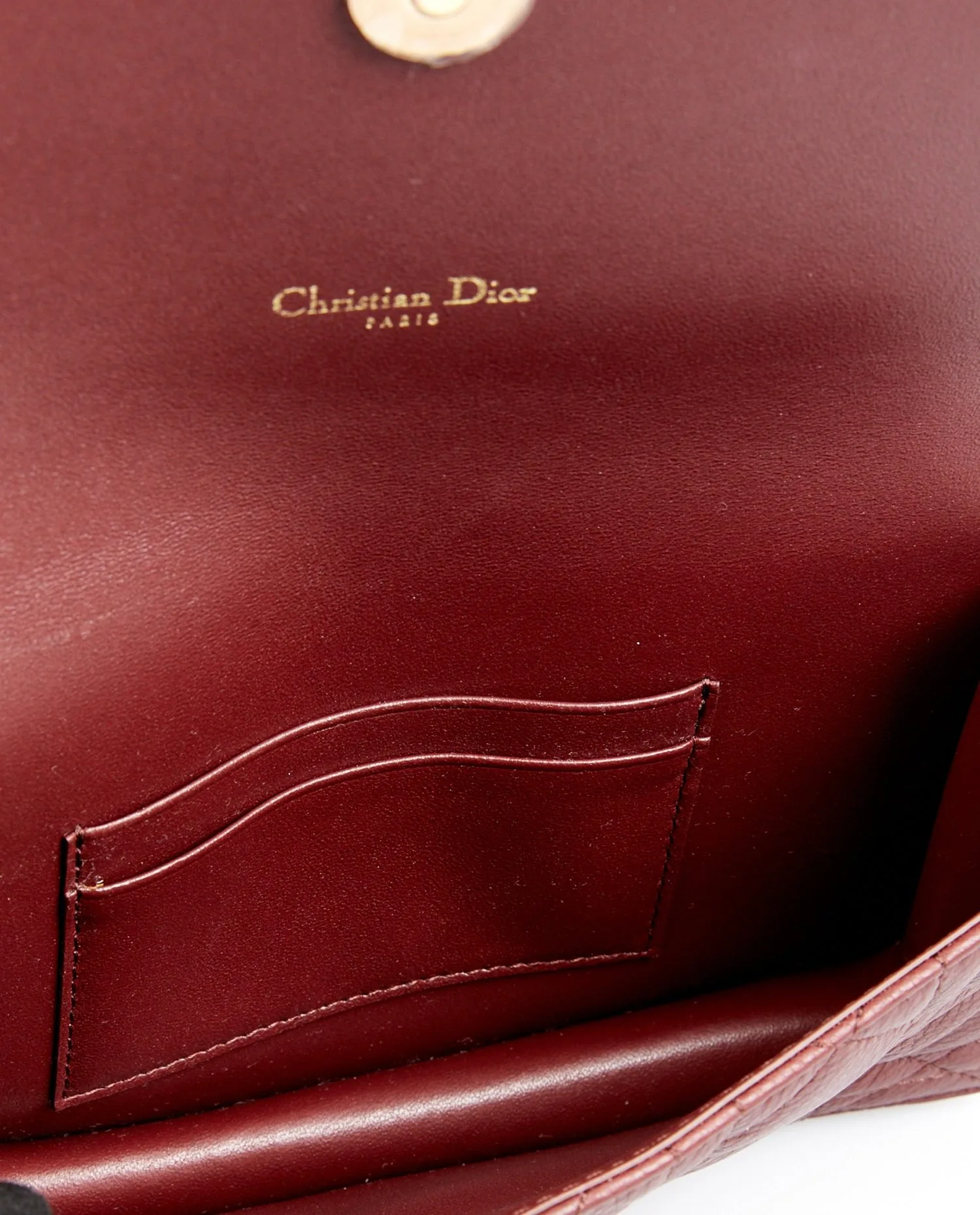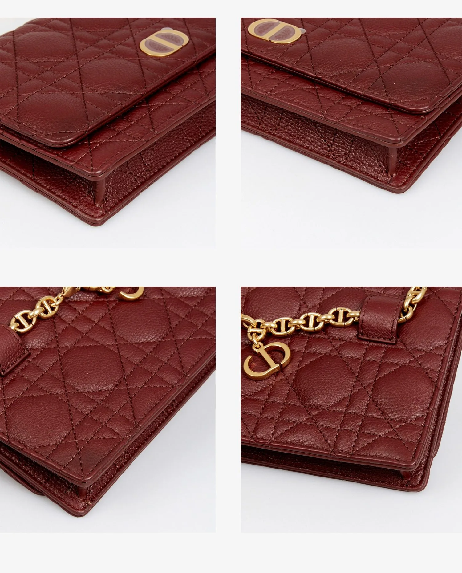 Sac pochette Dior en cuir grainé matelassé bordeaux. Porté croisé ou à l’épaule (80cm). Jamais porté. Les plastiques sont toujours présents sur la bijouterie. Livré dans son dustbag et boite d’origine.