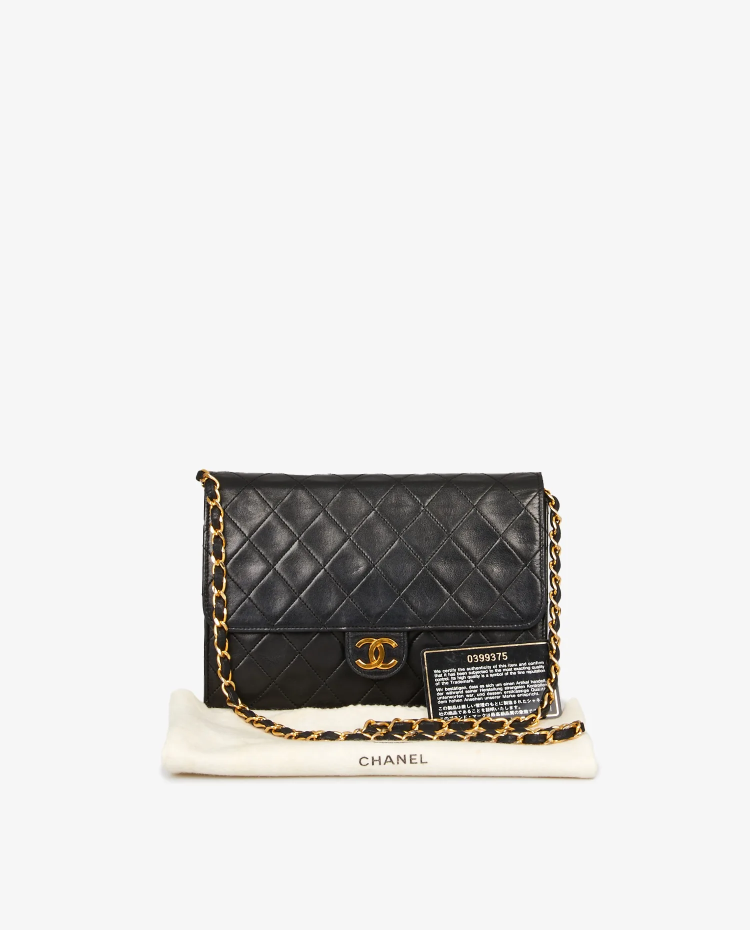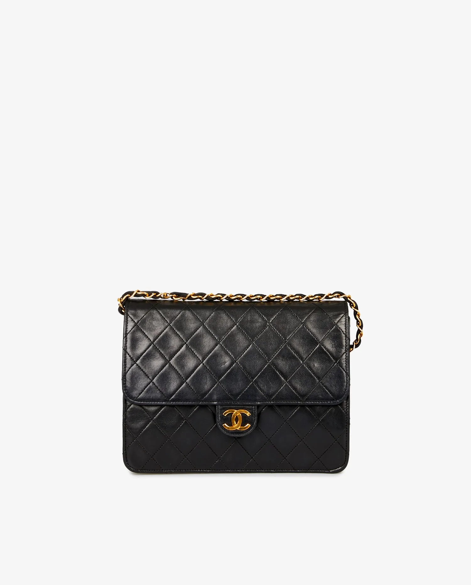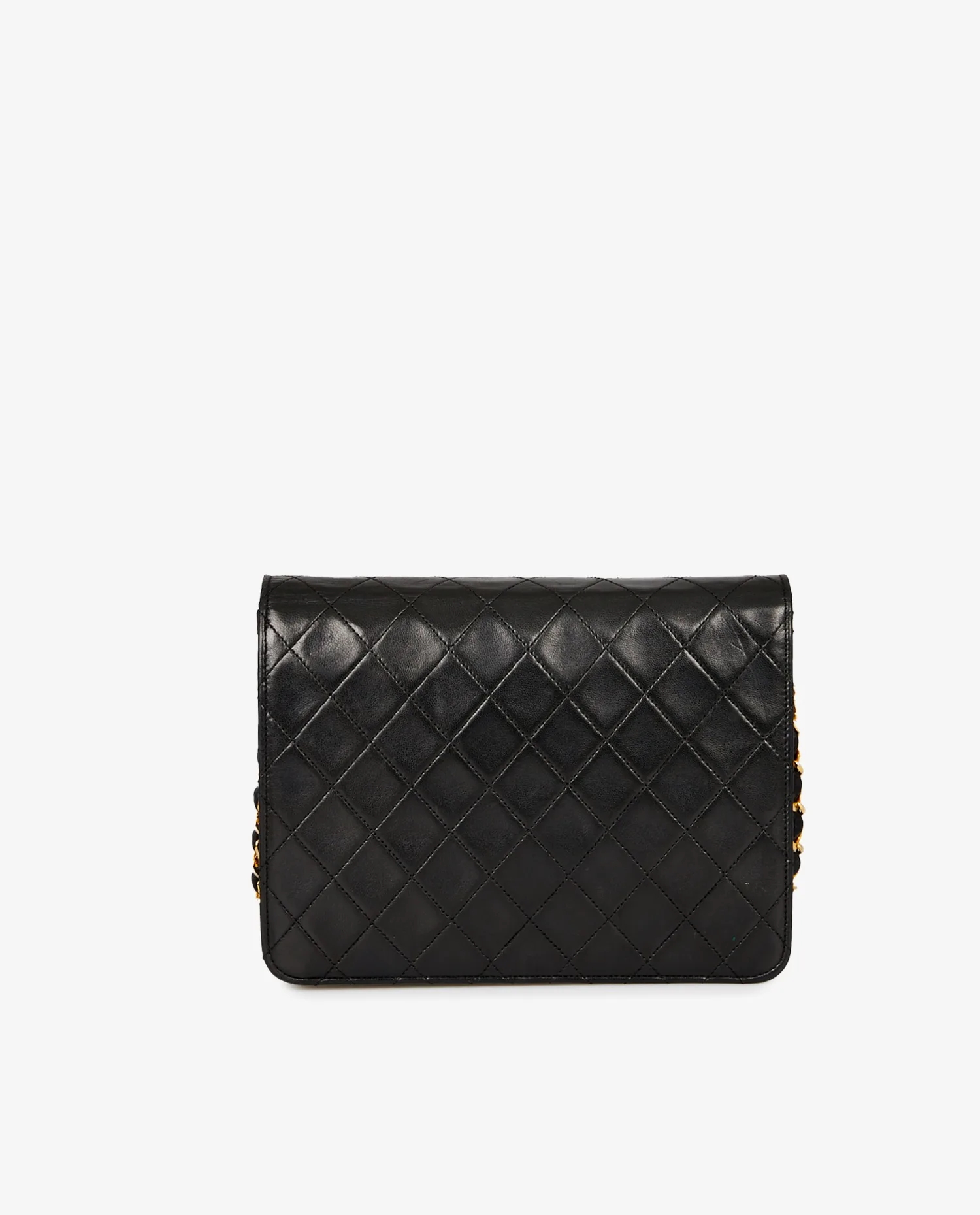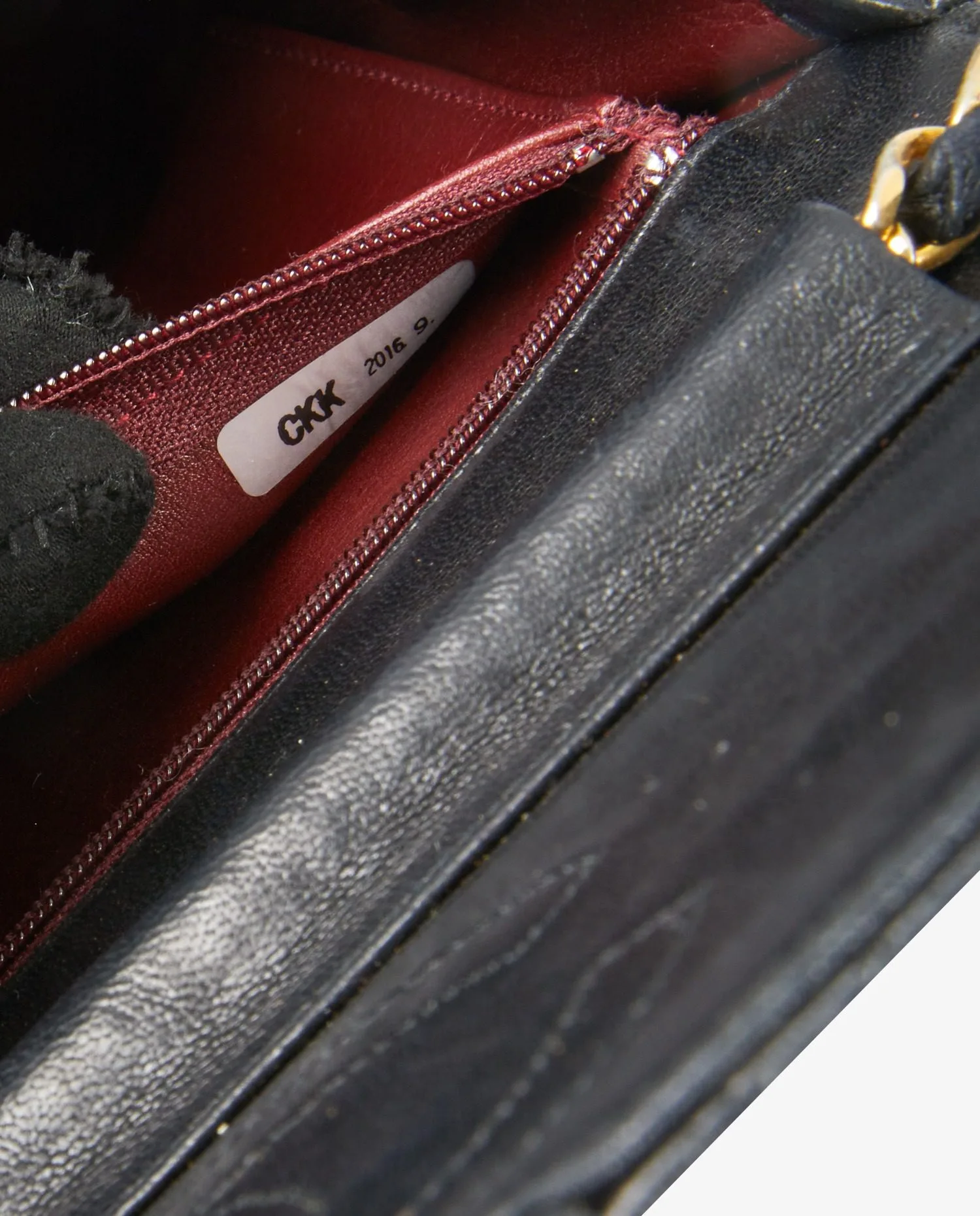 Sac cuir noir Chanel matelassé vintage. Porté épaule (90cm). L’intérieur est en cuir bordeaux. En très bon état.