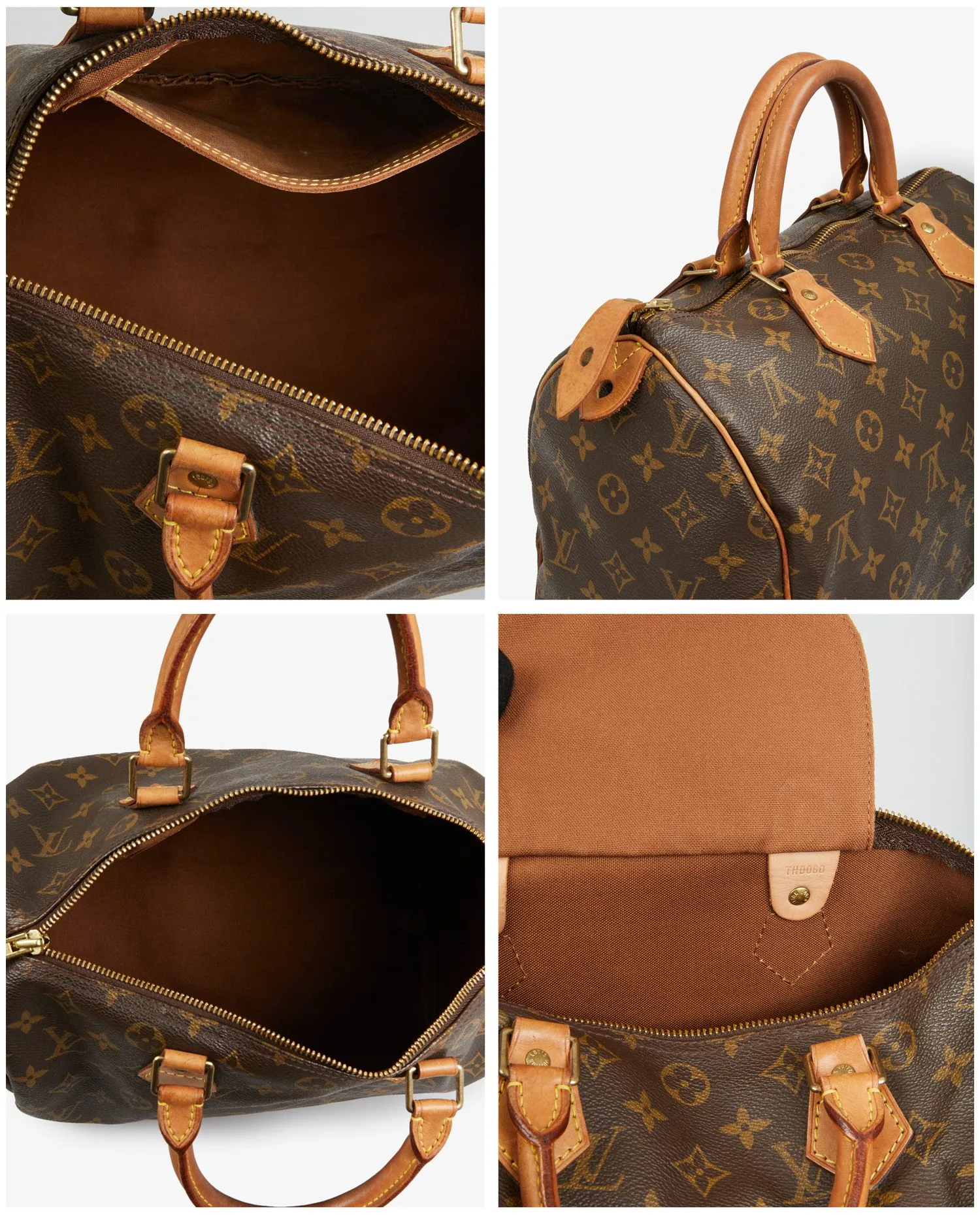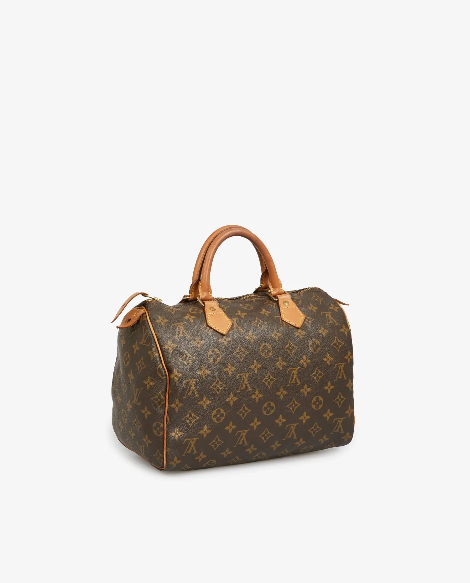 Sac Speedy 30cm Louis Vuitton en toile monogramme et finitions en cuir de vache. Porté main, possibilité de rajouter une bandoulière. En très bon état. Le cuir est patiné dû à son âge.