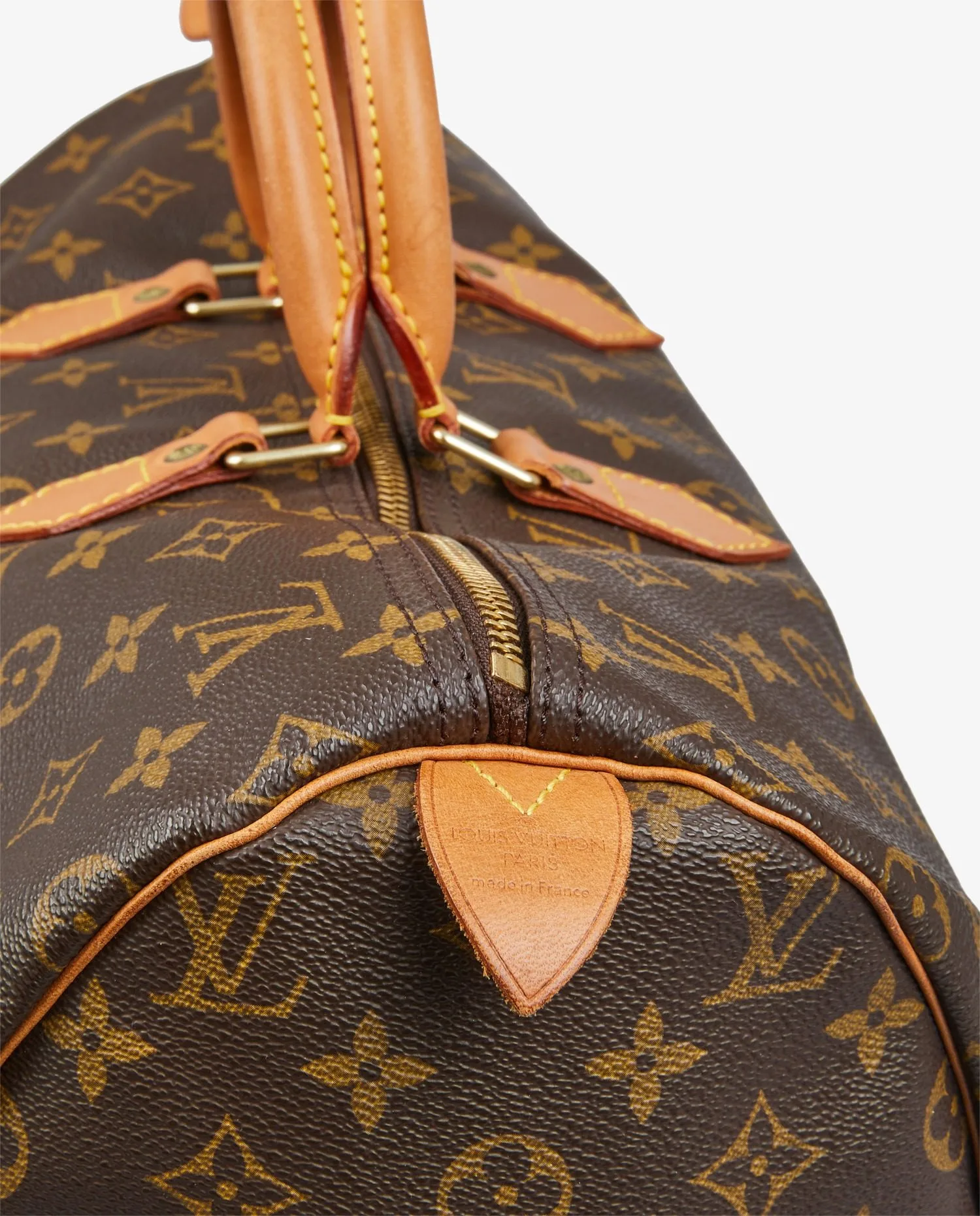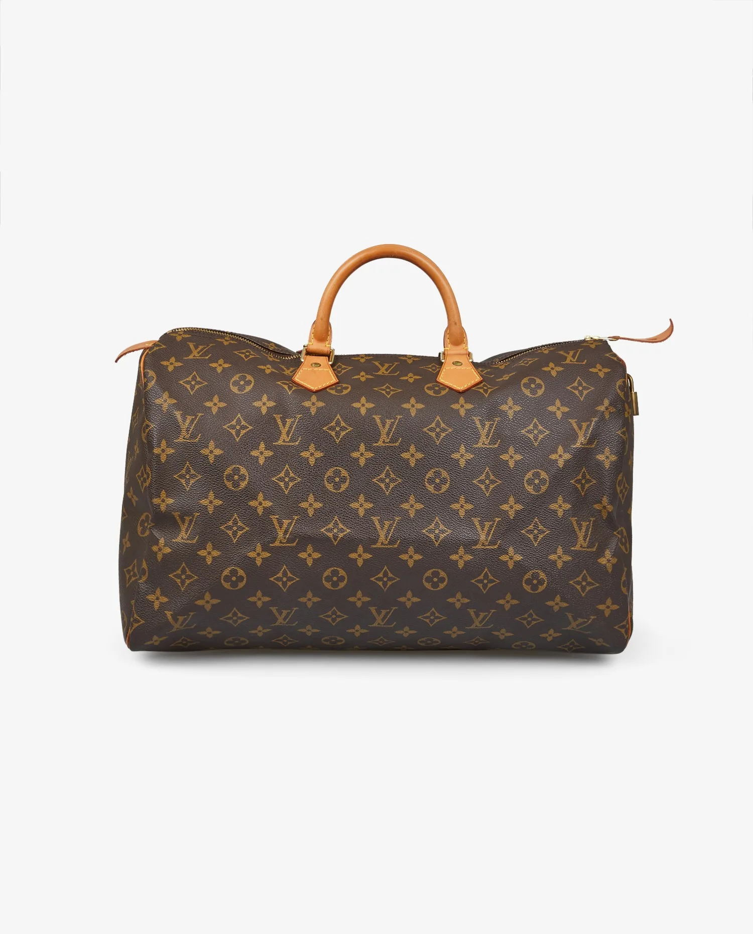 Sac Louis Vuitton Speedy 40cm en toile monogram et cuir de vachette naturel. Idéal pour y glisser tous vos accessoires préférés. Porté main à l’aide de deux poignées, possibilité de rajouter une bandoulière. En très bon état.