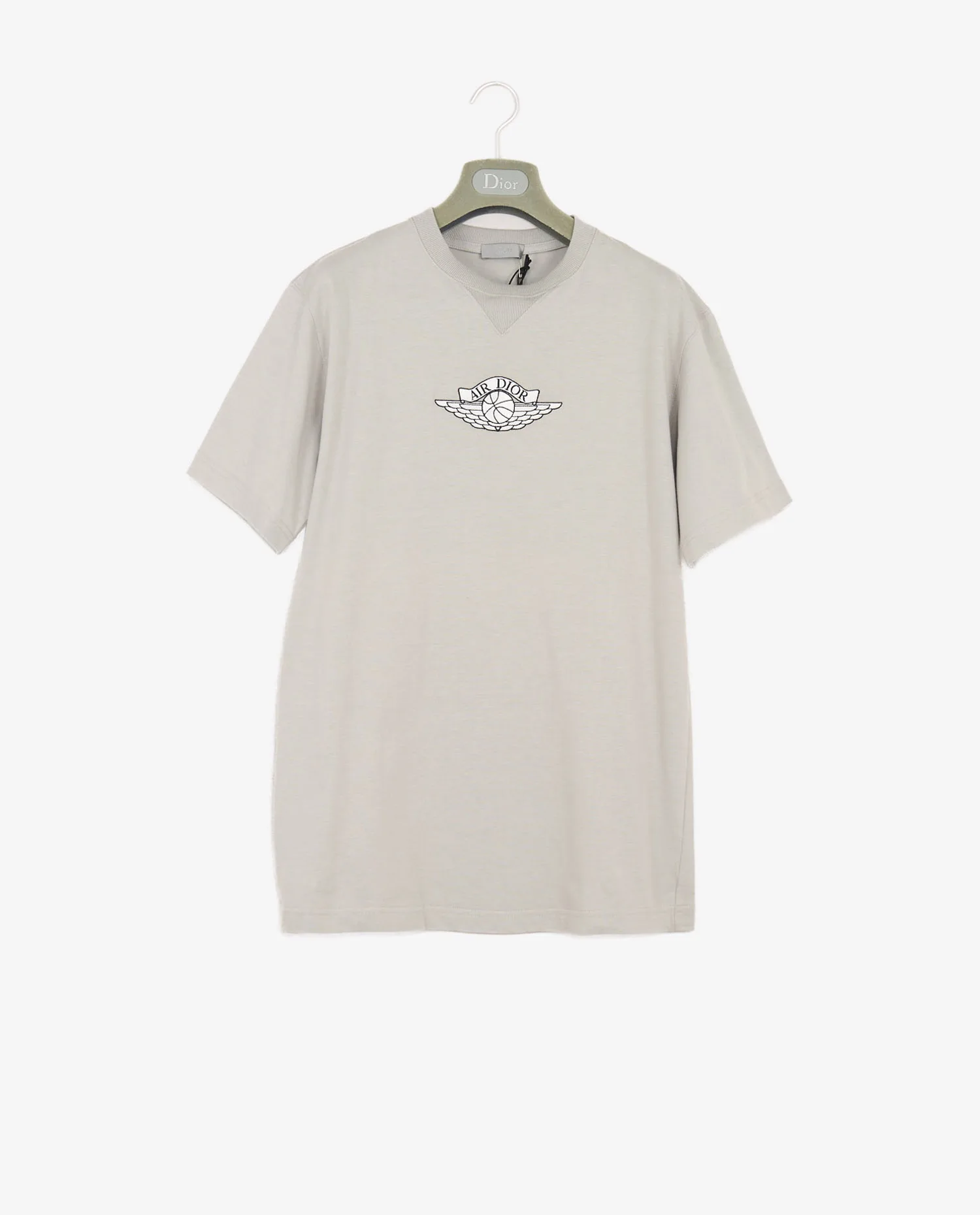 Le t-shirt Air Dior s’inscrit dans une collaboration exceptionnelle initiée en 2020 entre la maison Dior, sous la direction artistique de Kim Jones, et Jordan Brand, la ligne sportswear développée par Nike autour de l’héritage de Michael Jordan. Présentée lors du défilé Dior Homme Pré-Automne 2020 à Miami, cette collection marque une étape importante dans l’évolution des collaborations entre maisons de luxe et marques de sport. Contrairement aux partenariats précédents souvent axés sur les sneakers, Air Dior propose une ligne complète intégrant prêt-à-porter, maroquinerie et accessoires, tous produits en série très limitée et avec une exigence de fabrication propre à l’univers de la haute couture. Le logo « Air Dior », revisitant le célèbre motif ailé des Air Jordan 1, devient rapidement un symbole d’une nouvelle ère où l’élégance formelle rencontre les codes du streetwear. Réservée à une clientèle exclusive et disponible uniquement dans des points de vente sélectionnés ou par tirage au sort, cette capsule est aujourd’hui perçue comme une référence majeure dans l’histoire des collaborations de mode masculine contemporaine. Elle illustre le repositionnement stratégique de Dior vers une esthétique plus jeune, plus urbaine, sans renier son exigence de qualité et de coupe.