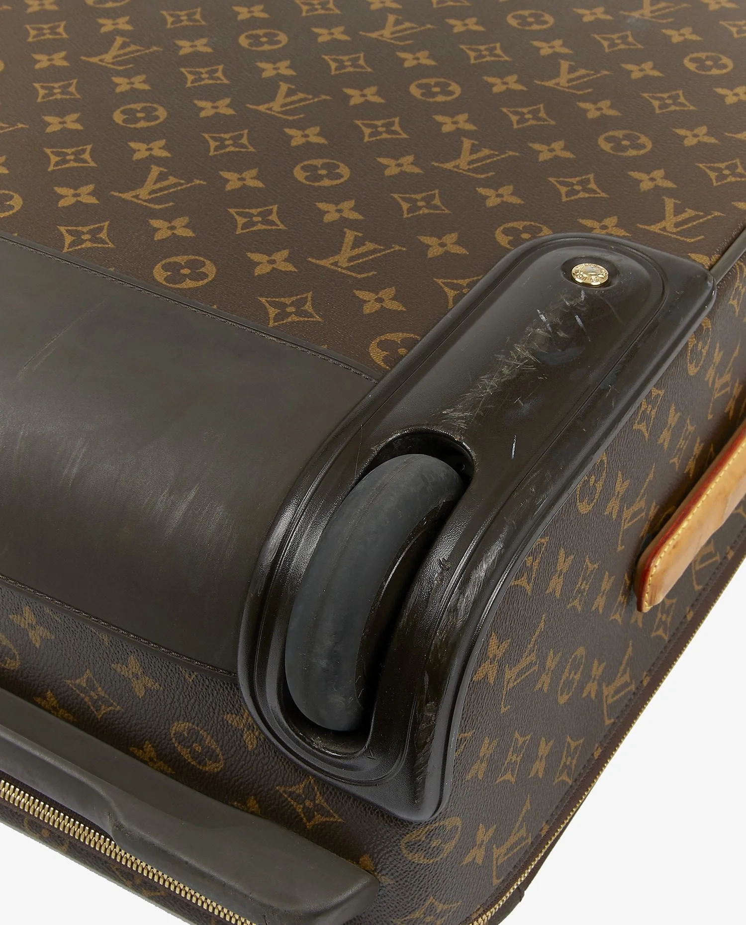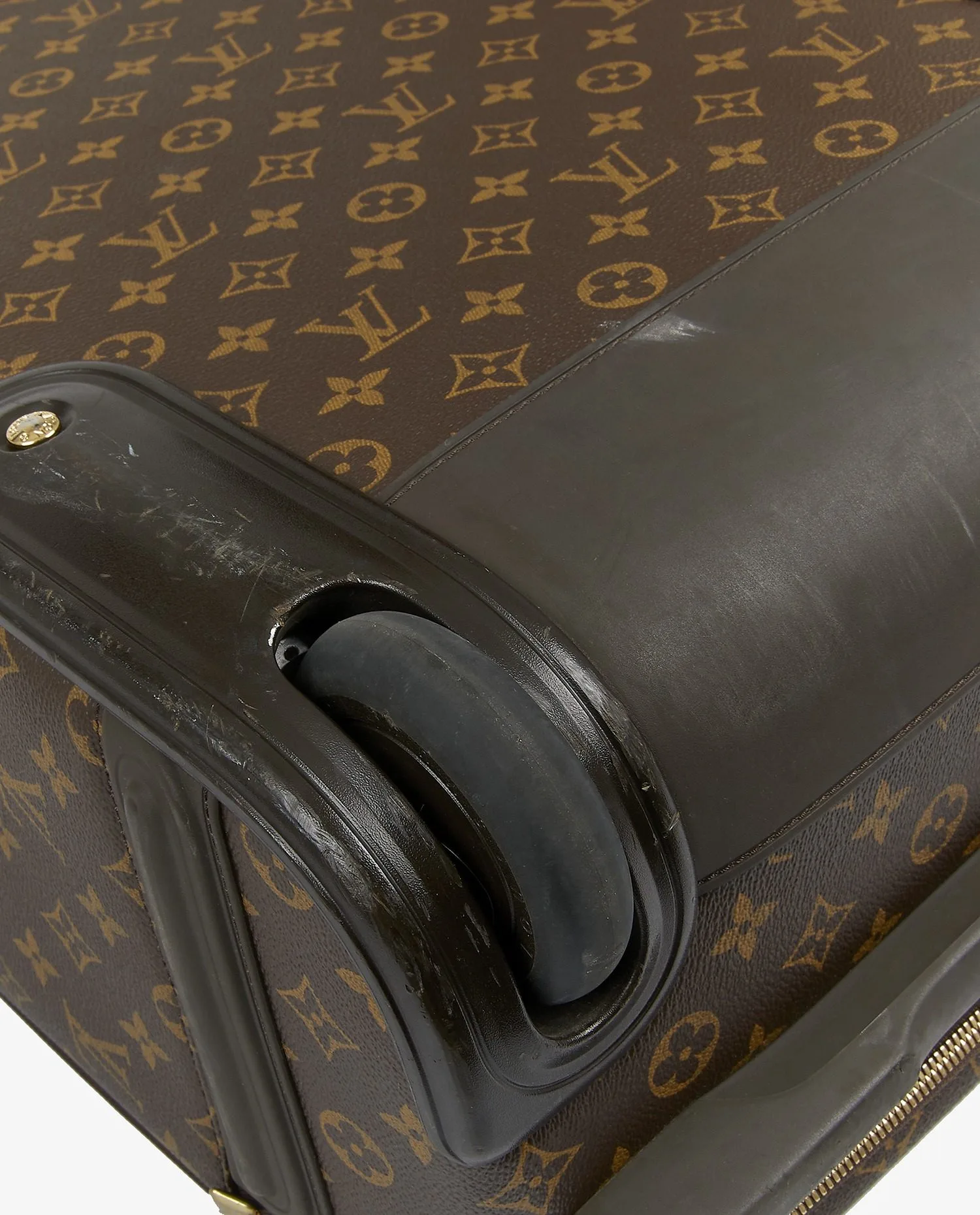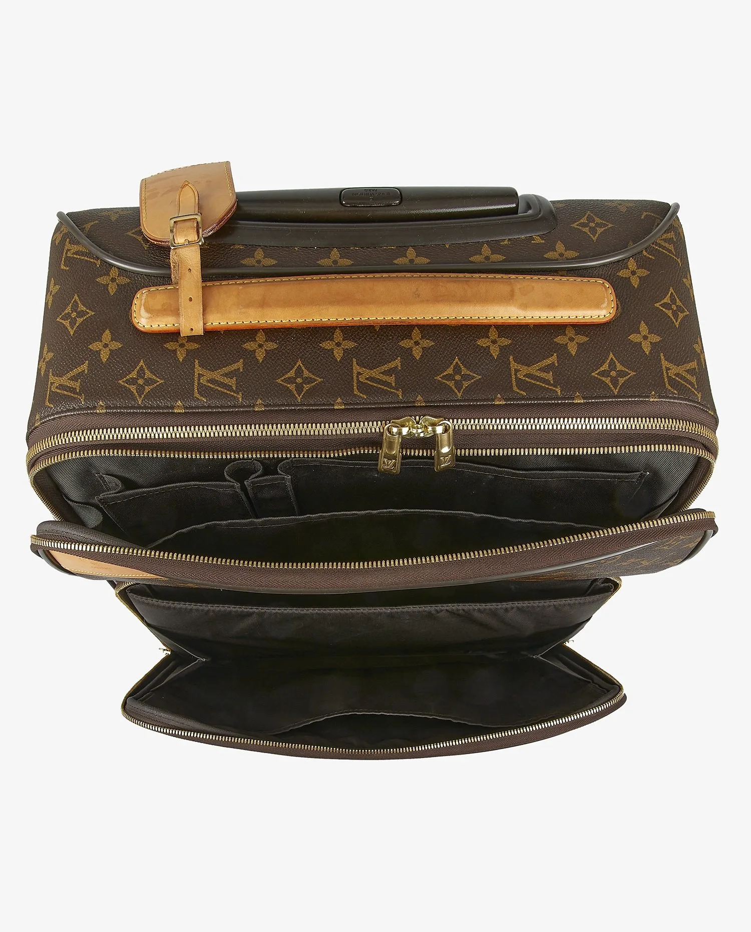 Valise Pegase 50cm Louis Vuitton en toile monogramme et cuir de vachette gold. Fermeture zippée. Plusieurs espaces de rangement. En très bon état. Quelques marques d’usure sur la poignée et le porte adresse.