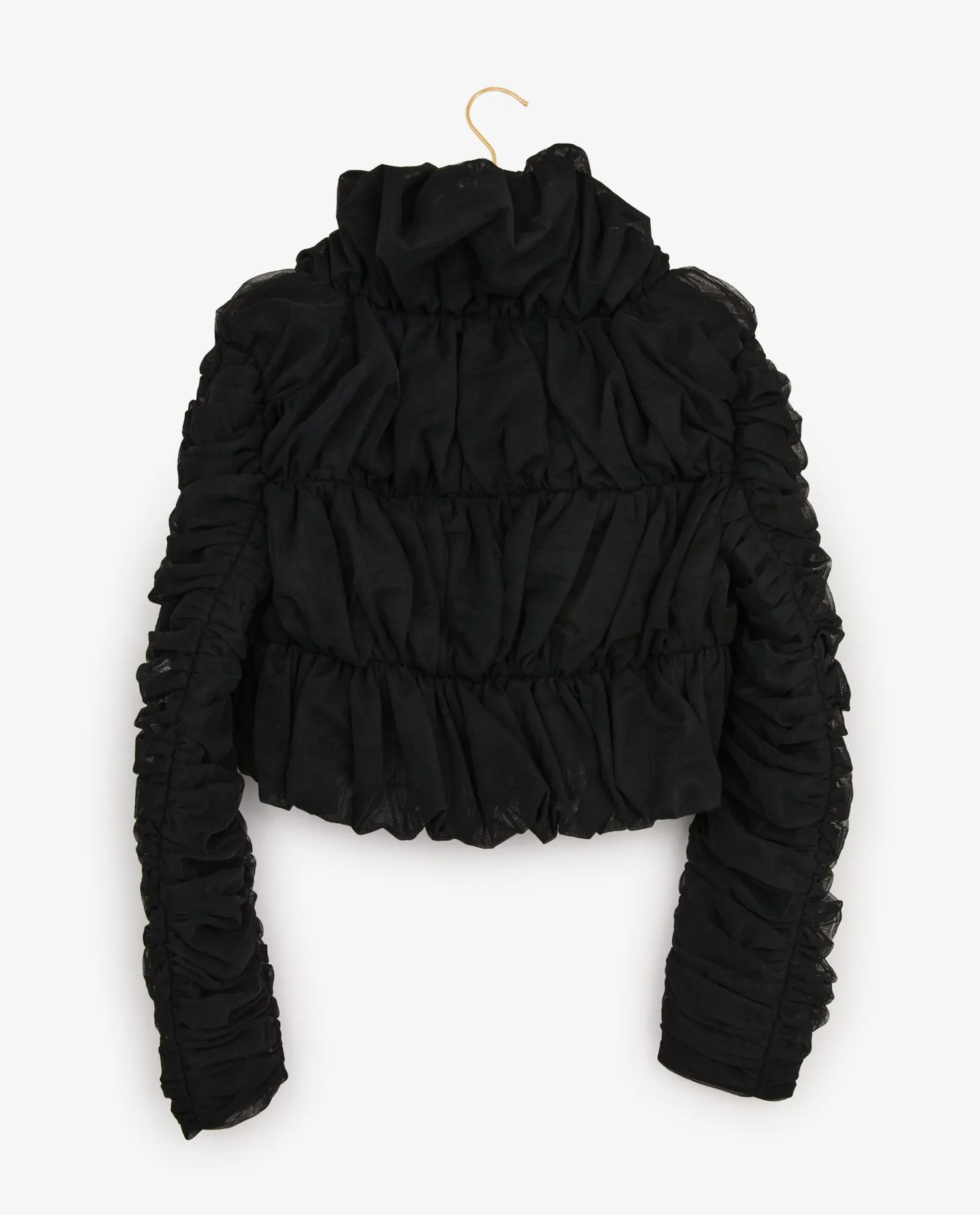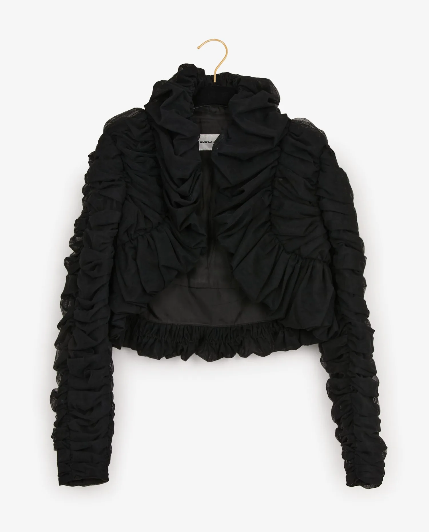 Veste courte du soir Mugler en organza noire. Taille 36. En très bon état.
