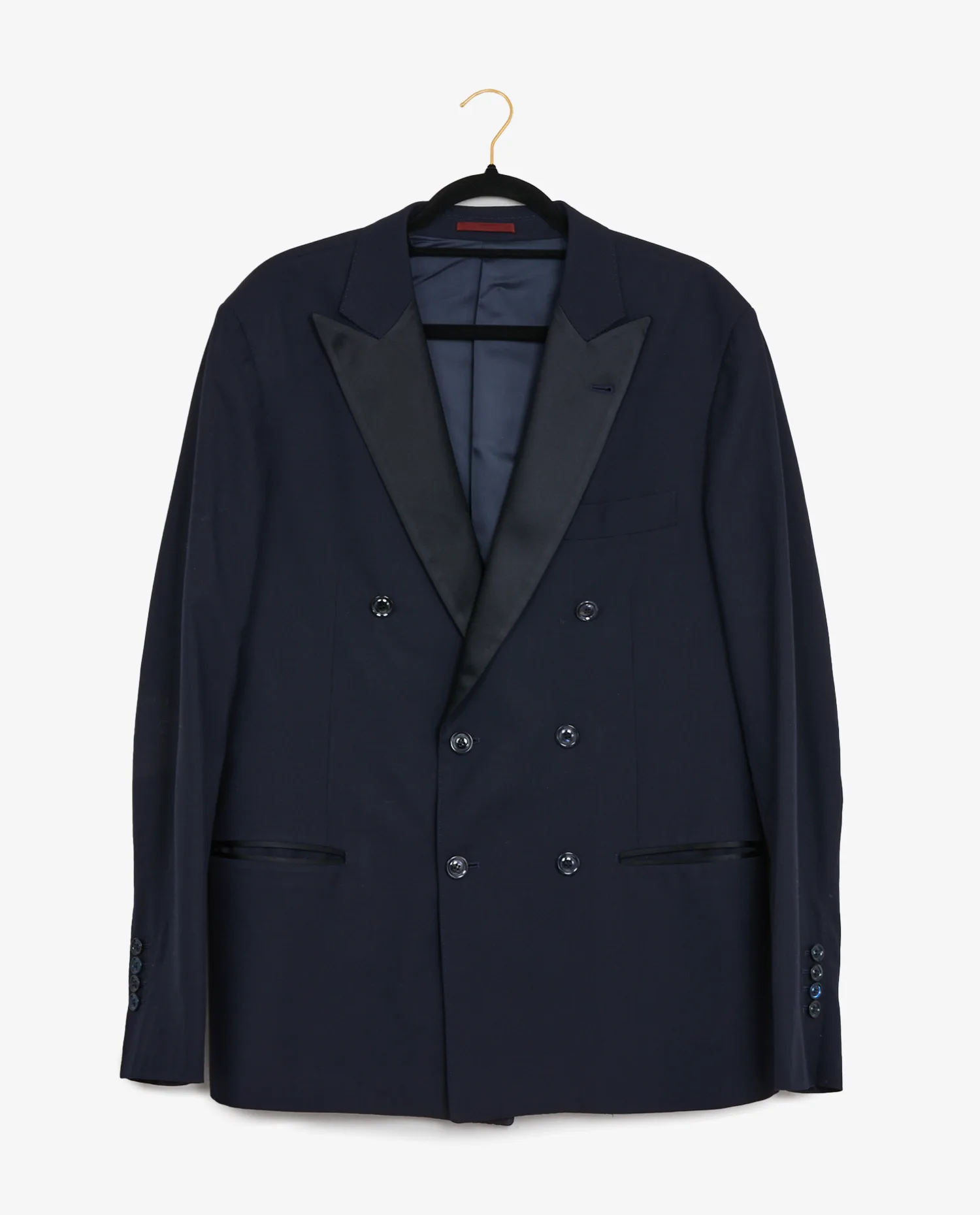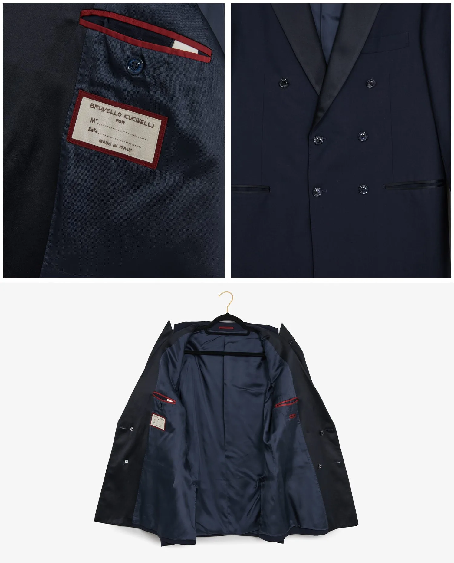 Veste de smoking croisée Brunello Cucinelli en laine bleu marine et doublure en soie. Taille 50. En très bon état.