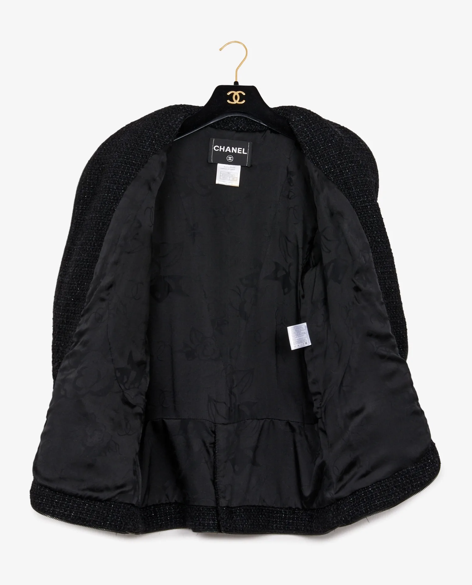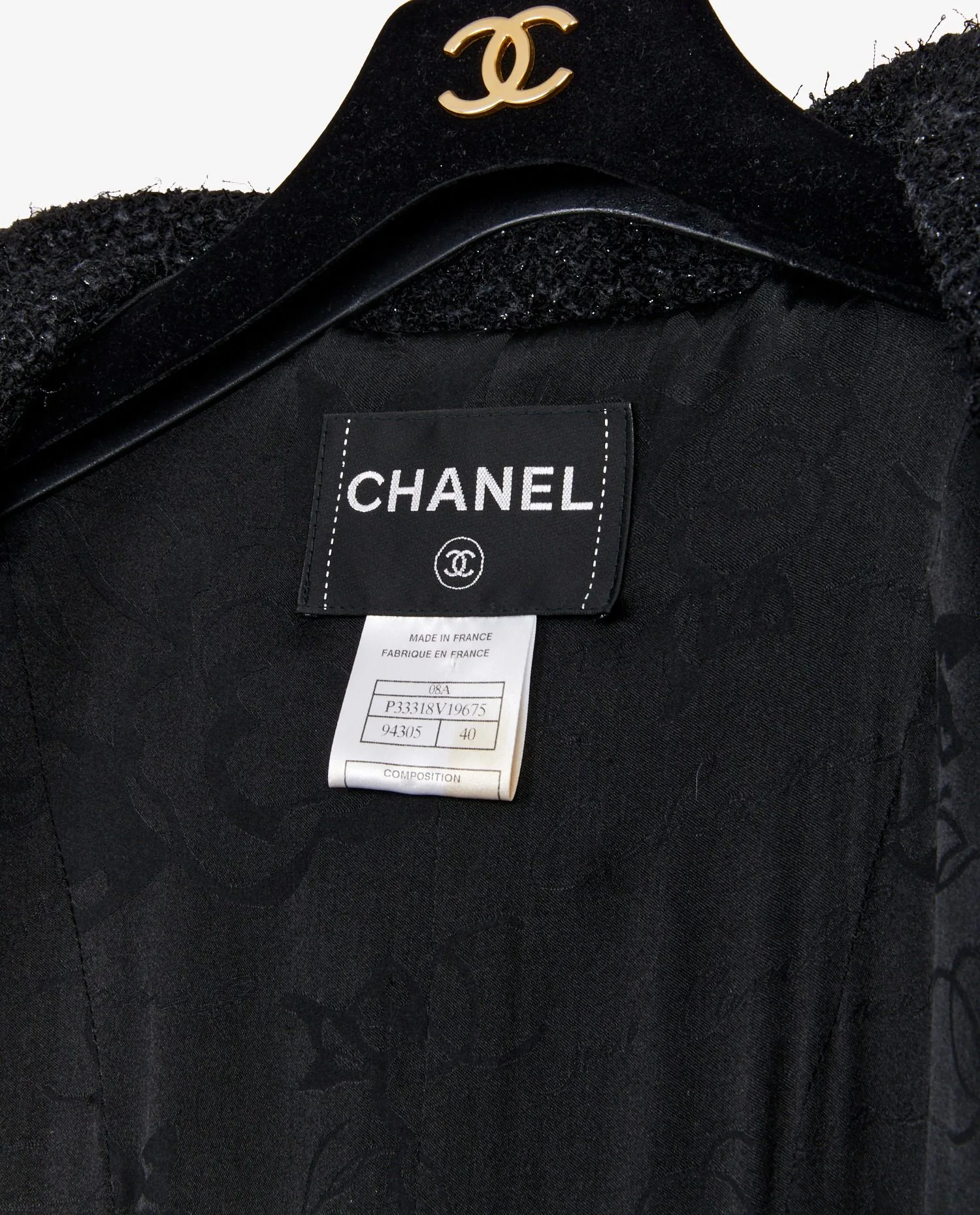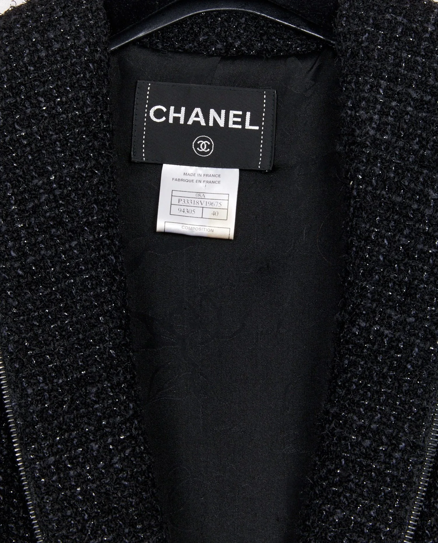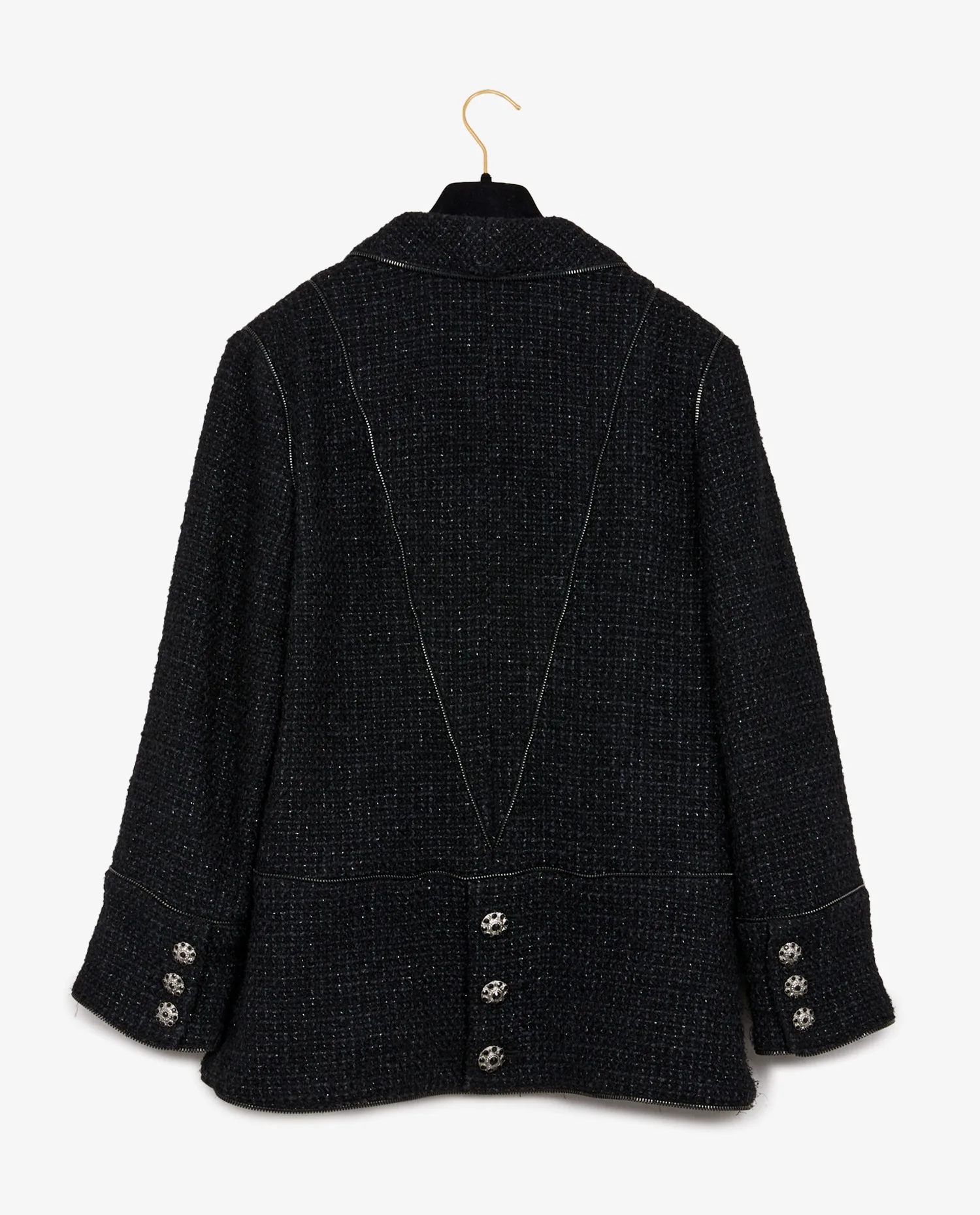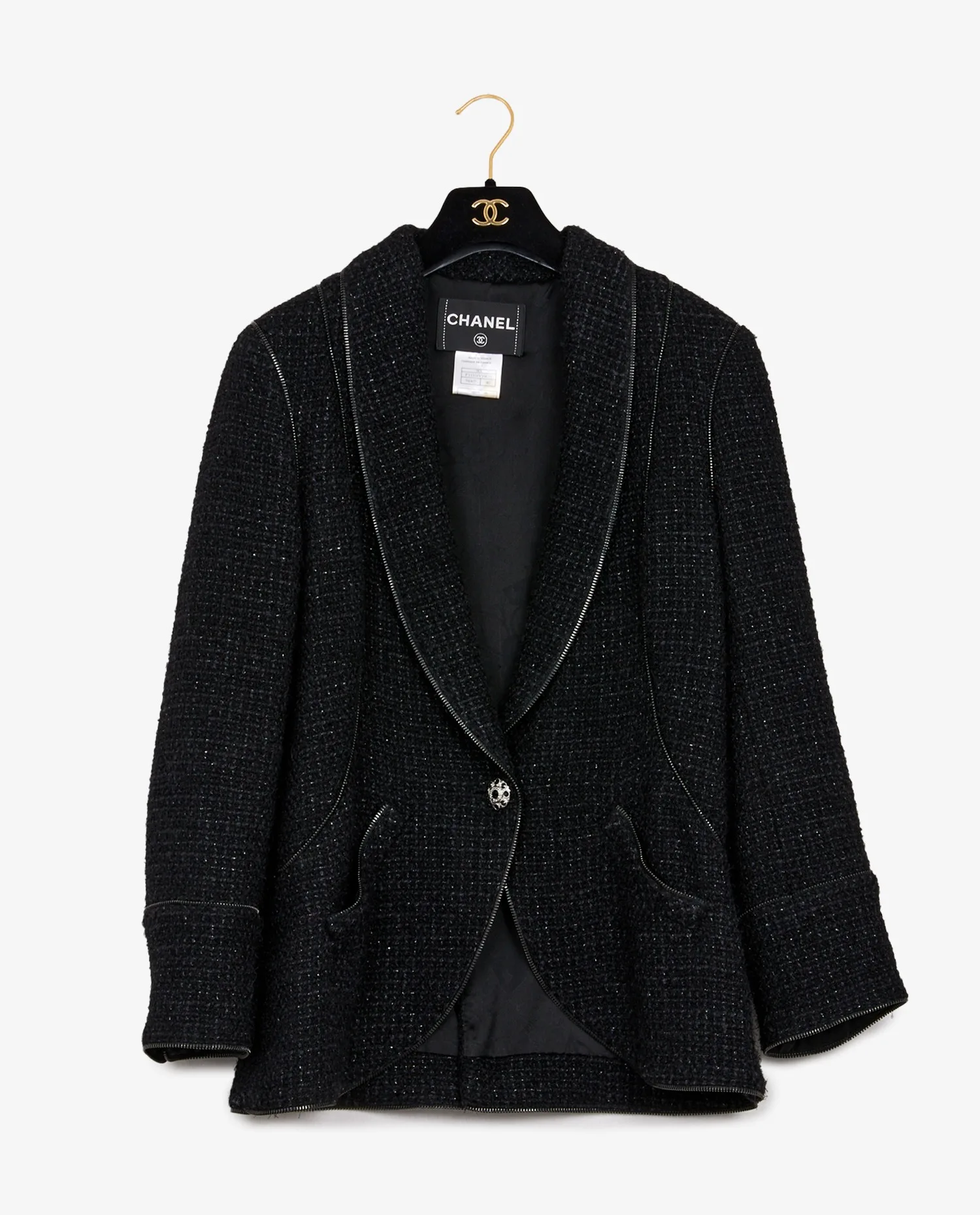 Veste Chanel en tweed et bouton en pâte de verre. En très bon état.